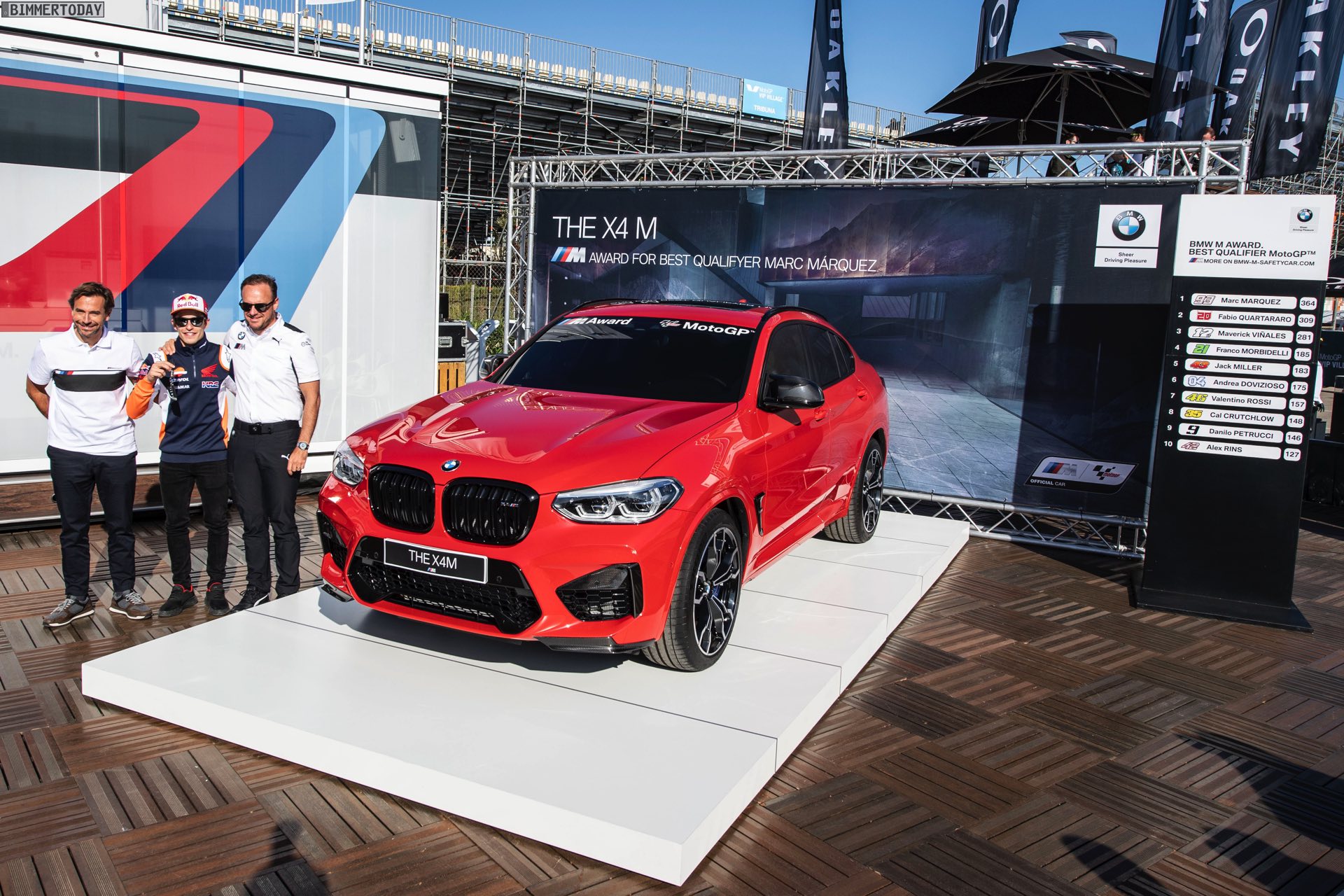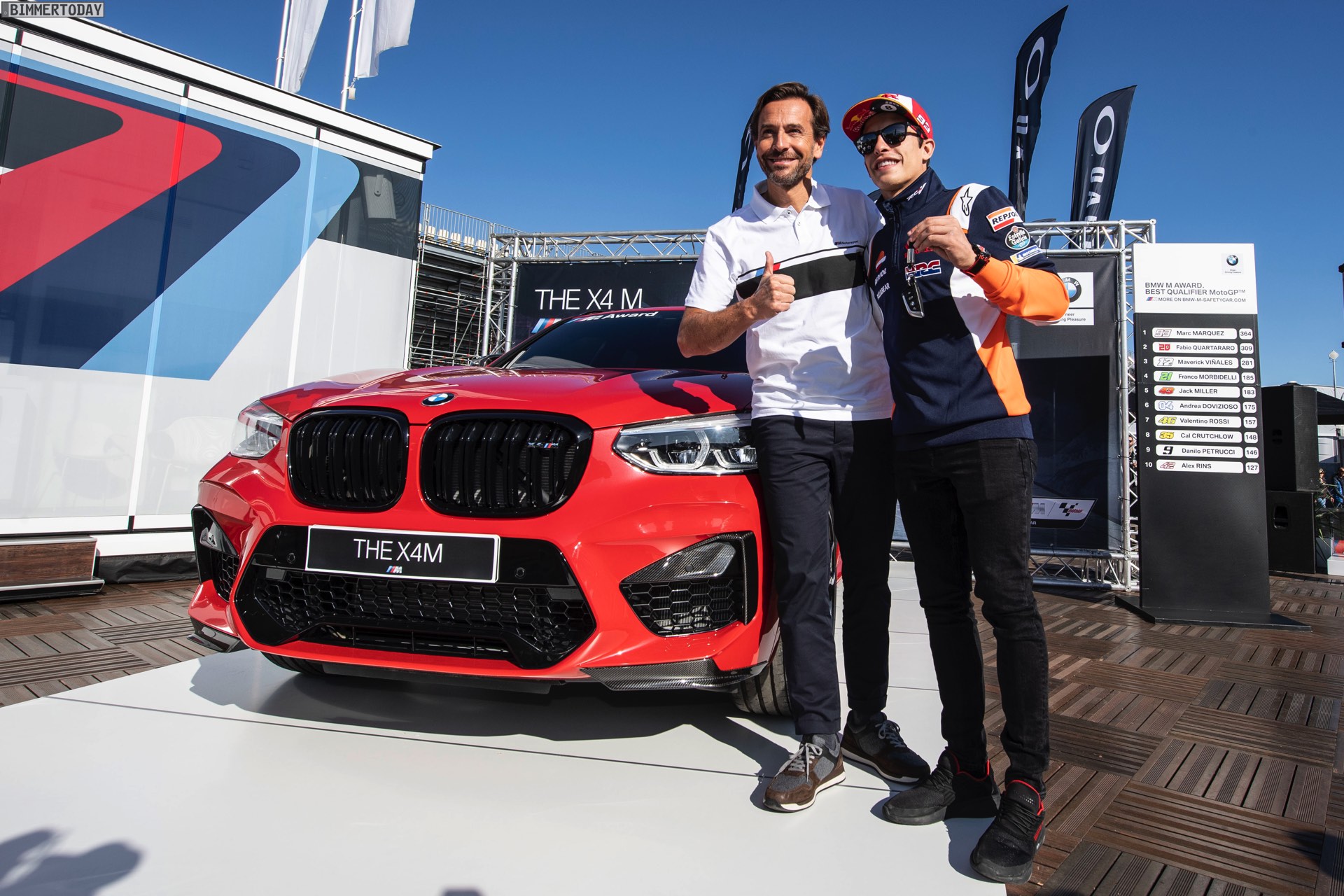 Markus Flasch (Geschäftsführer der BMW M GmbH): “Es ist beinahe eine Tradition geworden, hier in Valencia das Siegerfahrzeug im BMW M Award an Marc Márquez zu überreichen. Diese begehrte Auszeichnung sieben Mal in Folge zu gewinnen, und das in einem so hochkarätig besetzten Feld wie der MotoGP, ist eine herausragende Leistung, die ihresgleichen sucht. Herzlichen Glückwunsch zu dieser seit 2013 andauernden Rekordserie. Wir freuen uns sehr, ihm heute als Auszeichnung diesen exklusiven BMW X4 M Competition überreichen zu dürfen – ein sportliches, High-Performance-Automobil und echtes Kraftpaket, das von seinen Attributen her perfekt zu einem Ausnahmeathleten wie Marc passt. Wir wünschen ihm damit viel Freude am Fahren.”