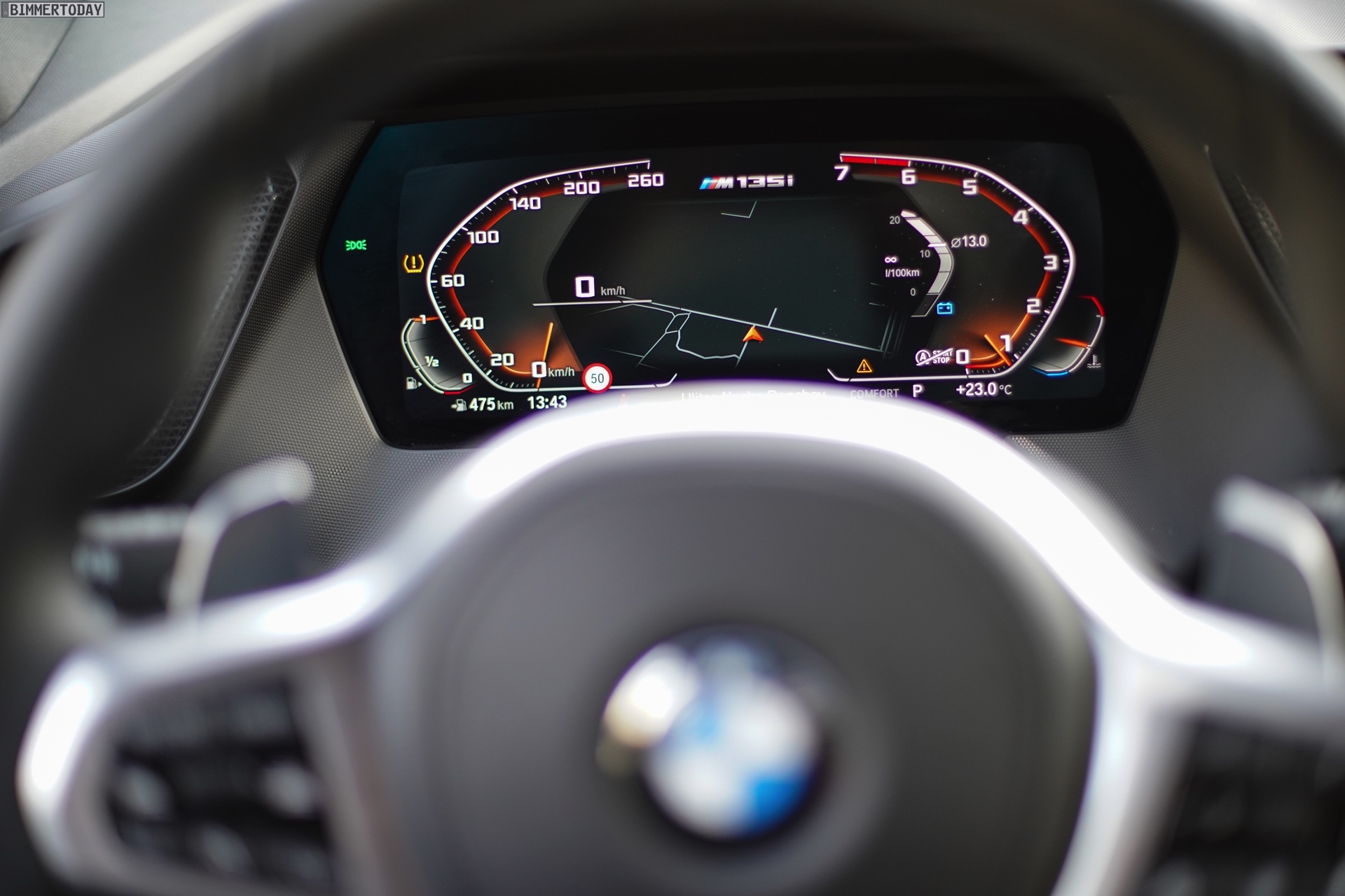 Nicht konfigurierbar sind alle Komponenten des Antriebs: Der BMW M135i 2020 kommt stets mit quer montiertem Turbo-Vierzylinder B48, Achtgang-Automatik und Allradantrieb xDrive. 306 PS und bis zu 450 Newtonmeter Drehmoment erlauben es, in 4,8 Sekunden von 0 auf 100 km/h zu beschleunigen. Die Höchstgeschwindigkeit wird elektronisch auf 250 km/h beschränkt, ein M Driver’s Paket mit höherer Vmax-Sperre ist für den 1er nicht erhältlich.