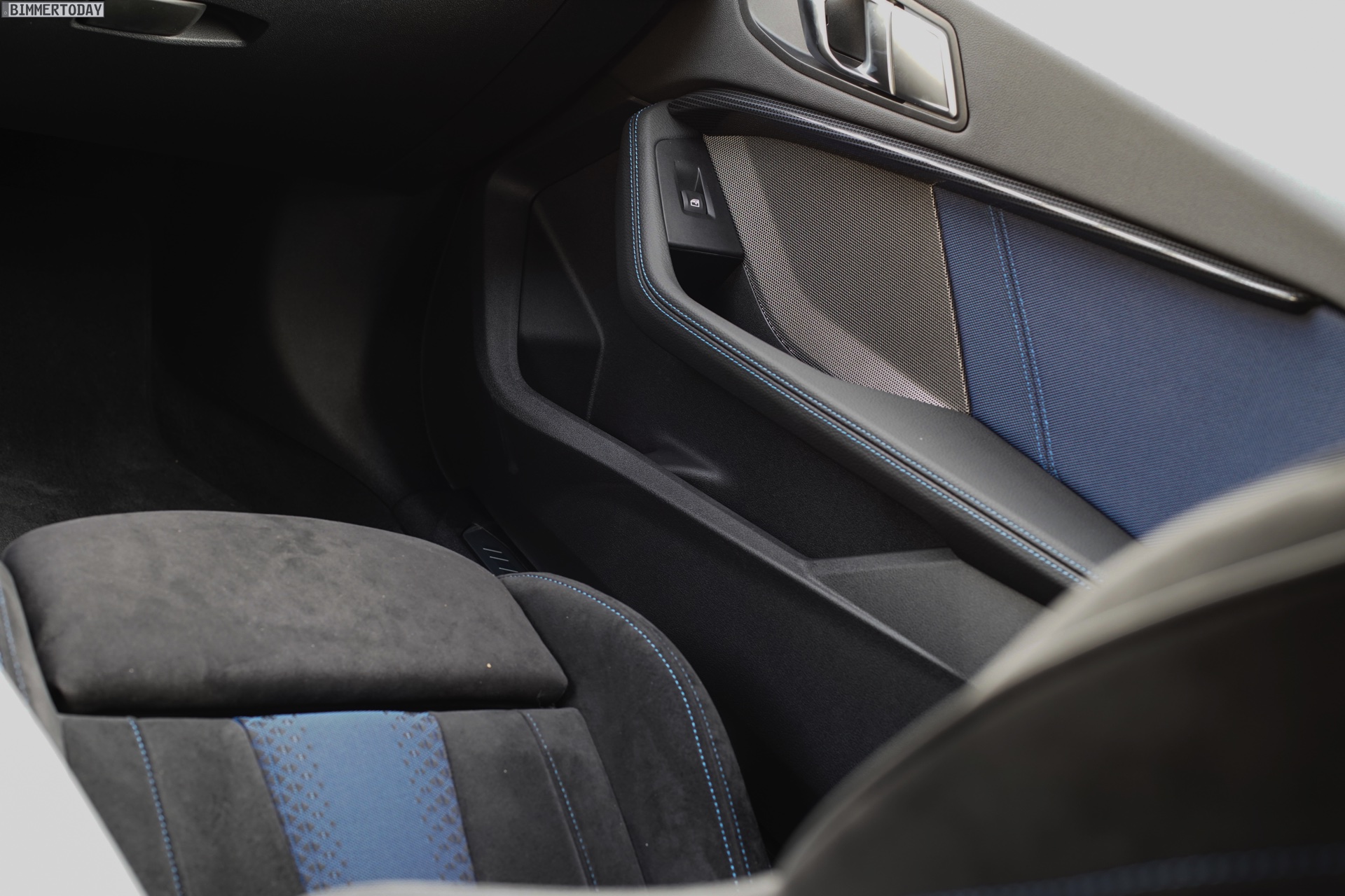 Im Innenraum sehen wir die beim M135i serienmäßige Ausstattung mit Stoff Trigon und Alcantara, wobei eine Vielzahl von Akzenten in den M-Farben den sportlichen Anspruch betonen. Verbaut ist auch das umfassend vernetzte BMW Live Cockpit Professional mit zwei 10,25 Zoll großen Displays zur Anzeige von Infotainment-Inhalten aller Art. Auf Wunsch wird der M135i auch mit einem großflächigen Head-up-Display geliefert, das alle für die Fahrt wichtigen Infos ins direkte Blickfeld des Fahrers projiziert.