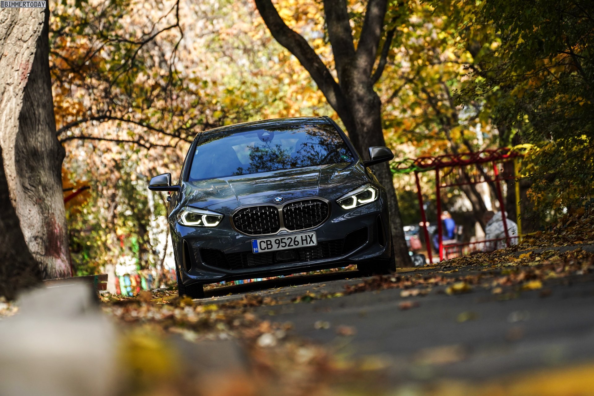 Im Rahmen der lokalen Vorstellung hat BMW Bulgarien ein neues Foto-Set vom BMW M135i F40 in Storm Bay Metallic anfertigen lassen. Auf den Fotos sehen wir das Topmodell der dritten 1er-Generation im herbstlichen Bulgarien und erhalten auch weitere Eindrücke davon, wie unterschiedlich die Individual-Lackierung in Storm Bay Metallic je nach Lichteinfall wirken kann. Mit 1.200 Euro Aufpreis ist Storm Bay nochmals spürbar teurer als die übrigen Metallic-Lackierungen, für die nur 700 Euro zusätzlich aufgerufen werden.