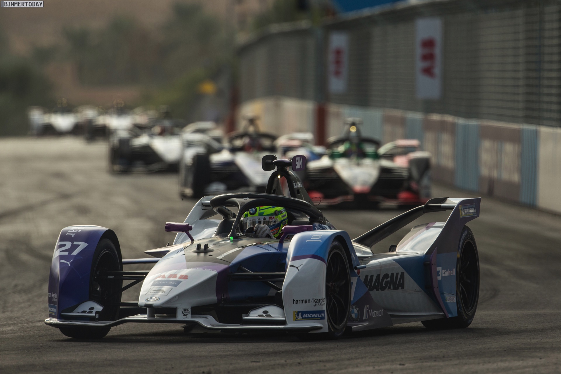 Sims: „In erster Linie sicher der enorme Speed, der dank der Abstimmungsarbeit des Teams von Freitag auf Samstag im BMW iFE.20 gesteckt hat. Vor allem in den Kurven lag das Auto fantastisch. Ein derart guter Grundspeed macht dir das Leben im Rennen natürlich von vornherein schon einmal sehr viel einfacher als noch am Freitag, als der Speed nicht ganz so gut war, was sicher auch mit der aufgrund des Sands deutlich rutschigeren Strecke zu tun hatte. Am Samstag war mir selbst bei den Restarts nach den Safety-Car-Phasen immer klar, dass ich in den Kurven genug Boden gutmachen kann, um auf den Geraden die Führung behaupten zu können, ohne – wie noch am Freitag – zu viel Energie zu verbrauchen. Dieses Bewusstsein beruhigt dich als Fahrer in einer Rennserie, in der Energiemanagement noch einmal wichtiger geworden ist, ungemein.“