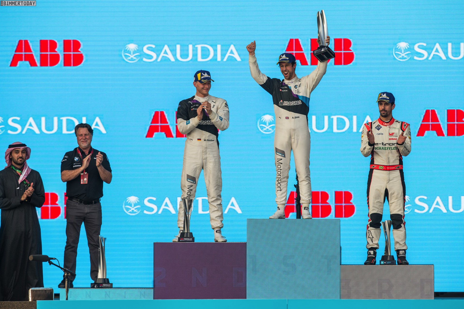 Die Stärke des BMW iFE.20 wird auch daran deutlich, dass Sims saisonübergreifend bereits seine dritte Pole Position in Folge feiern konnte, was bisher noch niemandem in der Formel E gelungen war. Teamkollege Maximilian Günther hatte weniger Glück und muss ohne Punkte aus Saudi-Arabien abreisen, konnte mit seinem zweiten Platz im zweiten Rennen aber ebenfalls seine Stärke zeigen. Erst im Nachhinein wurde Günther wegen eines Überholmanövers unter Safety Car mit einer Zeitstrafe belegt, die ihn aus den Punkterängen warf.