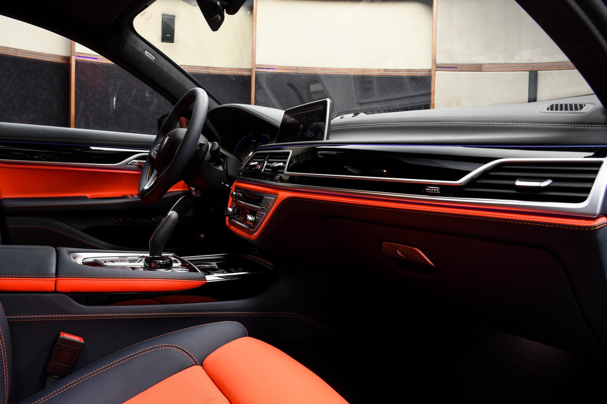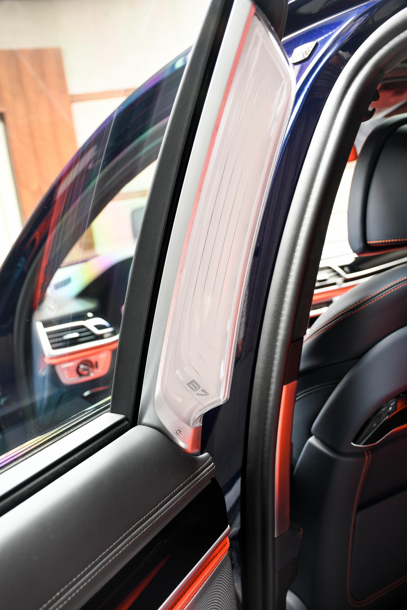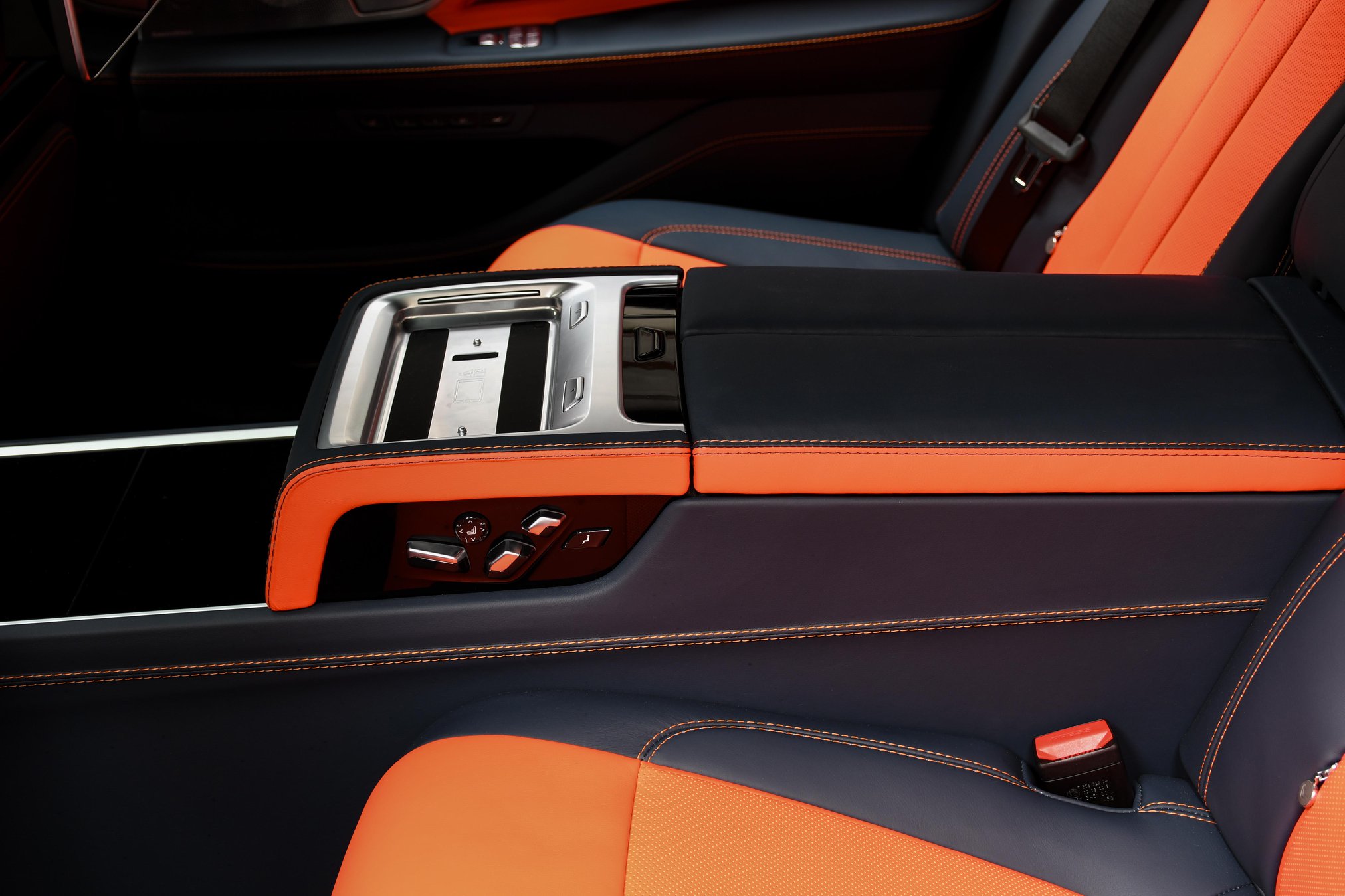 Gleichzeitig genießen die Insassen erlesenen Komfort und Luxus, denn im BMW Alpina B7 wird fast jeder Kundenwunsch Realität. Auf den Fotos sehen wir die extrem hochwertige Lavalina-Ausstattung in einer Bicolor-Ausführung, die dunkles Blau mit kräftigem Rot kombiniert. Wer so feines Leder wünscht, muss allerdings tief in die Tasche greifen: Während Nappaleder im Grundpreis von 154.800 Euro enthalten ist, steigt der Preis bereits mit der Ausstattung Lavalina I um 8.500 Euro. Die opulente Vollleder-Variante hört auf den Namen Lavalina II und kostet 18.400 Euro Aufpreis.
