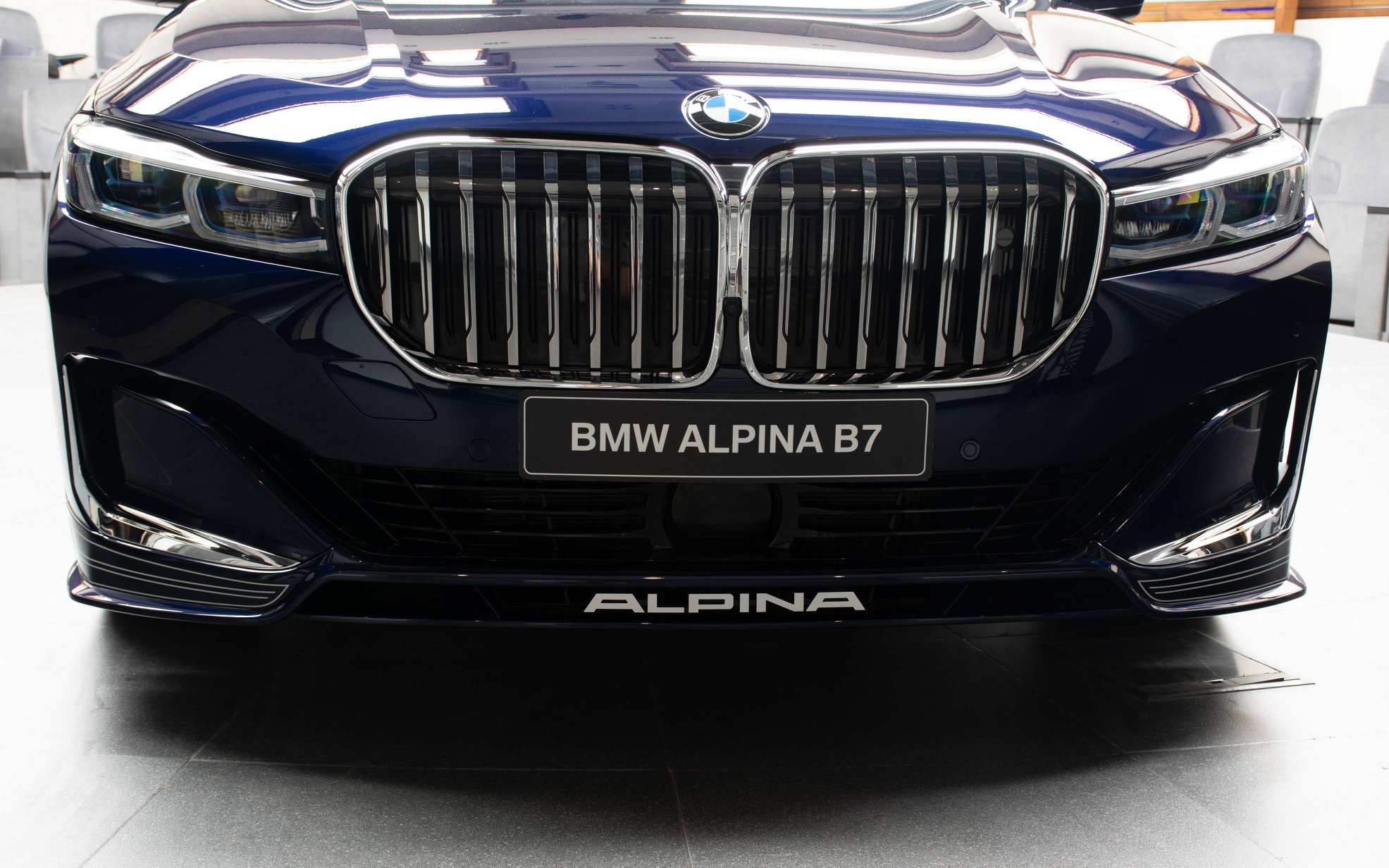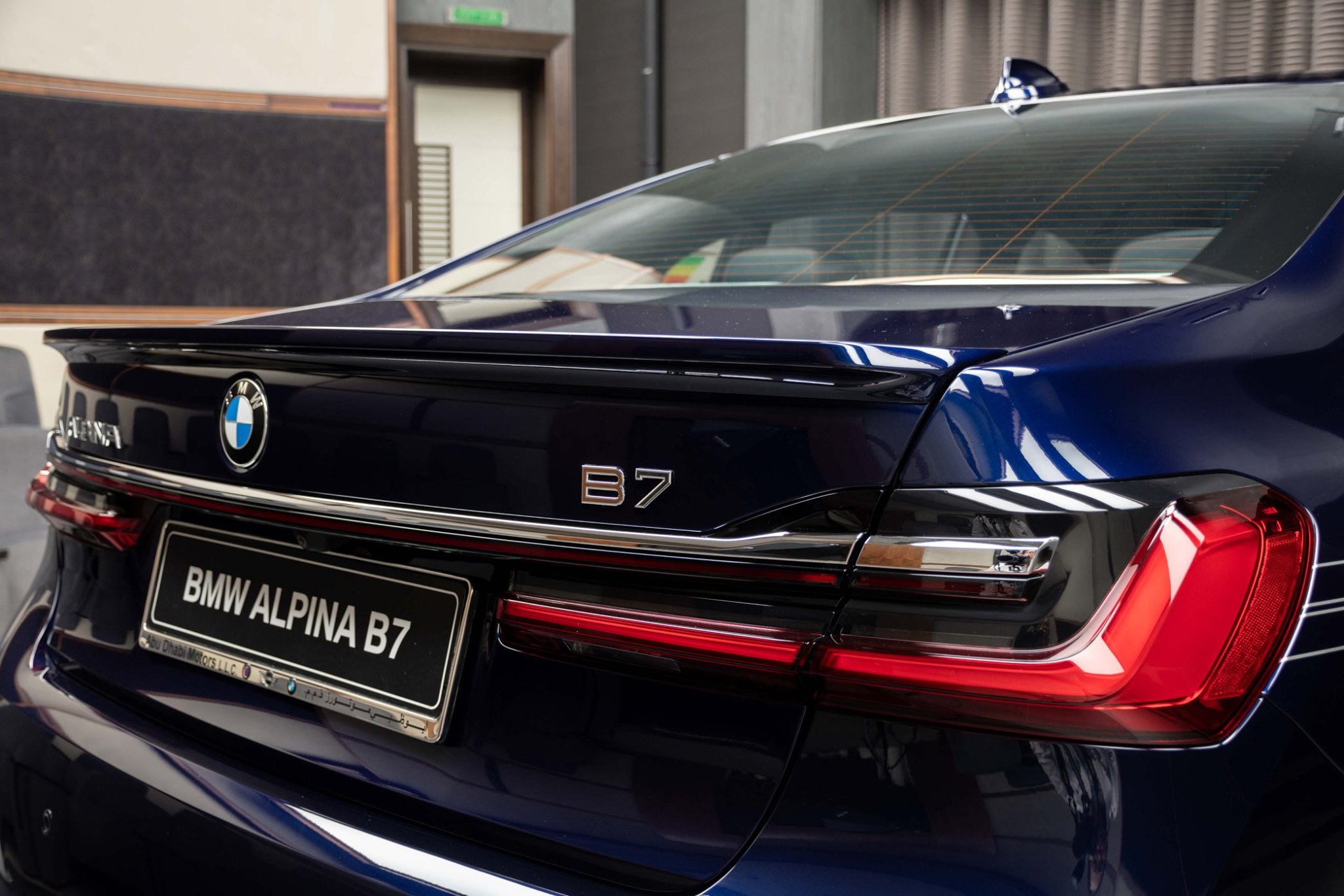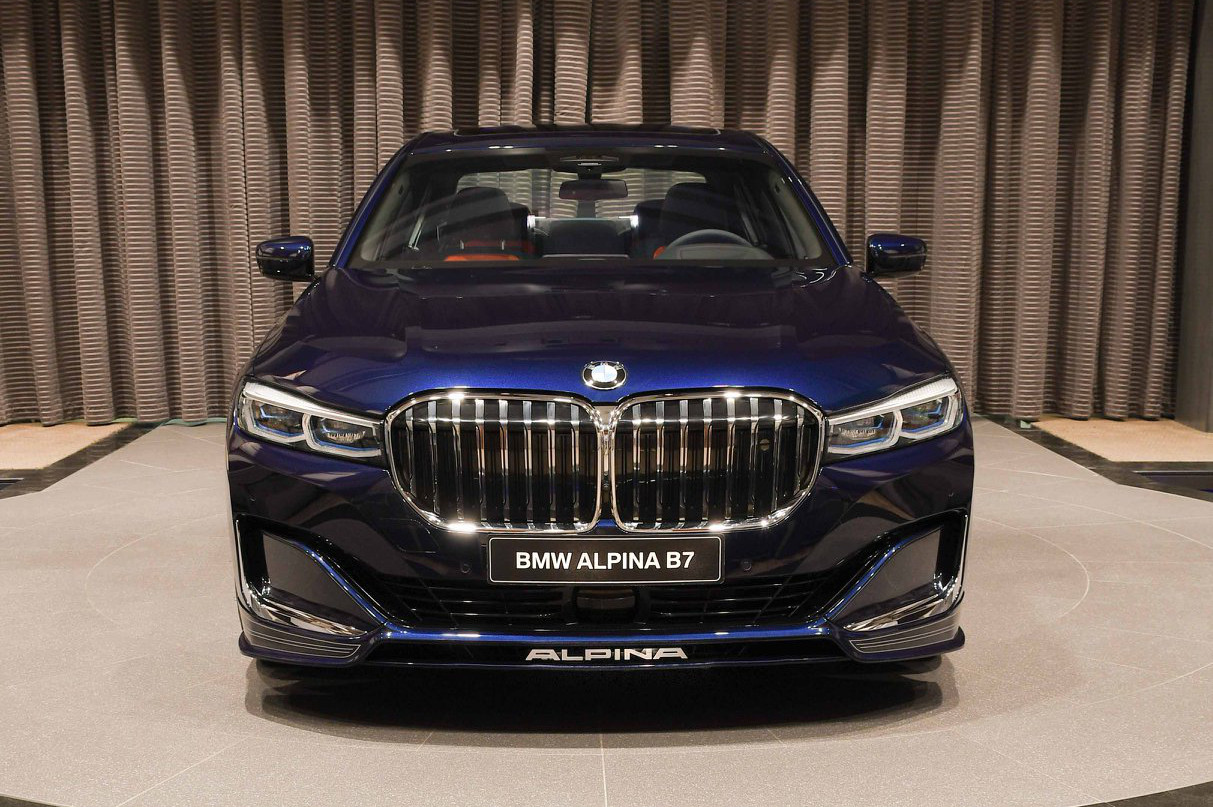 Es muss nicht immer Alpinablau sein: Auch wenn man bei einem blauen BMW Alpina B7 Facelift intuitiv an die klassische Lackierung der meisten Fahrzeuge aus Buchloe denken muss, kann der exklusivste aller 7er auch mit einer “gewöhnlichen” BMW-Farbe glänzen. Aktuelle Fotos aus dem Showroom von BMW Abu Dhabi Motors zeigen uns den B7 in Tansanitblau Metallic, das im Vergleich zu Alpinablau deutlich dunkler ausfällt.
