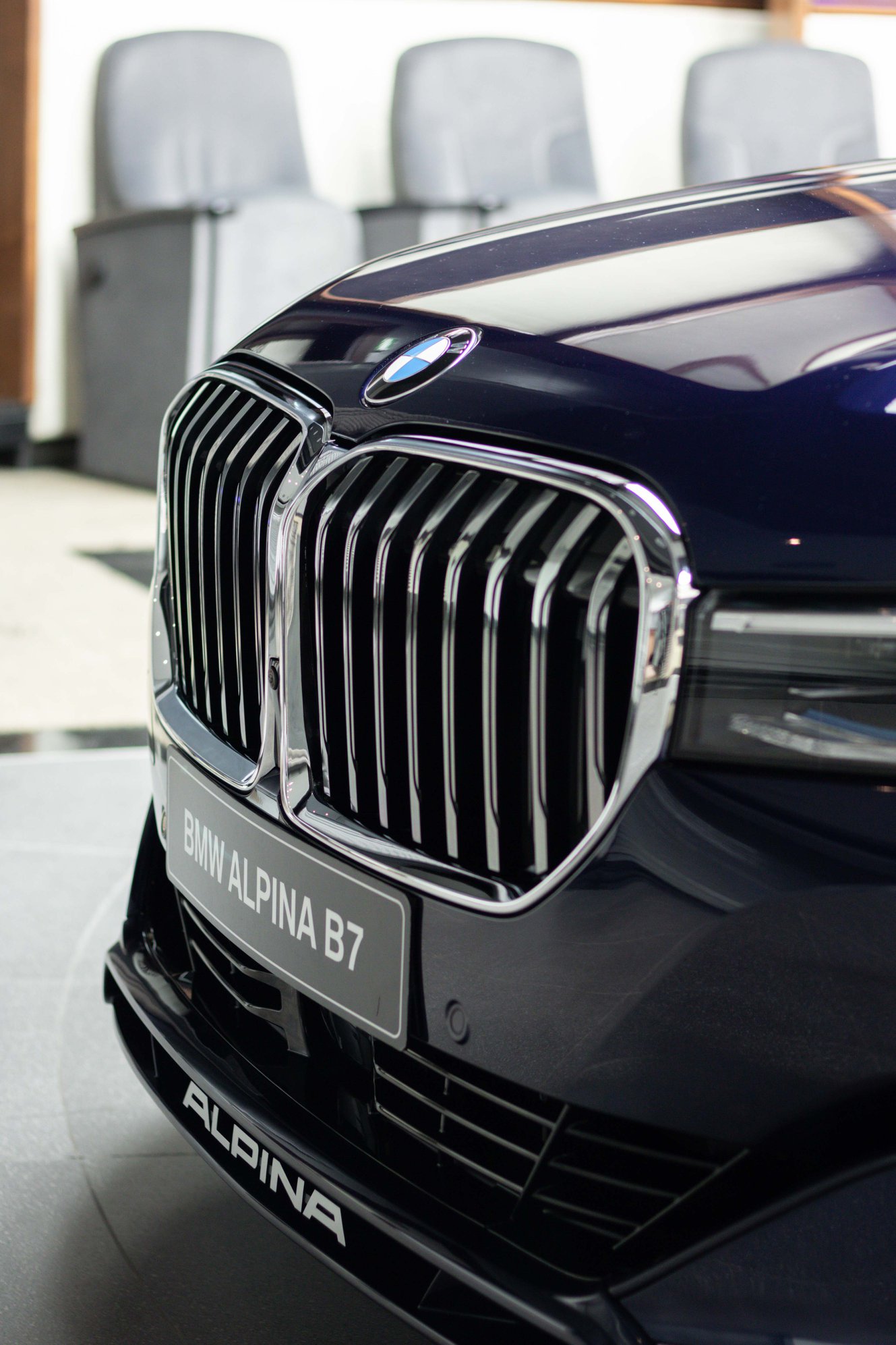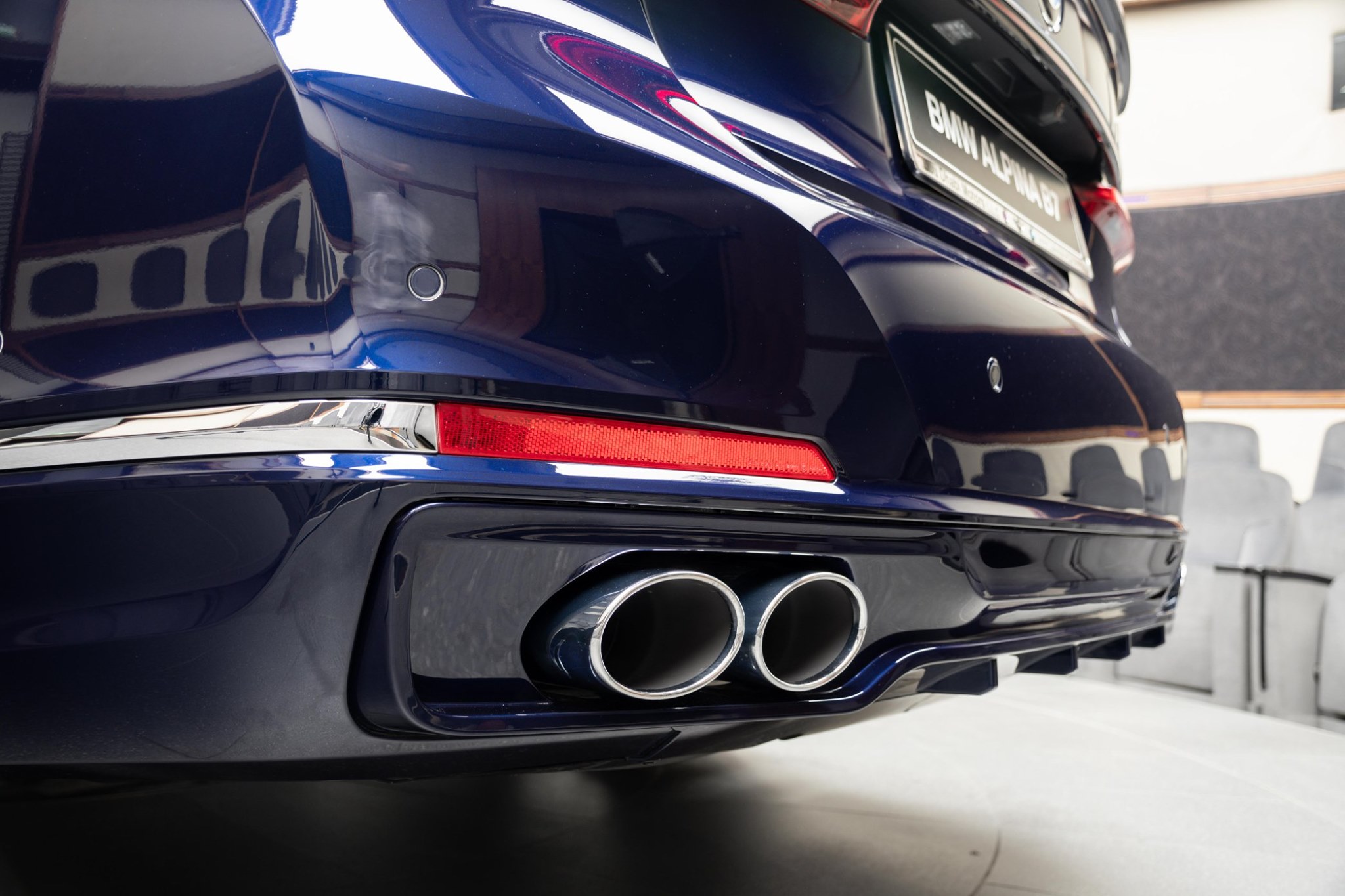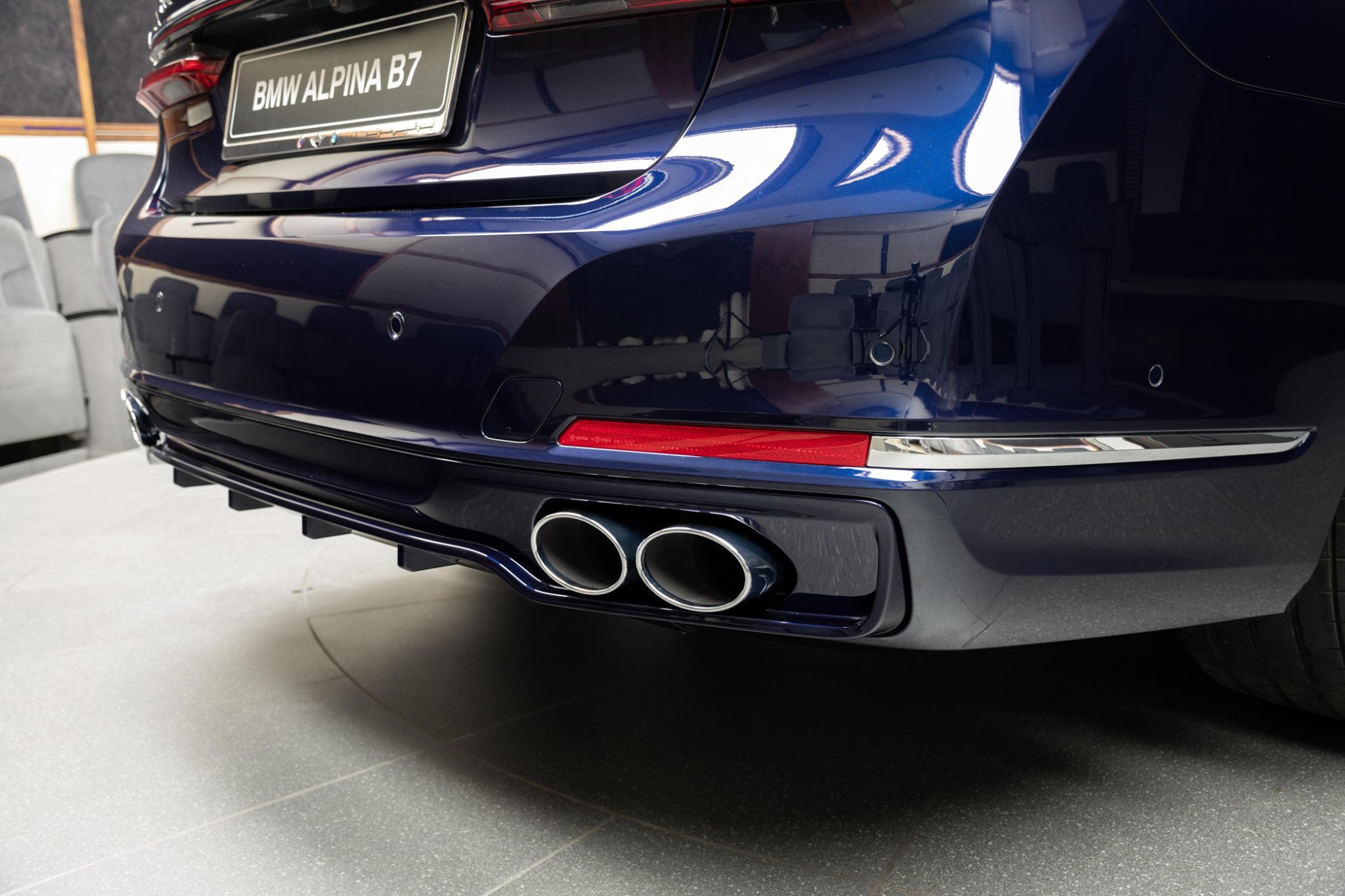 Es muss nicht immer Alpinablau sein: Auch wenn man bei einem blauen BMW Alpina B7 Facelift intuitiv an die klassische Lackierung der meisten Fahrzeuge aus Buchloe denken muss, kann der exklusivste aller 7er auch mit einer “gewöhnlichen” BMW-Farbe glänzen. Aktuelle Fotos aus dem Showroom von BMW Abu Dhabi Motors zeigen uns den B7 in Tansanitblau Metallic, das im Vergleich zu Alpinablau deutlich dunkler ausfällt.