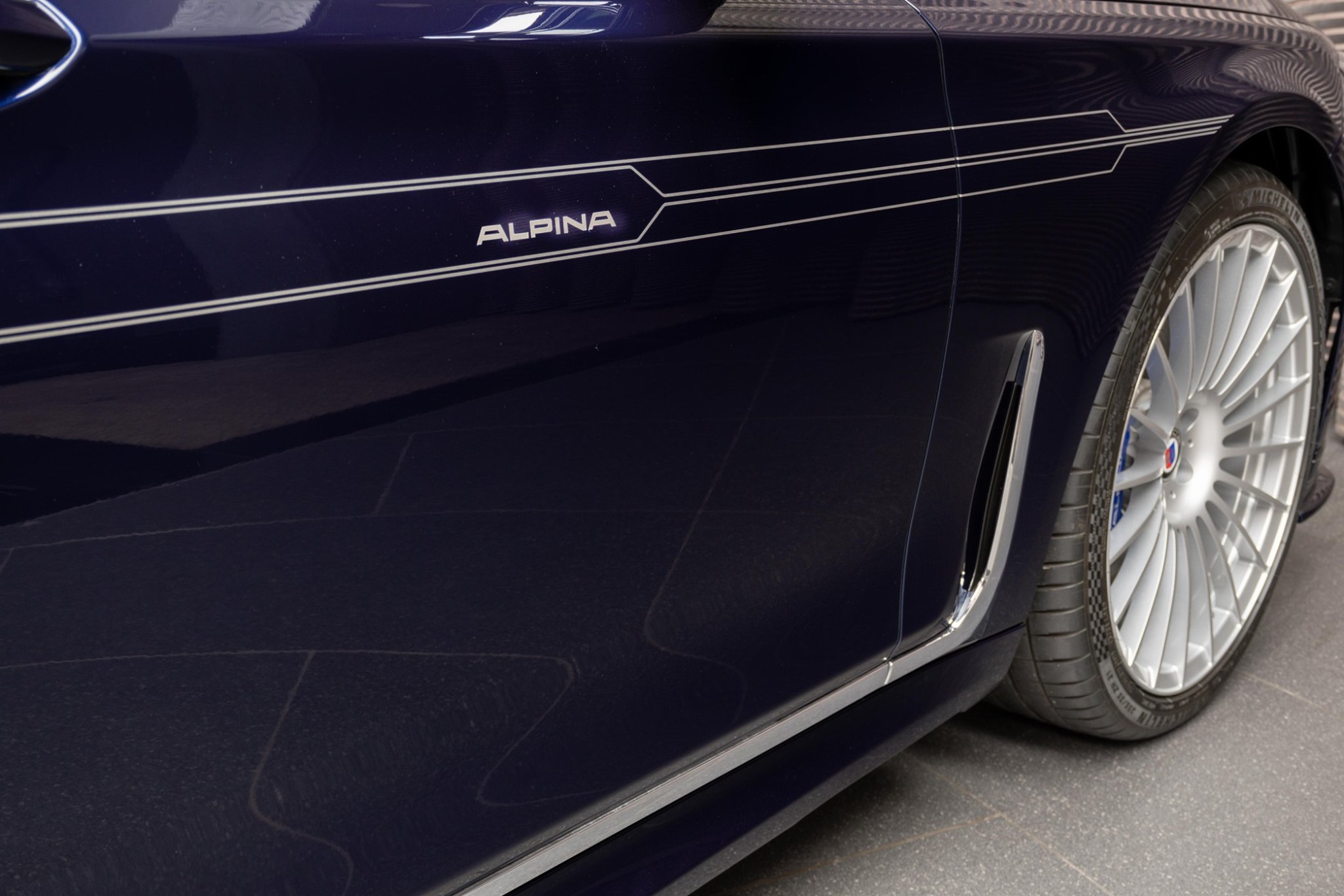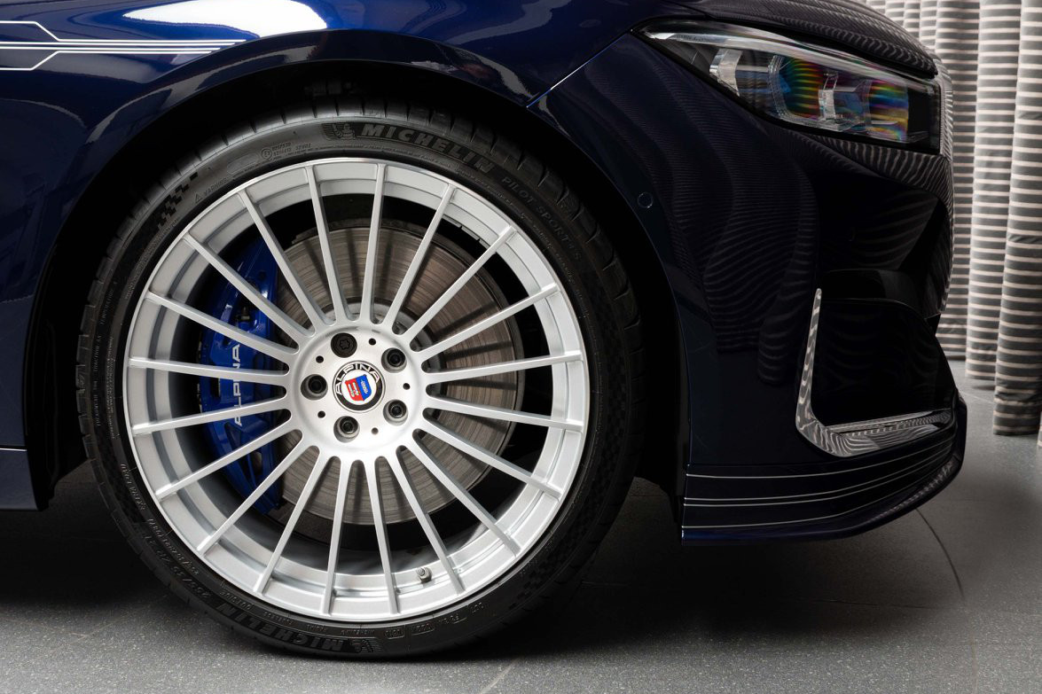 Dank der 21 Zoll großen Felgen im traditionsreichen Alpina Classic-Design, dem farbig abgesetzten Schriftzug an der Frontschürze, der seitlichen Dekor-Beklebung, der Heckspoiler-Lippe und der Abgasanlage mit ihren vier Endrohren ist der BMW Alpina B7 auch ohne Blick auf den Schriftzug am Heck klar erkennbar. Doch auch wenn es für Kenner keine Zweifel gibt, dürften weniger autobegeisterte Beobachter den Alpina für kaum mehr als einen sehr edel konfigurierten 7er halten – was für viele Alpina-Kunden ein sehr wichtiges Kriterium ist.