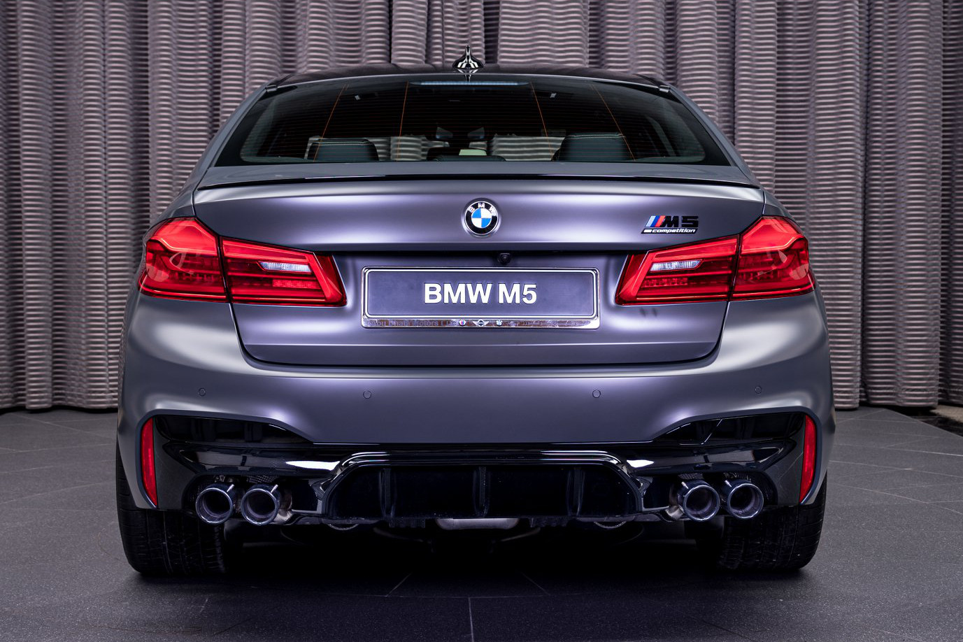 Basis des Sondermodells in Frozen Dark Grey ist der aktuelle BMW M5 F90 in der Competition-Version. Dank M xDrive sowie 625 PS und 750 Newtonmeter Drehmoment ist die Power-Limousine über alle Leistungs-Zweifel erhaben und sprintet bei Bedarf in nur 3,3 Sekunden aus dem Stand auf 100 km/h, die 200er-Marke fällt im Idealfall nach 10,8 Sekunden.