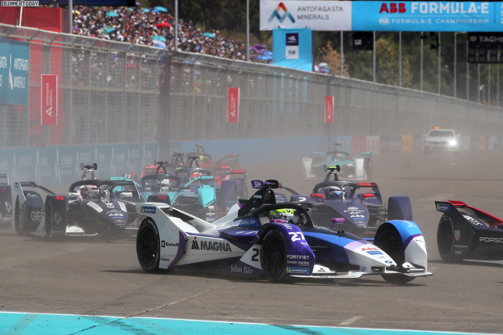 Maximilian Günther hat beim E-Prix von Santiago de Chile den zweiten Saisonsieg für BMW Andretti geholt und konnte damit die bisher starke Performance der Münchner unterstreichen. Günther war vom zweiten Platz gestartet und hielt sich konstant in den Top-3, bis er gegen Rennende vom effizienten Antrieb des BMW iFE.20 profitierte und mit den größeren Energie-Reserven deutlich schneller als die Konkurrenz fahren konnte. Wenige Kurven vor Schluss war der ehemalige BMW-Pilot Félix António da Costa chancenlos und musste Günther praktisch kampflos passieren lassen.