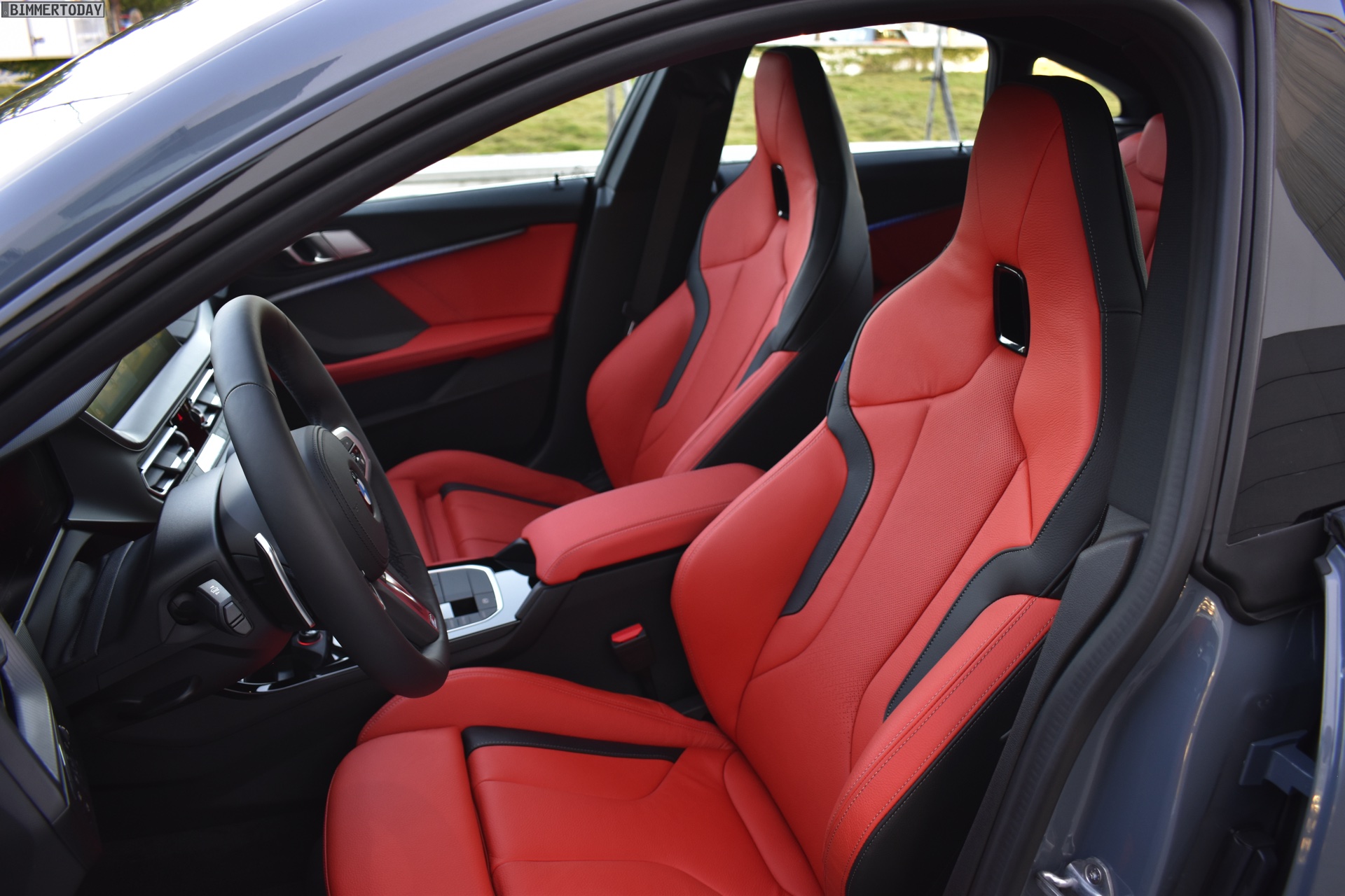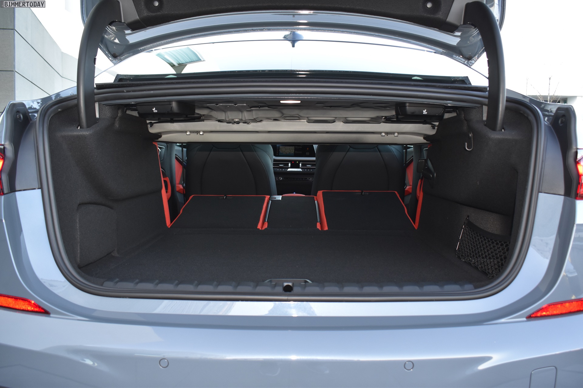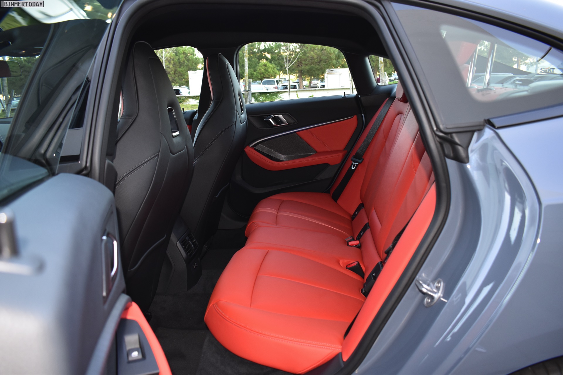 Im Innenraum trägt das gezeigte Fahrzeug die Lederausstattung Dakota in Magmarot, die optionalen M Sportsitze unterstreichen den sportlichen Look. Die serienmäßig im Verhältnis 40:20:40 teilbare Rückbank bietet auch Erwachsenen genügend Platz für eine bequeme Sitzposition und erweitert bei Bedarf auch den Kofferraum. Letzterer hat nicht nur 430 Liter Volumen, sondern ist dank der großen Kofferraumklappe und flacher Ladekante auch sehr gut zu beladen.