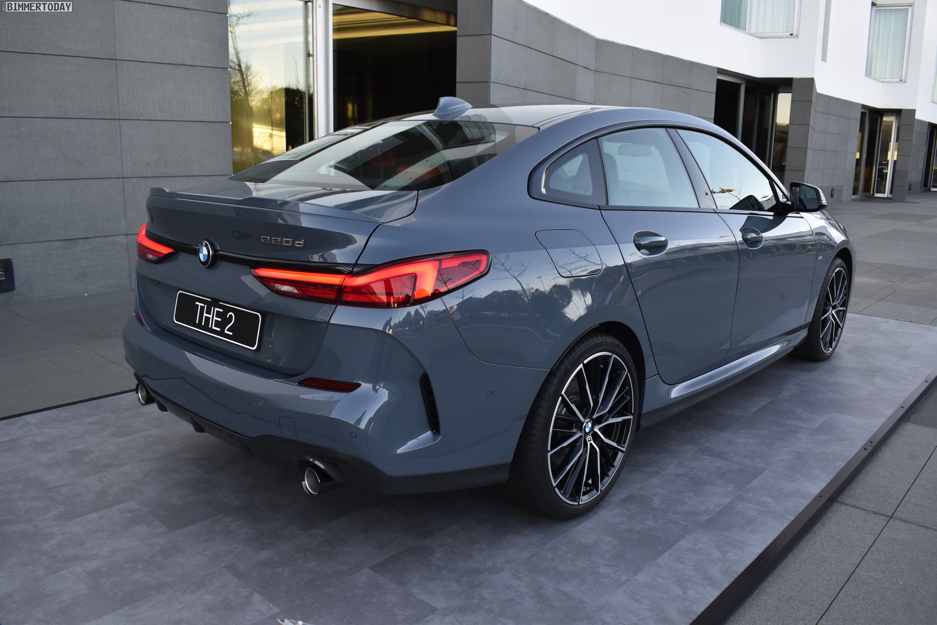 Wie das Typenschild am Heck verrät, sehen wir den F44 als BMW 220d Gran Coupé. Der zunächst einzige Diesel ist vielen BMW-Fahrern bestens bekannt, treibt mit seien 190 PS und 400 Newtonmeter Drehmoment aber in diesem Fall ausschließlich die Vorderräder an. Ein BMW 220d xDrive mit Allradantrieb ist fest geplant und wird später folgen, ist aber momentan noch nicht bestellbar.
