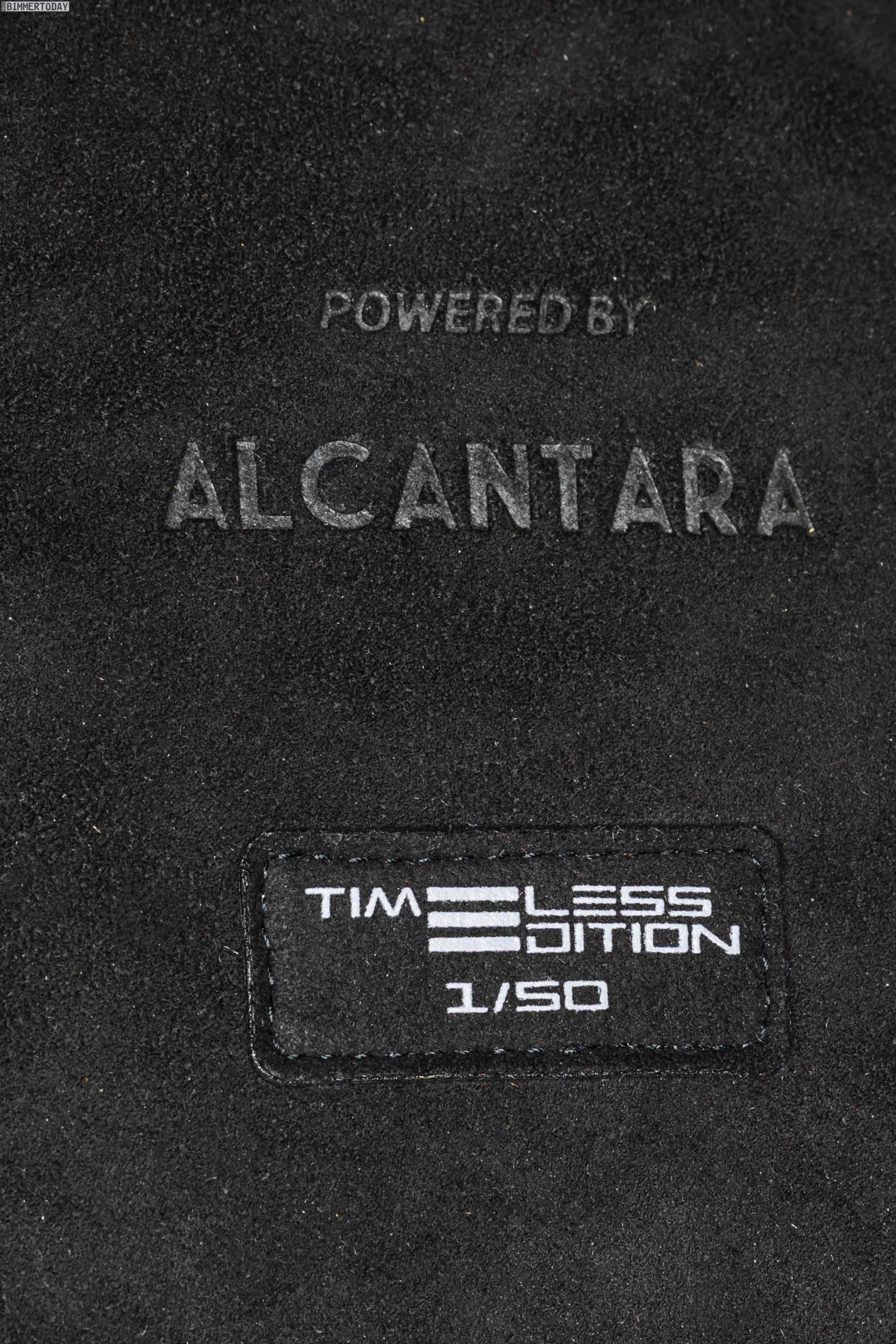 Neben den Sitzen wurden auch die Türverkleidungen, Armlehnen und der Dachhimmel vollständig mit Alcantara bezogen. Abgerundet wird das Luxus-Interieur mit einem Hinweis auf die Exklusivität der Timeless Edition und mit einer aus Alcantara gefertigten Tasche, die perfekt mit dem Fahrzeug-Interieur harmoniert.