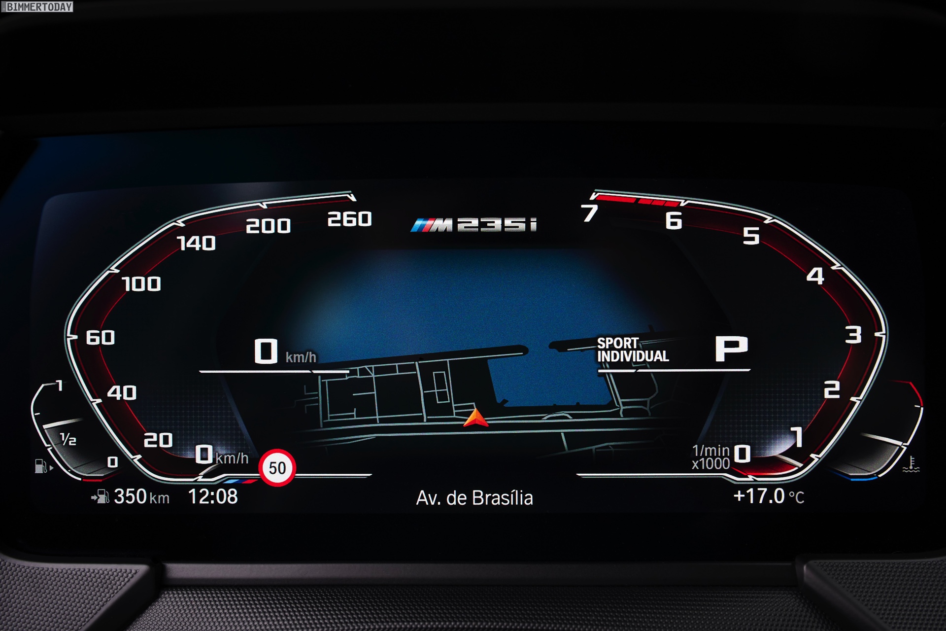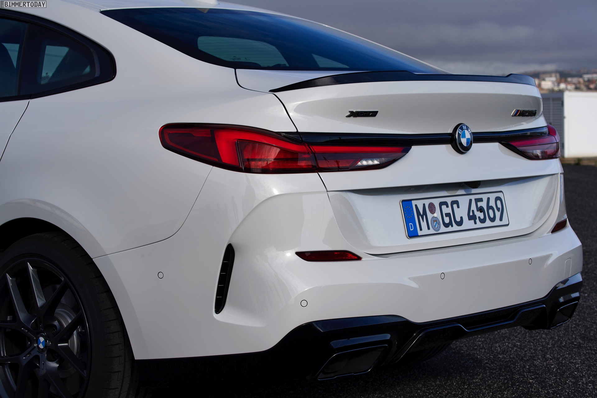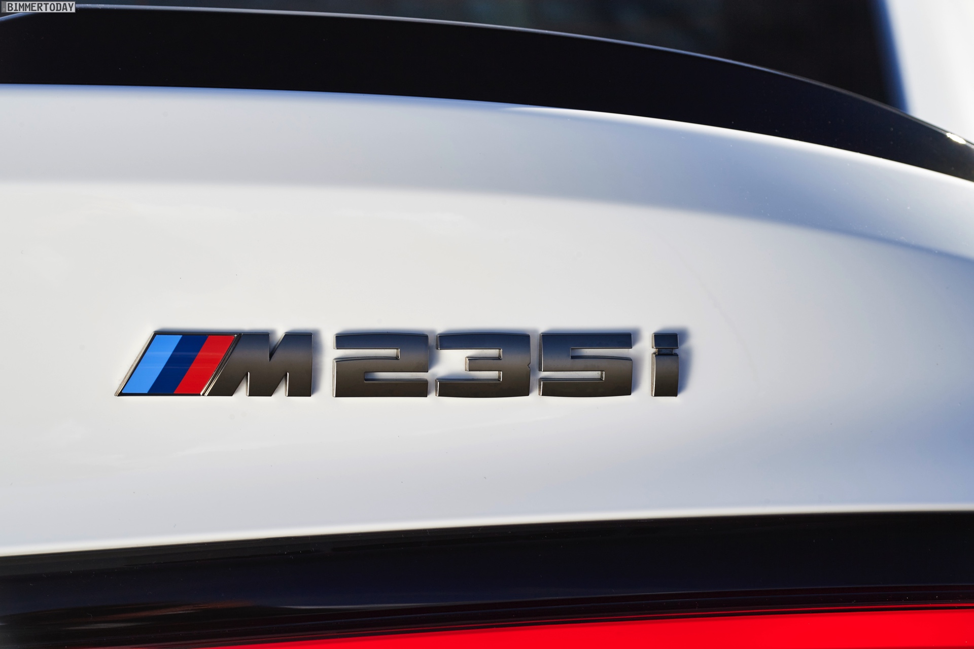 Wie in den größeren Baureihen wird die fließende Dachlinie auch beim BMW M235i Gran Coupé mit vier rahmenlosen Türen und einem markanten Design an Front und Heck kombiniert. Auch wenn die BMW UKL-Architektur als technische Plattform unübersehbar ist, unterscheidet sich das 2er Gran Coupé mit seinen völlig eigenständig gestalteten Nieren und dem im aktuellen BMW-Lineup einzigartigen Heckdesign klar vom 1er und allen anderen Baureihen.