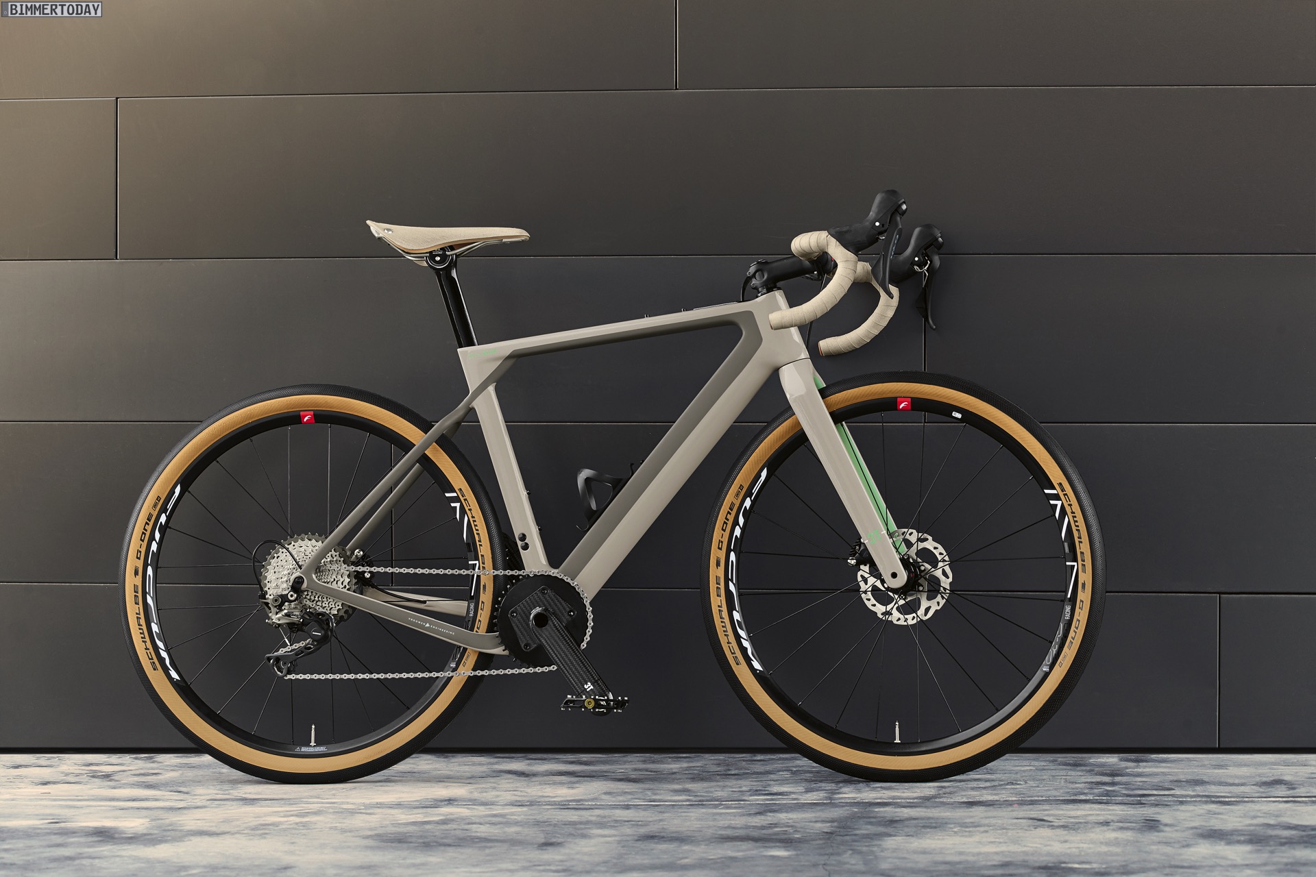 Rund um den Carbon-Rahmen des 3T FOR BMW Bike finden sich Elemente wie die weltweit leichteste Carbon-Aero-Kurbel, Ledersattel und Ledergriffe von Brooks, eine GRX-Schaltgruppe von Shimano, Laufräder von Fulcrum und eine One Speed-Bereifung von Schwalbe. Wie im Fall eines Power-SUV soll das Technik-Paket Dynamik und Offroad-Tauglichkeit unter einen Hut bringen und auf praktisch jedem Untergrund funktionieren – von Kopfsteinpflaster über Asphalt- und Feldwege bis hin zu Schotter und Geröll.