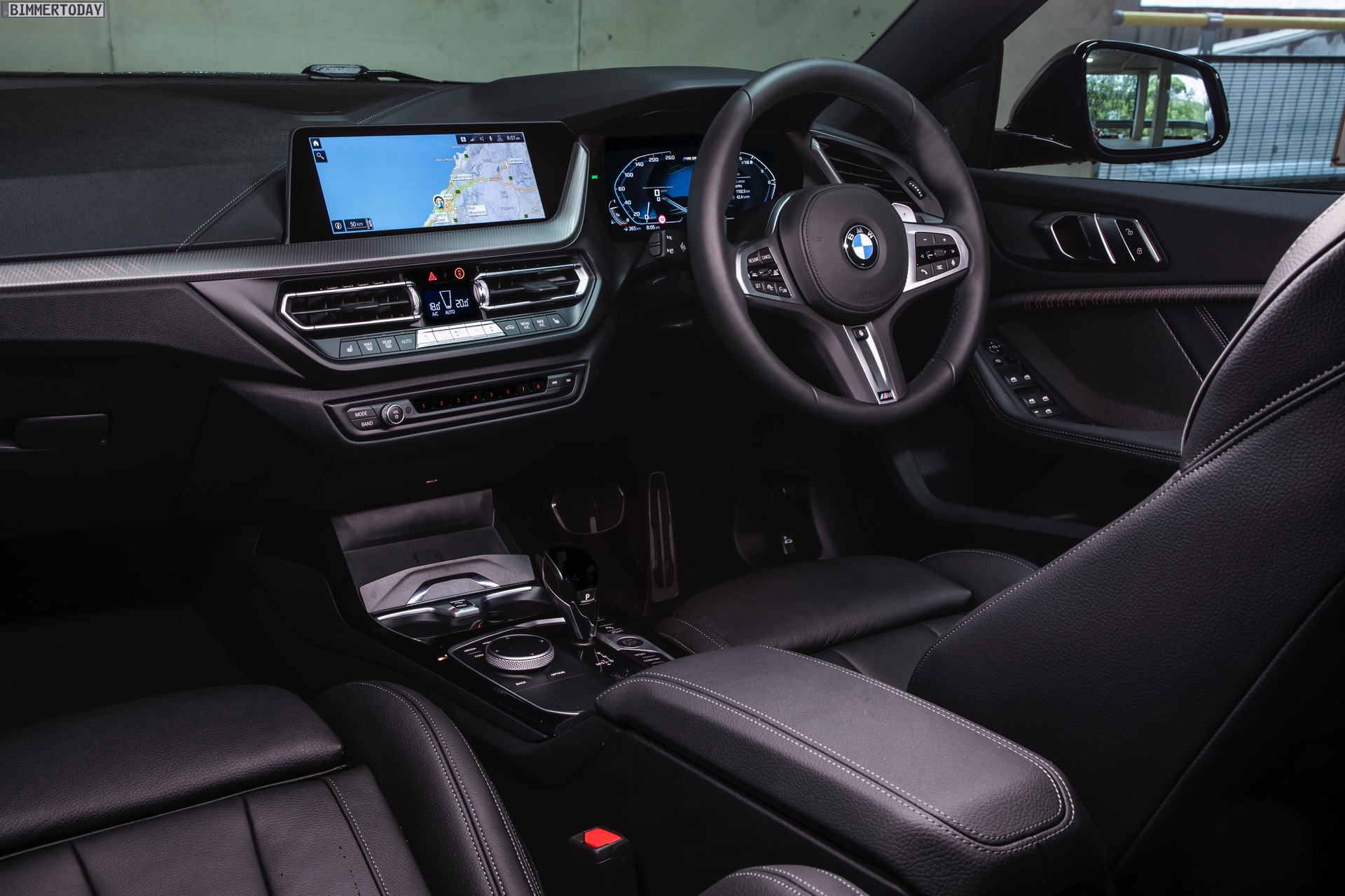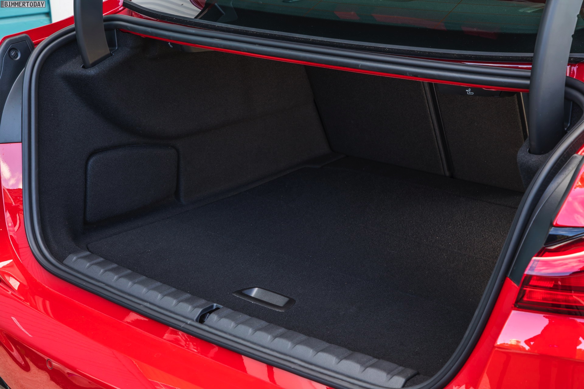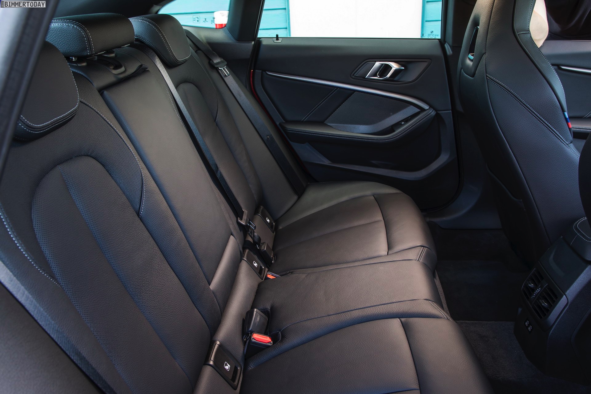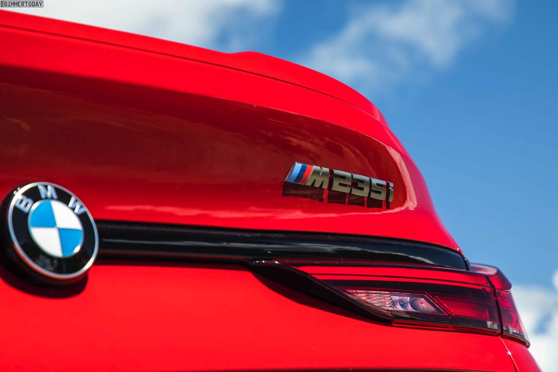 Während wir das kräftige Rot am BMW M235i Gran Coupé bisher stets in Verbindung mit M Performance Paket, dementsprechend erweiterter Shadow Line und folglich auch mit schwarz lackierten Mesh-Nieren zu sehen bekommen haben, zeigen uns die Australier erstmals eine Konfiguration mit serienmäßigen Design-Akzenten in Cerium Grey. Sowohl die Nieren als auch die seitlichen Lufteinlässe der Frontschürze, die Außenspiegel-Kappen und Endrohr-Blenden sowie der Modellschriftzug am Heck sind in der für M Performance-Modelle reservierten Farbe gehalten und grenzen den M235i so noch stärker von den schwächeren Modellen ab.