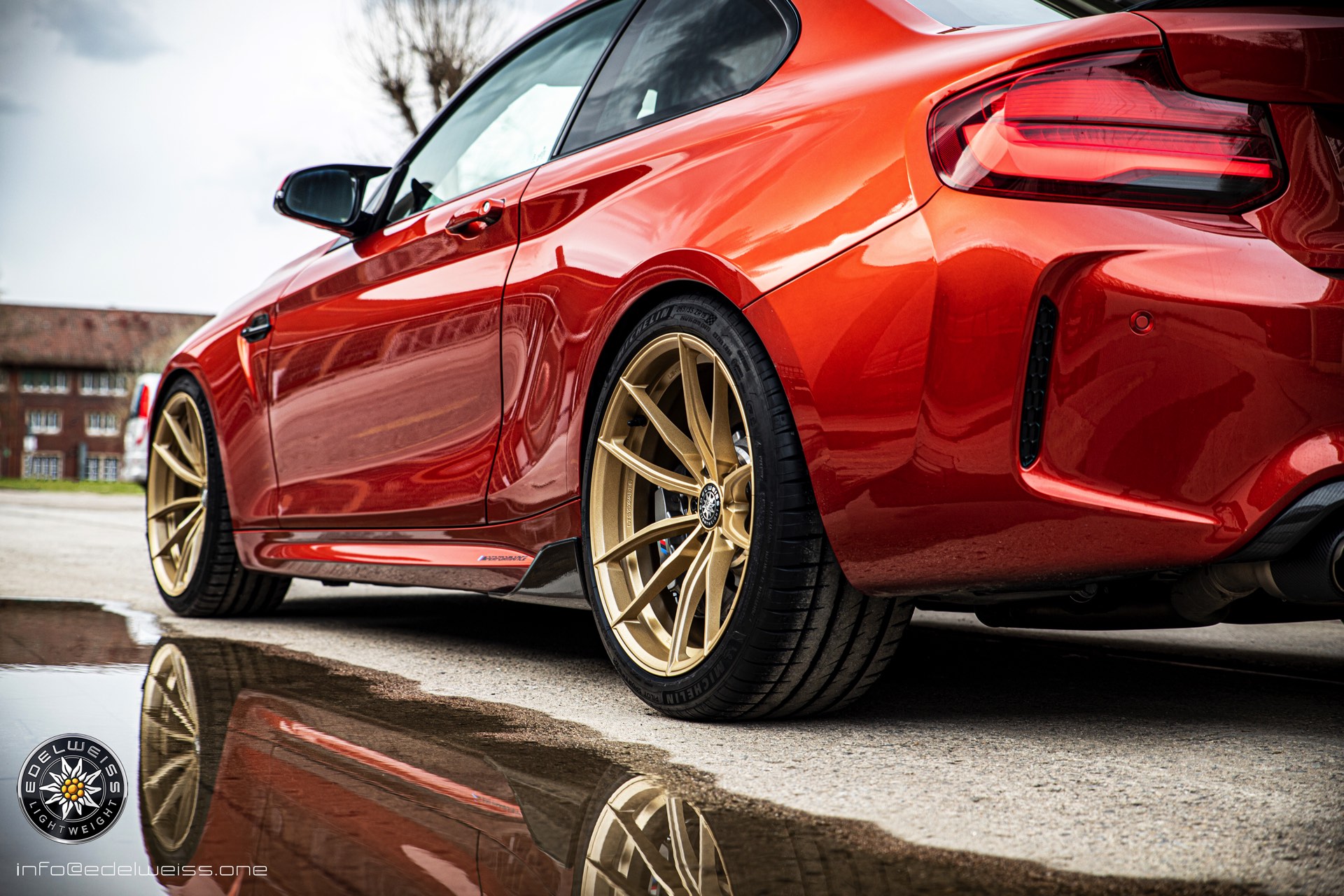 Das Ergebnis kann sich im Fall der 19-Zoll-Variante für den BMW M2 nicht nur optisch sehen lassen, es überzeugt auch auf der Waage: Nur 7,8 Kilogramm wiegt eine Felge im Format 9×19 ET20 für die Vorderachse, die breiteren Hinterachs-Felgen im Format 10×19 ET33 wiegen nur 500 Gramm mehr. So spart ein Satz Edelweiss LT°5 im Vergleich zu den serienmäßigen M2-Felgen Doppelspeiche 437 M insgesamt 8,8 Kilogramm ungefederte Massen ein, im Vergleich zu den M2 Competition Felgen 788 M sind es stolze 14,0 Kilogramm und im Vergleich zur optionalen M Performance-Felge Y-Speiche 763 M sind es immerhin 6,2 Kilogramm weniger.