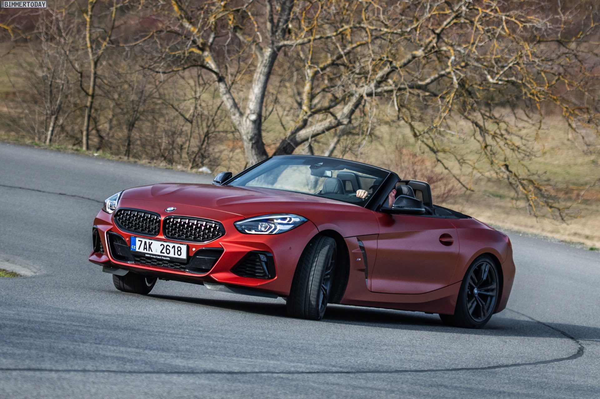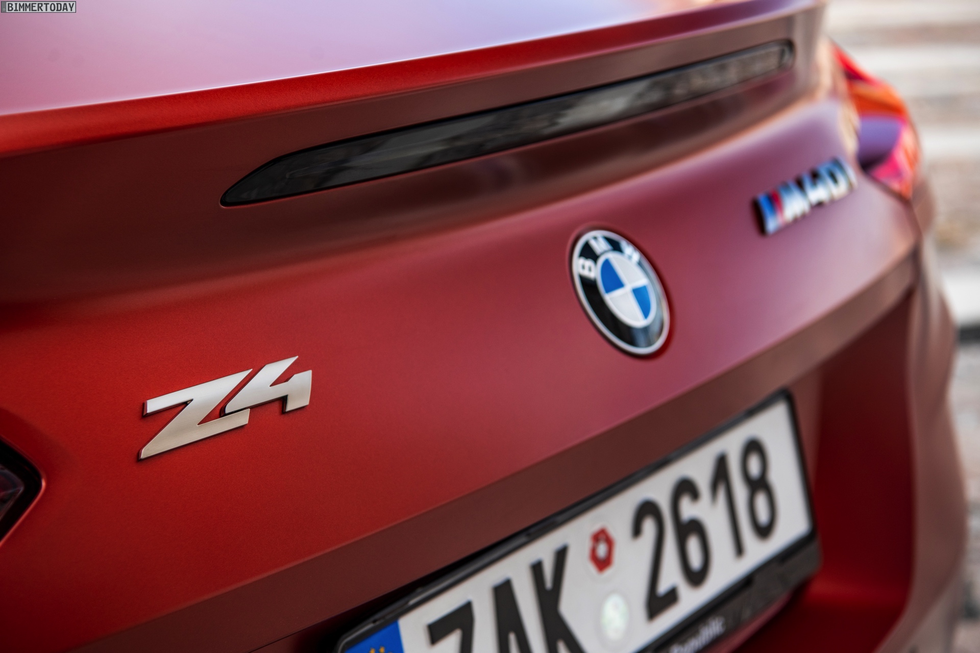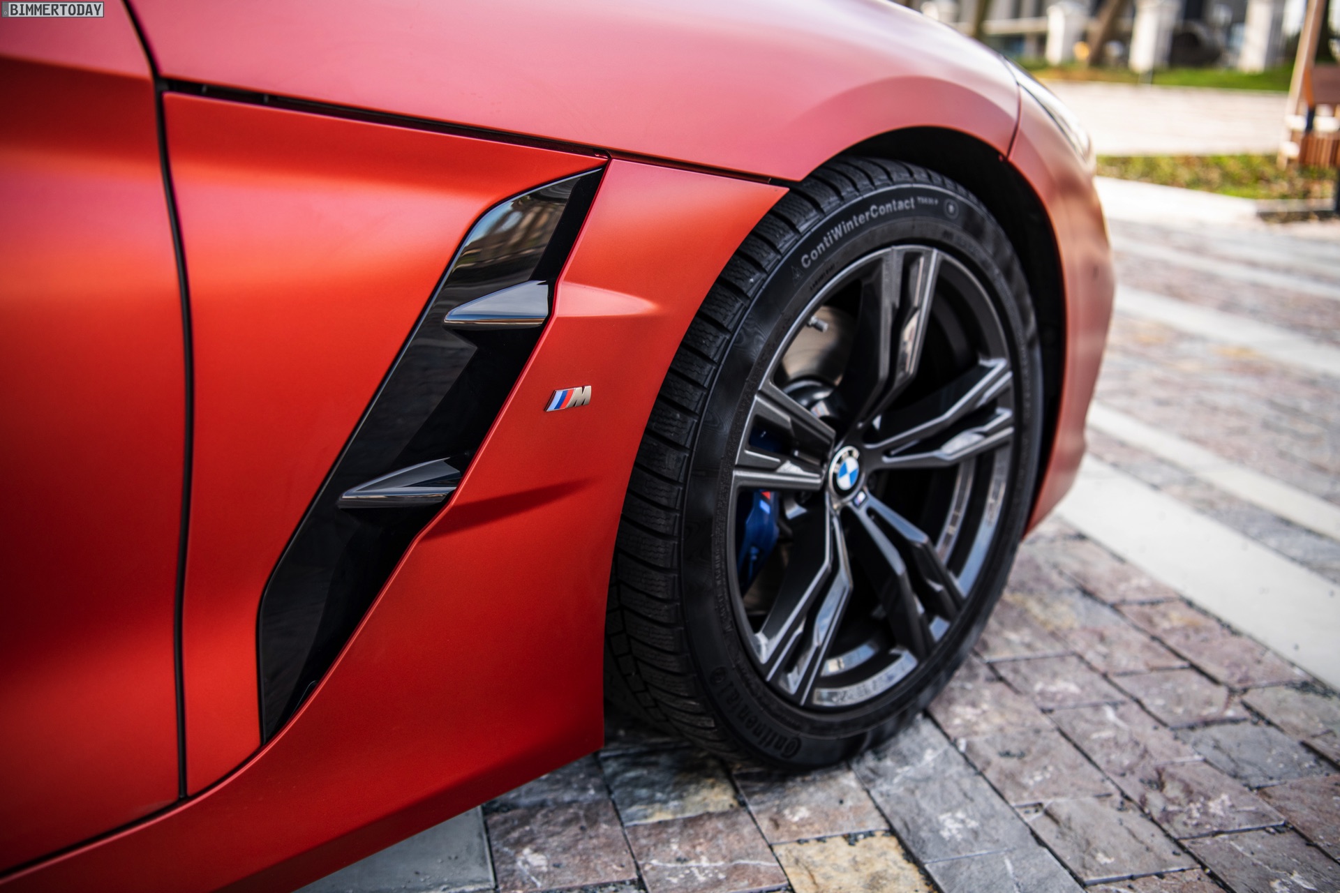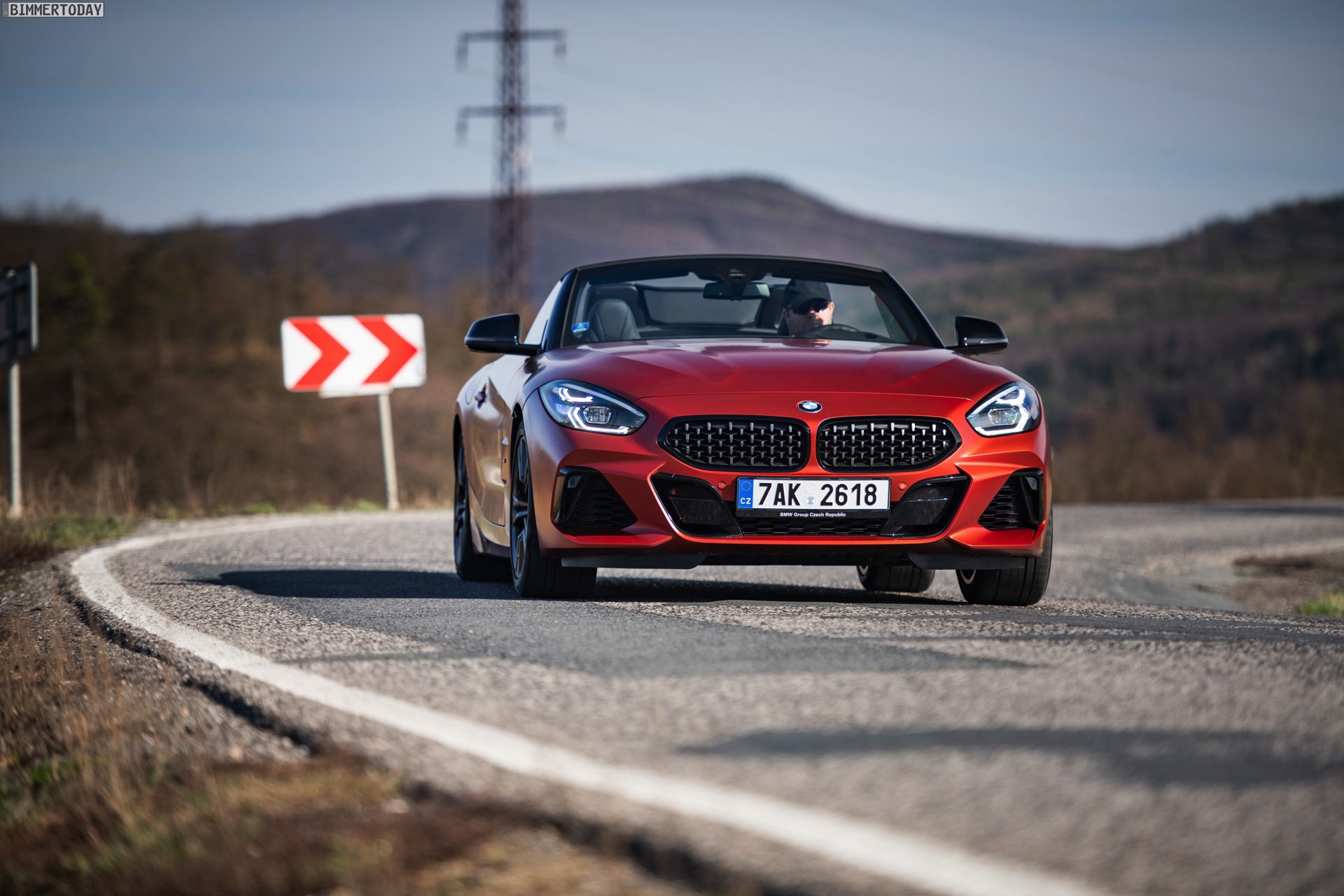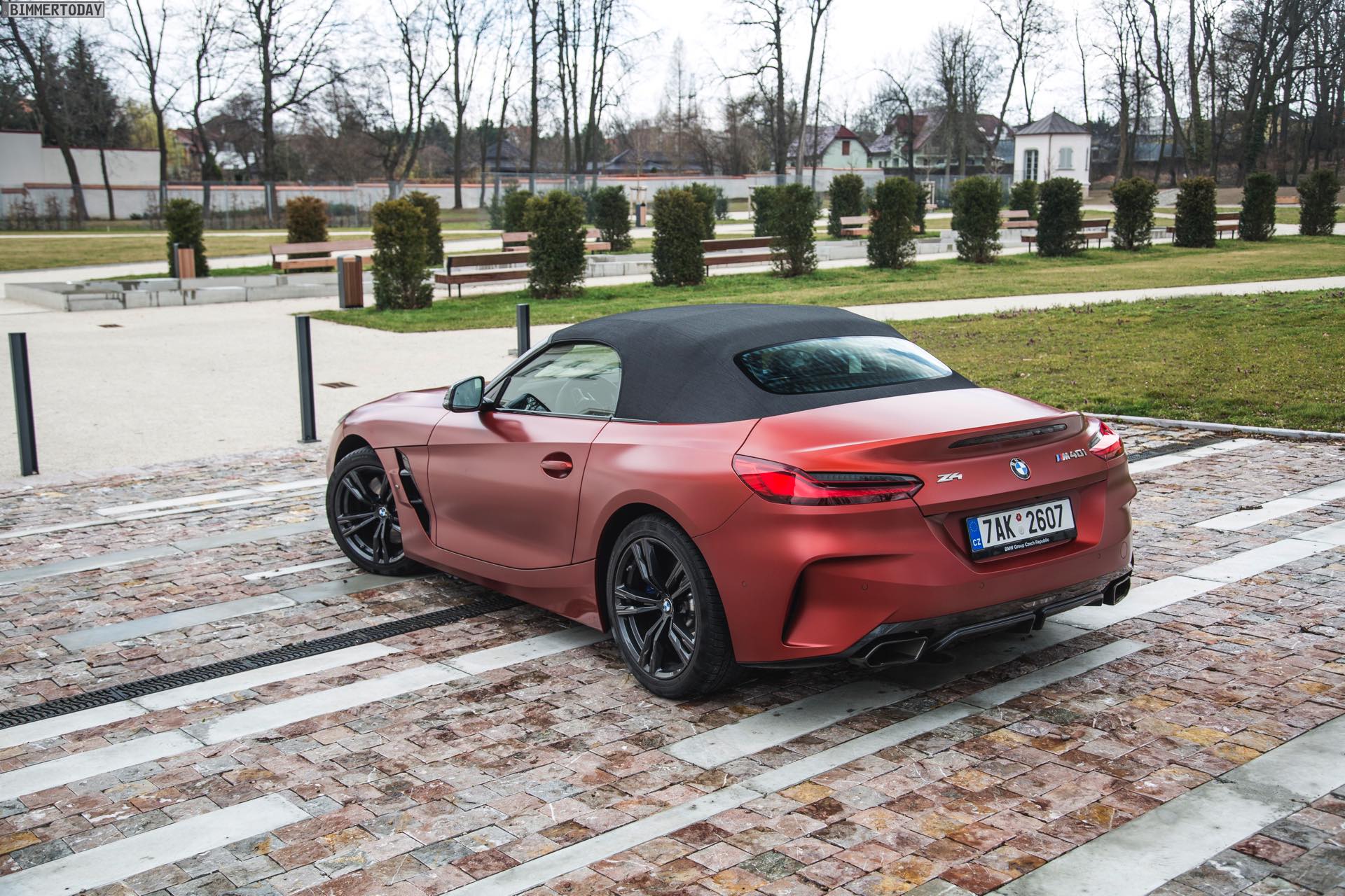 Dass er dabei mitunter auch artgerecht bewegt wird, sehen wir auf den Bildern einer Foto-Produktion aus der Tschechischen Republik. Kein Zweifel: Die schiere Kraft des Reihensechszylinders verführt am Steuer des BMW Z4 M40i zum einen oder anderen Drift und lässt das knackige Heck in kundiger Hand vor Freude tanzen. Zwar bleibt bei diesem Anblick kaum Zeit für eine Konzentration auf die matte Lackierung im exklusiven Farbton Frozen Orange Metallic, aber es gibt zum Glück auch einige statische Fotos mit stehendem Fahrzeug.