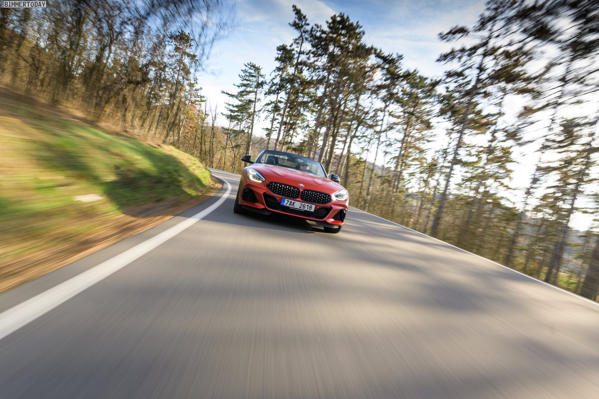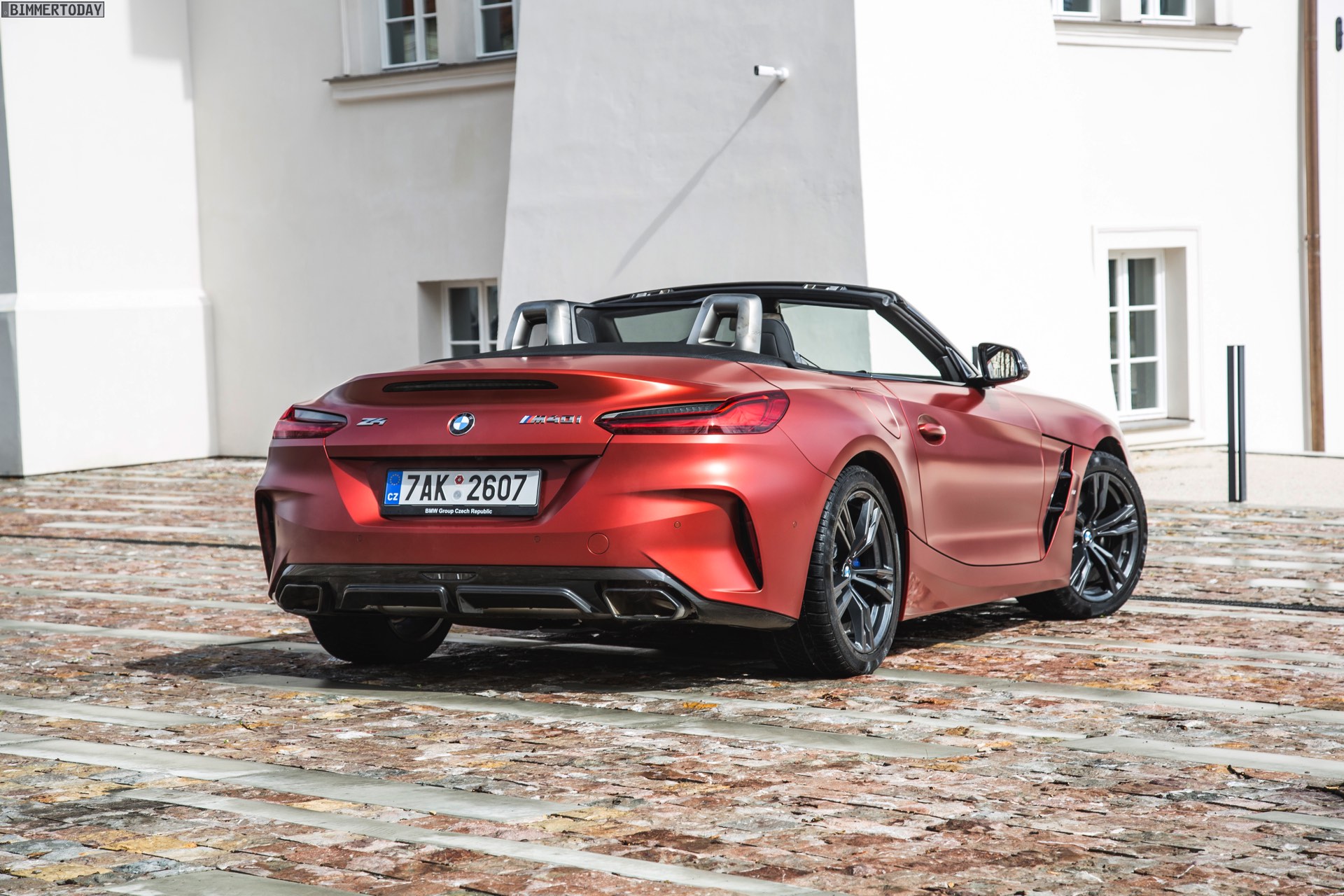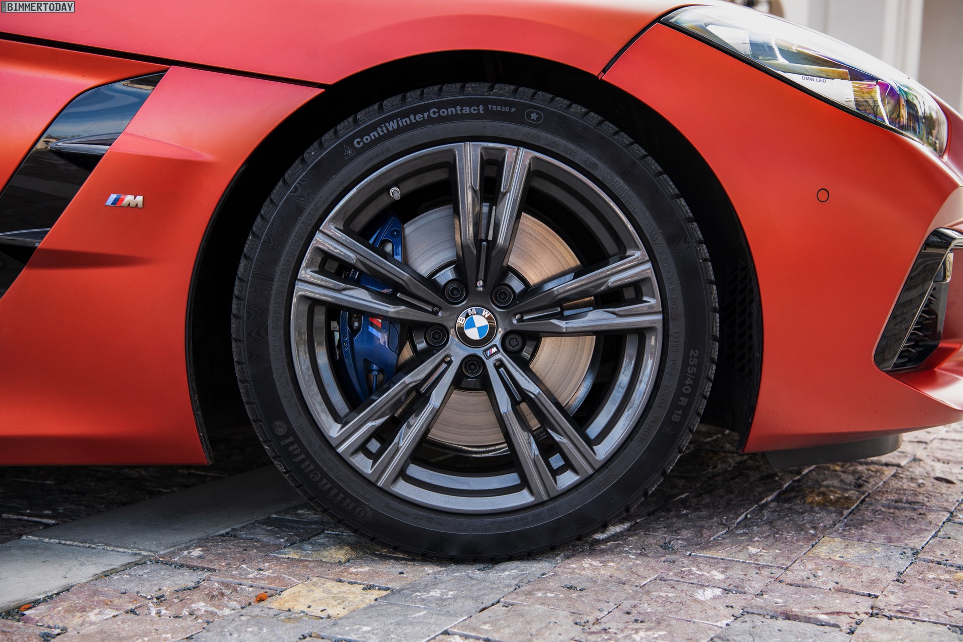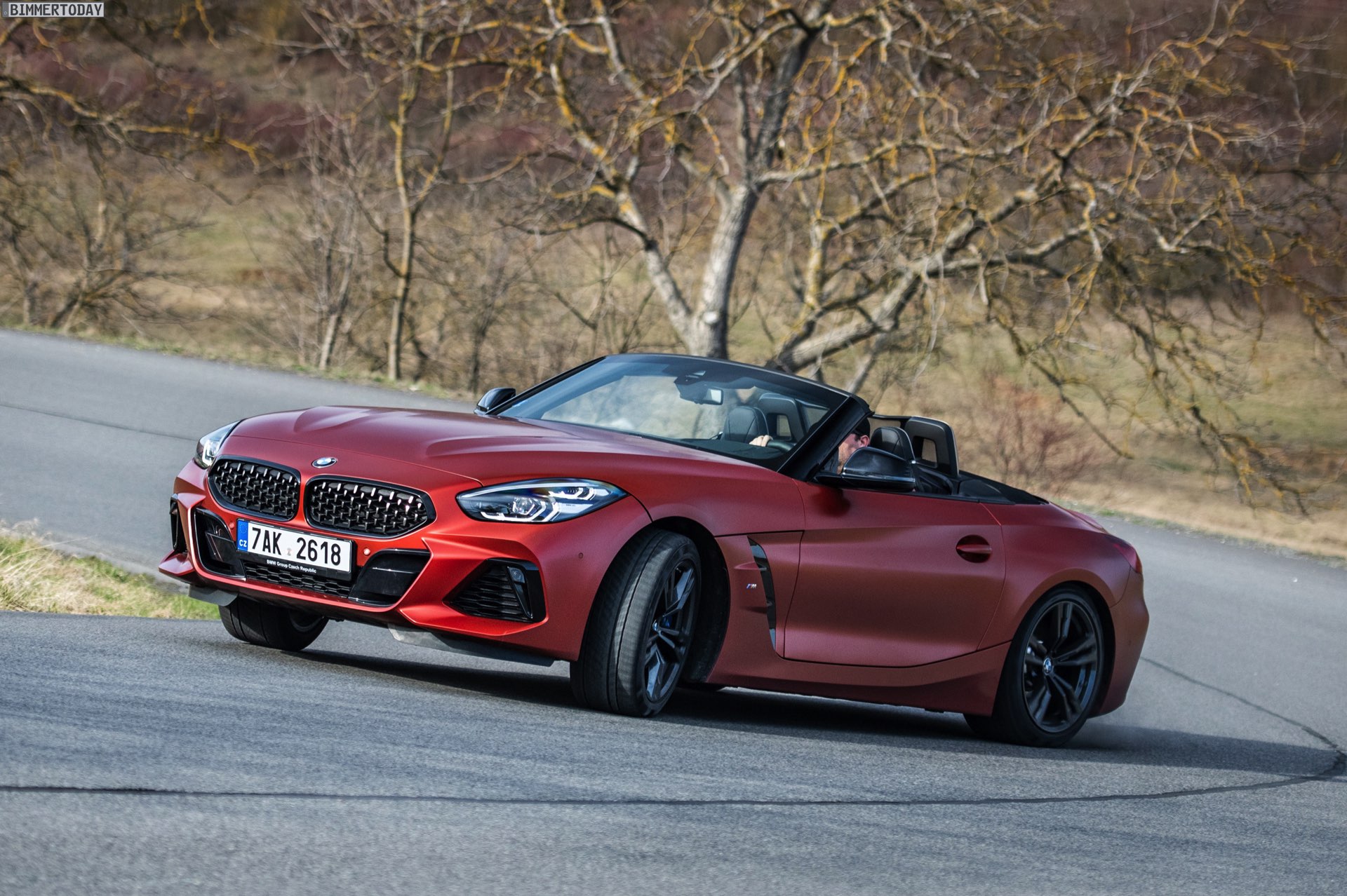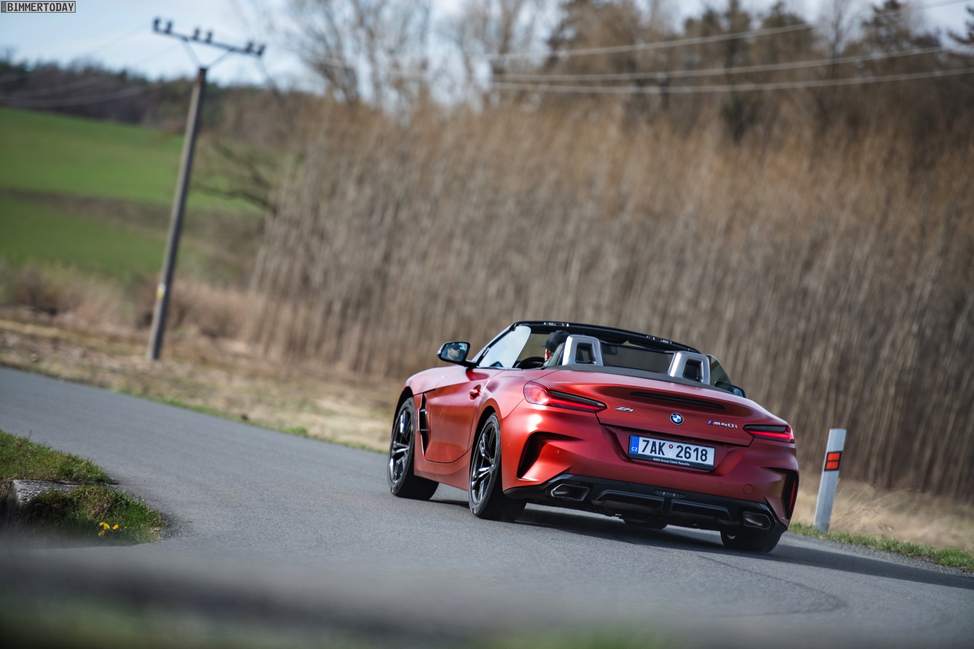 Dass er dabei mitunter auch artgerecht bewegt wird, sehen wir auf den Bildern einer Foto-Produktion aus der Tschechischen Republik. Kein Zweifel: Die schiere Kraft des Reihensechszylinders verführt am Steuer des BMW Z4 M40i zum einen oder anderen Drift und lässt das knackige Heck in kundiger Hand vor Freude tanzen. Zwar bleibt bei diesem Anblick kaum Zeit für eine Konzentration auf die matte Lackierung im exklusiven Farbton Frozen Orange Metallic, aber es gibt zum Glück auch einige statische Fotos mit stehendem Fahrzeug.