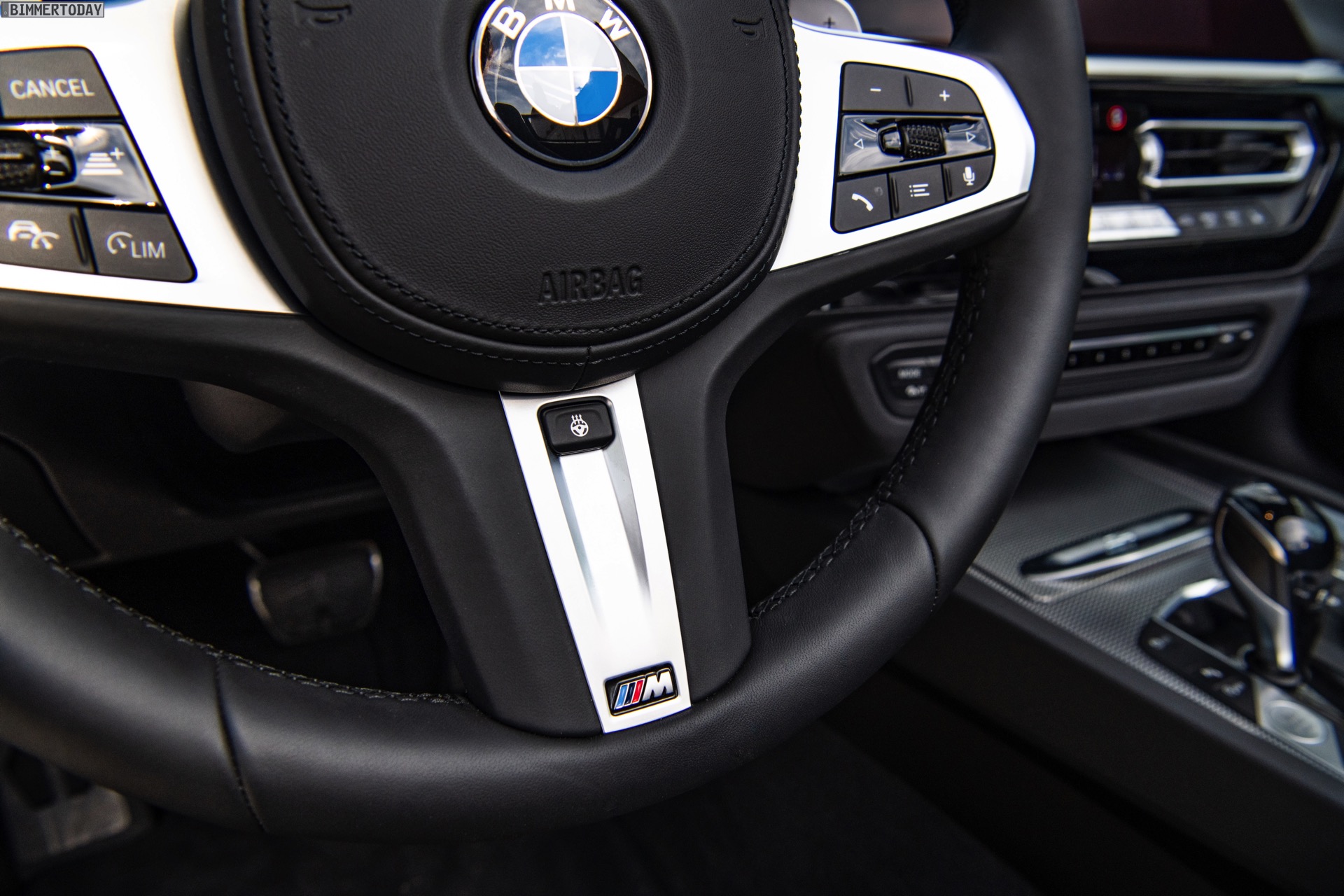 Zur umfangreichen Serien-Ausstattung der M40i First Edition zählen das adaptive Fahrwerk samt M Sportdifferenzial, die M Sportbremse, die adaptiven LED-Scheinwerfer, das Head-up-Display, das BMW Live Cockpit Professional mit zwei 10,25 Zoll großen Displays, das Harman Kardon Surround Sound System und das Verdeck in Anthrazit mit Silbereffekt. Die ebenfalls zum Umfang der First Edition gehörenden 19-Zöller im Design Doppelspeiche 800 M sind auf den Fotos leider nicht zu sehen, stattdessen trägt das Foto-Fahrzeug offensichtlich “nur” 18-Zoll-Felgen.