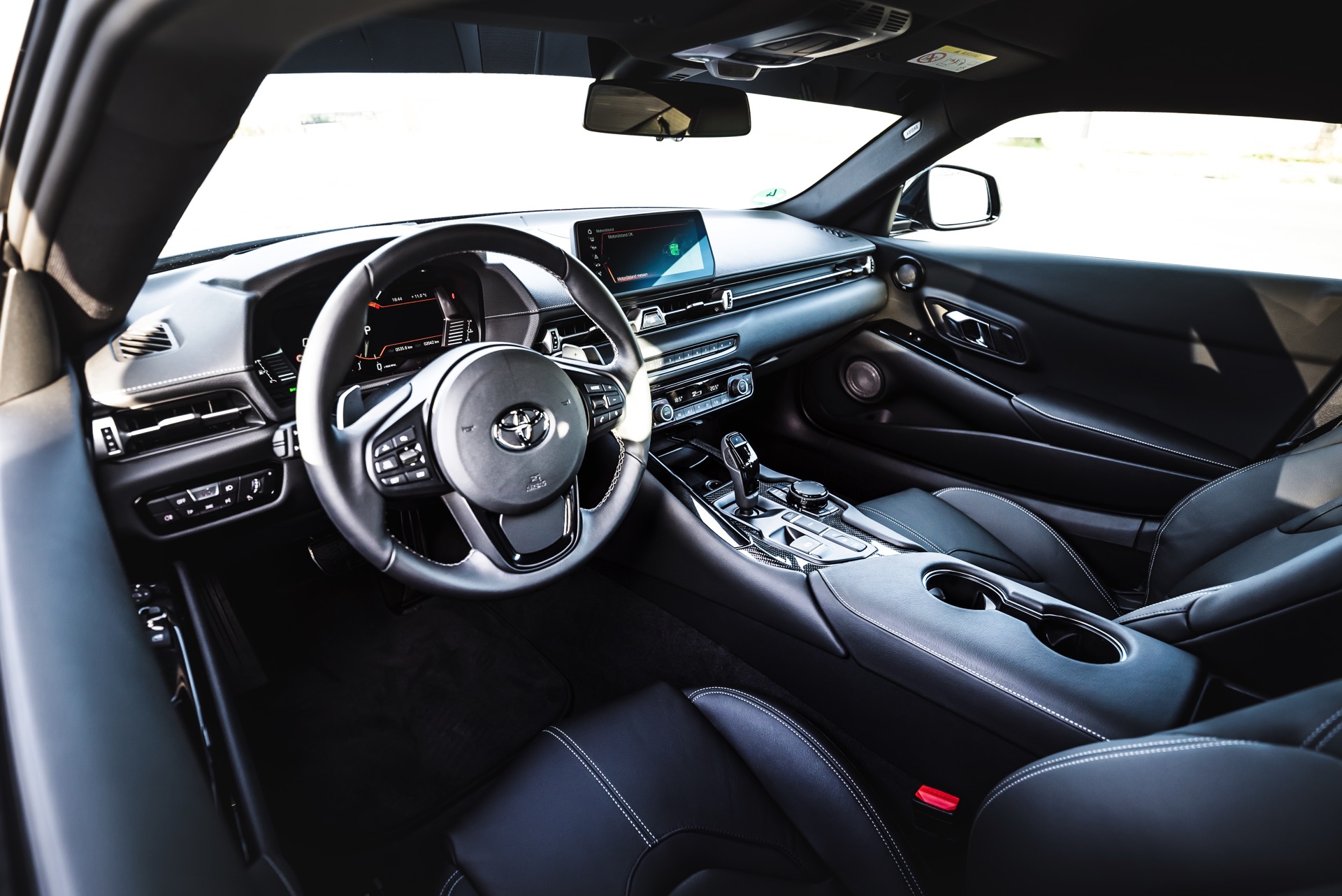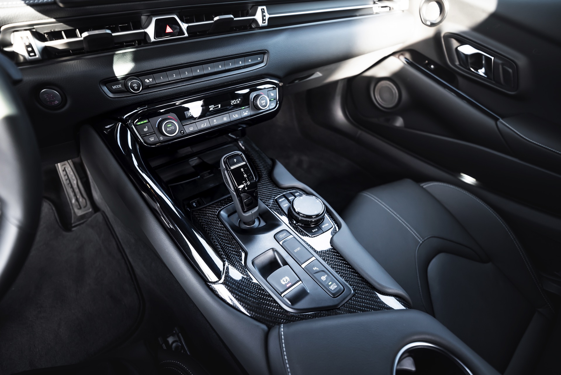 Ein besonderes Feature für alle Freunde des unverfälschten Motorsounds ist das Manhart Emulator Control Module. Die ECM Klappensteuerung deaktiviert das serienmäßige Sounddesign des Toyota Supra, bei dem der Klang des Motors mit Hilfe der Soundanlage im Innenraum verstärkt wird. Stattdessen lassen sich die Klappen der Abgasanlage mit Hilfe der Knöpfe am Multifunktionslenkrad steuern, was dem Fahrer eine freiere Wahl in Sachen Lautstärke beschert.