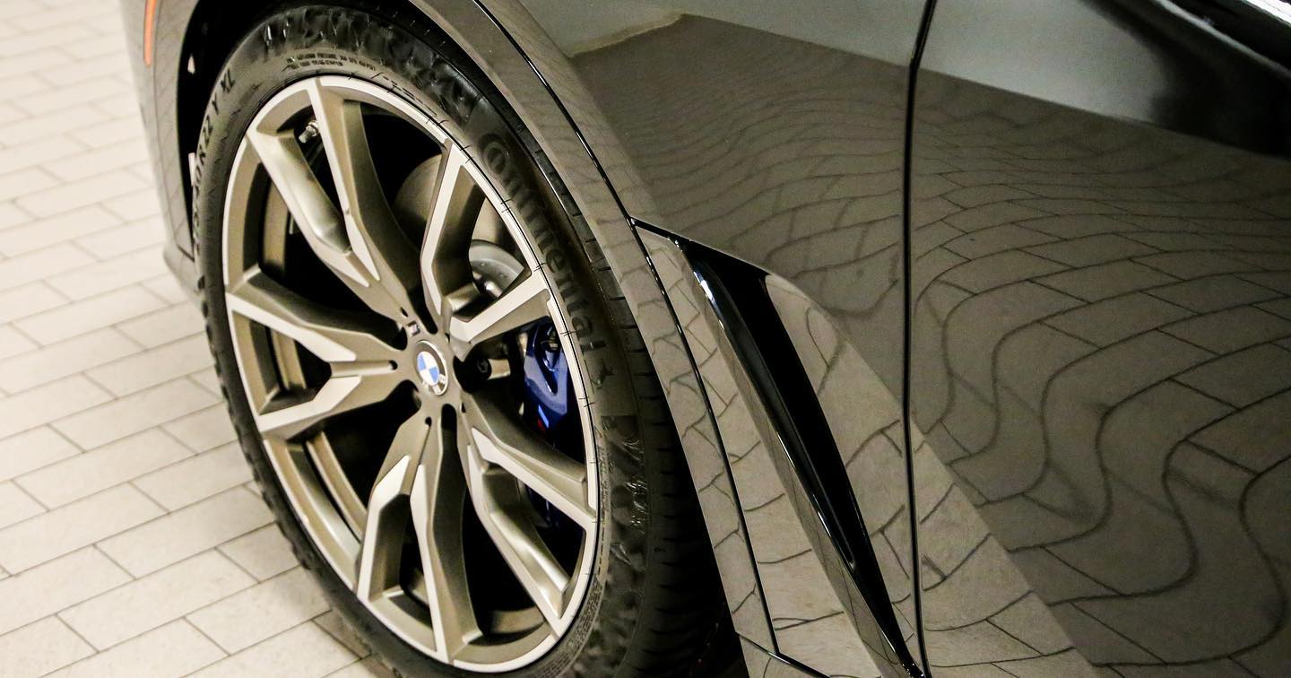 Ganz ohne Akzente in Cerium Grey kommt der gezeigte BMW X7 M50i dann aber doch nicht aus, denn die Schriftzüge am Heck und die 22 Zoll großen Leichtmetallräder im Design V-Speiche 755 M Bicolor sind teilweise in der typischen M Performance-Farbe ausgeführt.