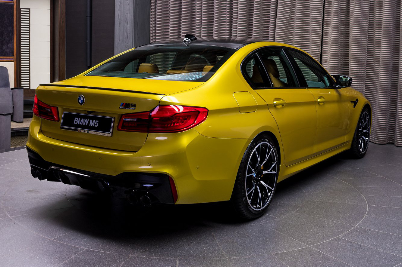 Beeindruckende Performance gehört bei jedem BMW M5 Competition zur Serienausstattung, aber erst mit der Hilfe von BMW Individual wird auch die Optik unverwechselbar. Aktuelle Fotos aus dem für seine Lust an spektakulären Farben bekannten Showroom von BMW Abu Dhabi Motors zeigen uns den 625 PS starken Top-M5 mit Individual-Lackierung in Austin Yellow Metallic und wie so oft sagen Bilder auch in diesem Fall deutlich mehr als Worte.