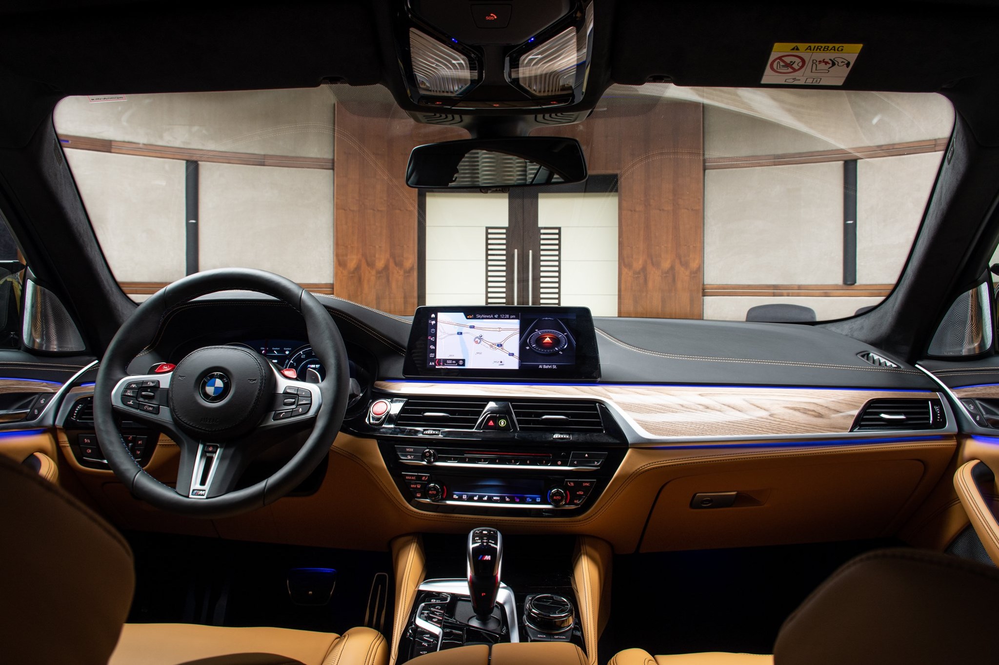 Auch im Innenraum der Power-Limousine spielt BMW Individual eine Schlüsselrolle, denn wir sehen die Volllederausstattung Merino in Caramel und Schwarz. Genau wie die Lederausstattung sind auch die Interieurleisten in BMW Individual Edelholzausführung Sen hellbraun ein echter Hingucker, obwohl oder gerade weil sie sicher nicht jedermanns Geschmack treffen: