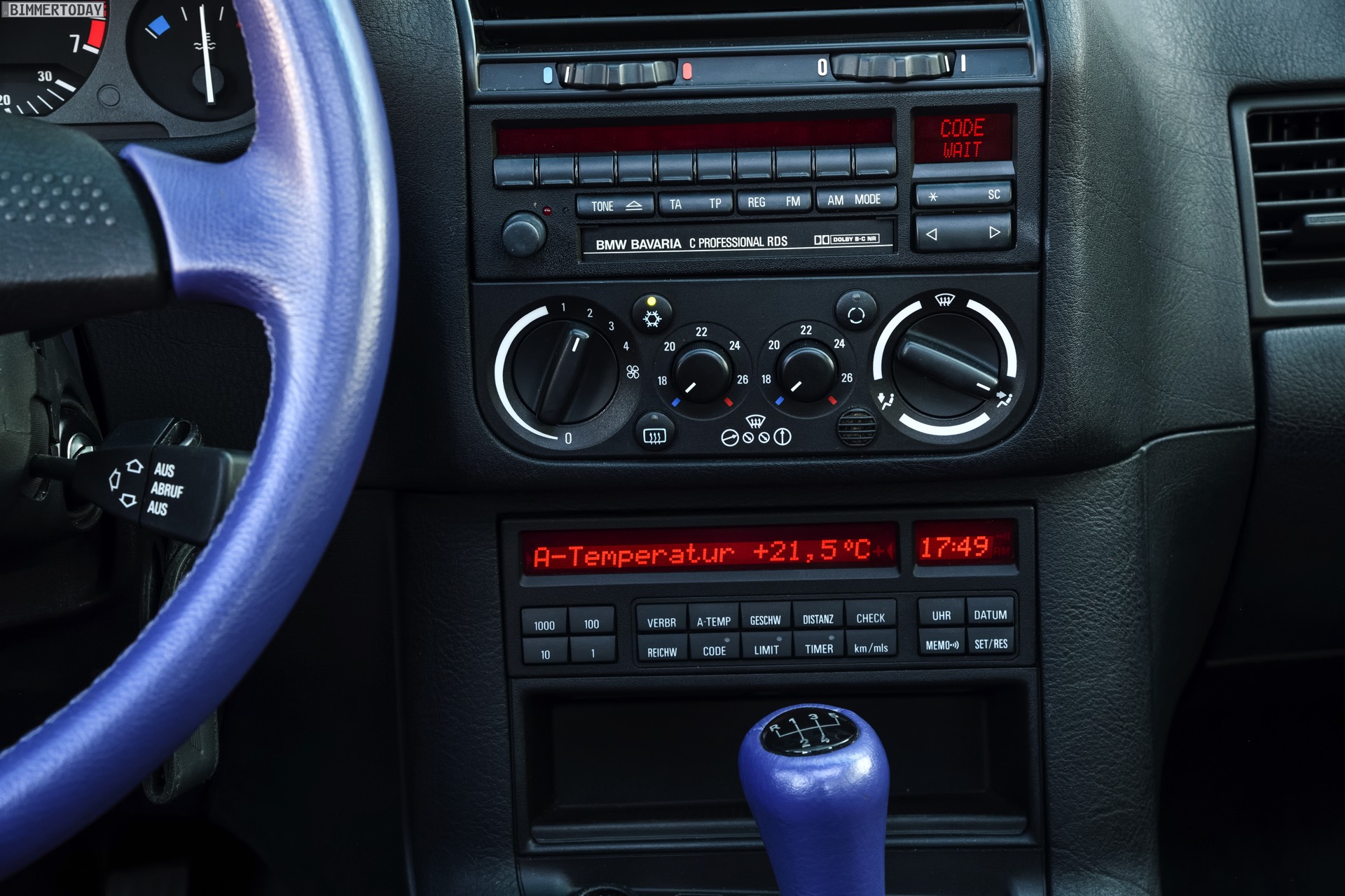 Ein weiterer wesentlicher Unterschied betrifft die Rundumsicht, denn die dünnen Säulen der Karosserie und die großen Glasflächen erlauben einen deutlich freieren Blick auf die Umgebung vor, neben und hinter dem Fahrzeug. Das ist auch gut so, denn unser Testwagen hat selbstverständlich weder Totwinkel-Assistent noch Parksensoren oder Rückfahr-Kamera – schließlich hätte er auch kein Infotainment-Display, um das Bild einer solchen Kamera anzuzeigen. Ebenfalls nicht an Bord sind praktisch alle elektronischen Fahrhilfen mit Ausnahme von ABS. Die inzwischen um unzählige Unterfunktionen erweiterte und längst serienmäßige Elektronische Stabilitätskontrolle wurde in unserem BMW 3er E36 ebensowenig verbaut wie ein Fahrerlebnisschalter: Wer hier ein anderes Fahrerlebnis will, greift zum Wählhebel des Fünfgang-Getriebes, schaltet zwei Gänge runter und gibt Vollgas!