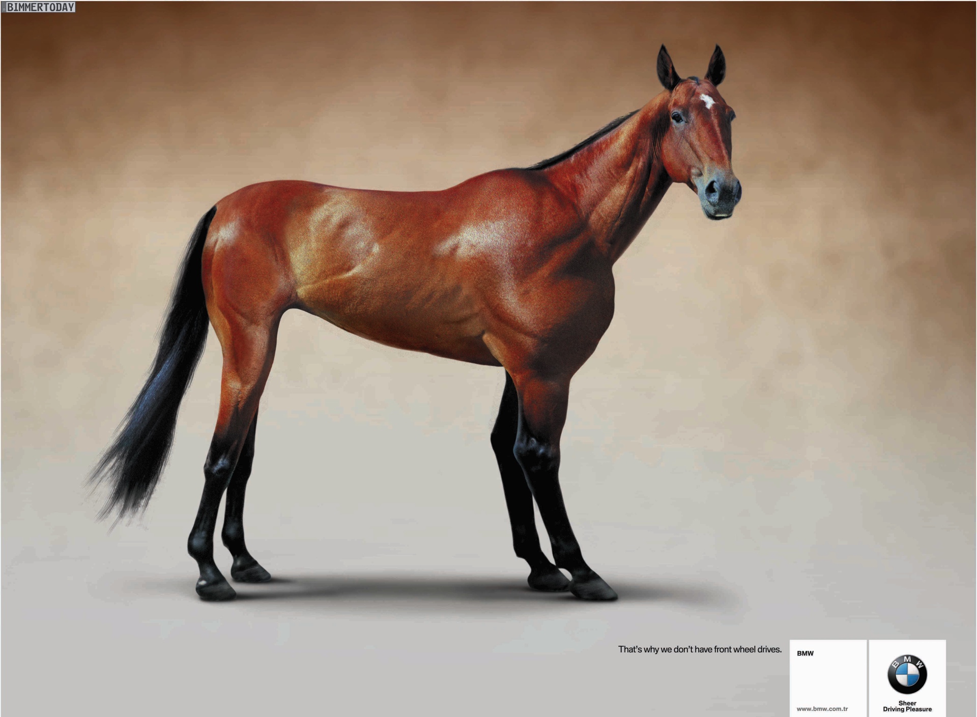 Am liebsten vergessen würde BMW heute wohl die selbstbewusste Werbung für die erste 1er-Generation (E87). Der einzige Hecktriebler der Kompaktklasse nahm die frontgetriebene Konkurrenz gleich mit mehreren Motiven auf die Hörner und zeigte dabei mit Beispielen aus dem Tierreich, wieso Frontantrieb aus Überzeugung der Münchner keine gute Idee ist: