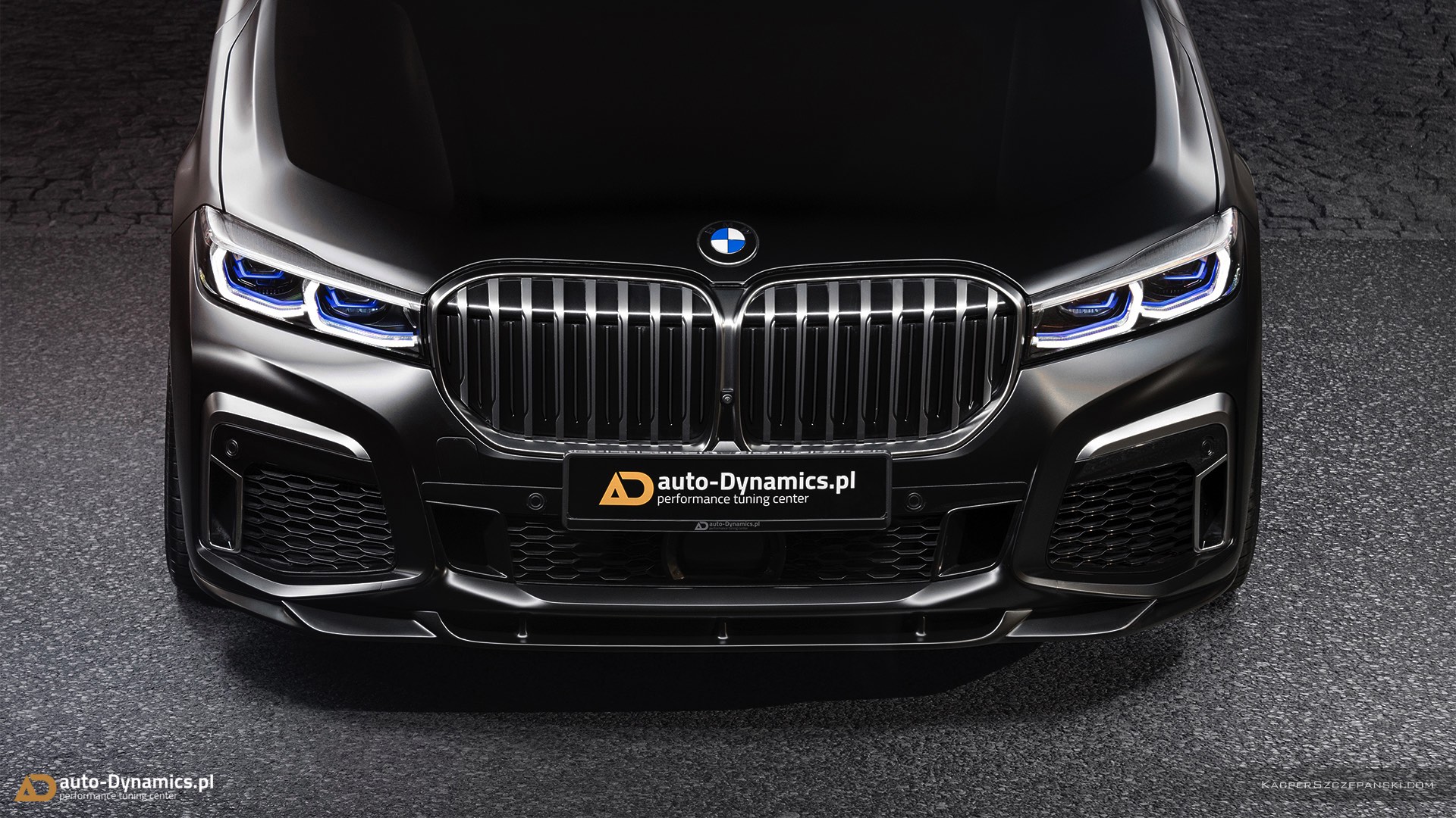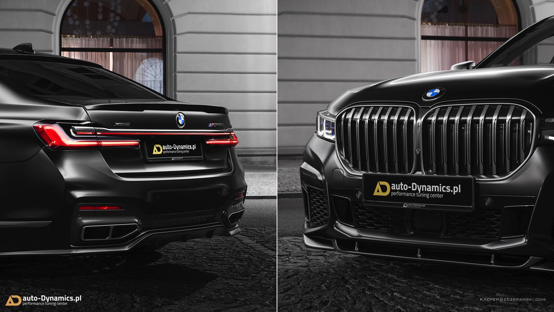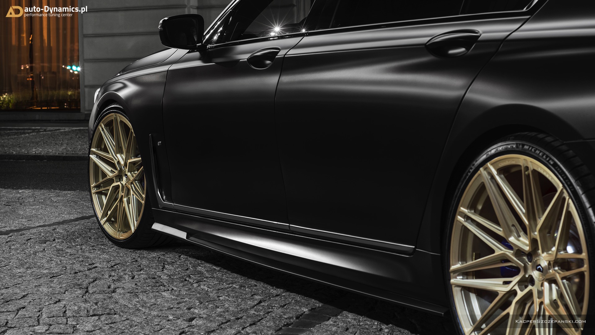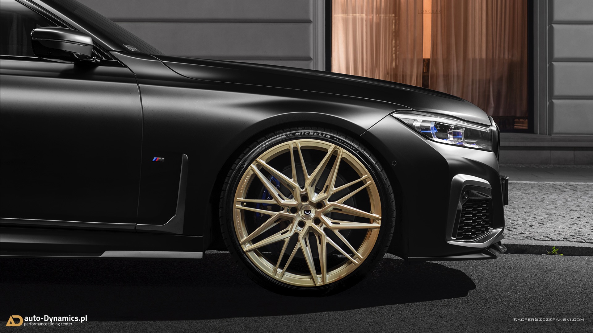 Wer eine Legende wie den BMW V12-Biturbo N74 standesgemäß verabschieden will, muss sich etwas Besonderes einfallen lassen. Auto-Dynamics.pl setzt dabei auf einen extrovertierten Auftritt, der selbst im Kontext des ohnehin sehr selbstbewussten BMW 7er Facelift noch richtig auffällt. Die wichtigste Maßnahme ist eine Folierung in mattem Schwarz, die nicht zufällig an eine Individual-Lackierung in Frozen Black erinnert. Kombiniert werden die mattschwarzen Oberflächen mit 22 Zoll großen Felgen mit goldenem Finish, wodurch sich ein spannender Kontrast aus mattschwarzer Zurückhaltung und goldglänzender Suche nach Aufmerksamkeit ergibt.