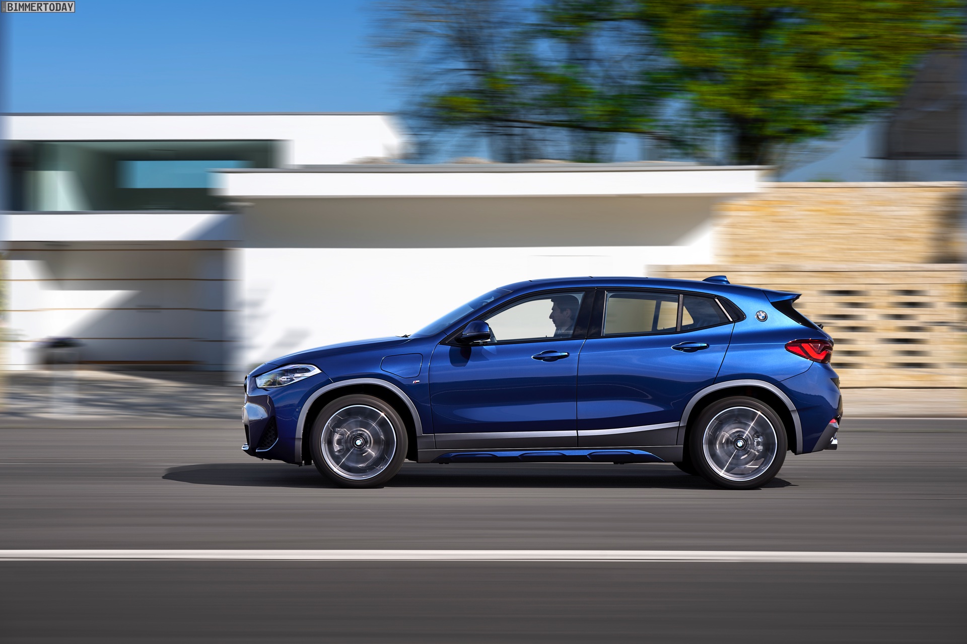Trotz doppeltem Antrieb verfügt der X2 xDrive25e über ein Kofferraum-Volumen von 410 bis 1.290 Liter, das sich dank 40:20:40-teilbarer Rückbank auch vielseitig nutzen lässt. Auf den ersten Fotos sehen wir das BMW X2 Facelift 2020 mit M Sport X-Paket und der neuen Lackierung in Phytonic Blue: