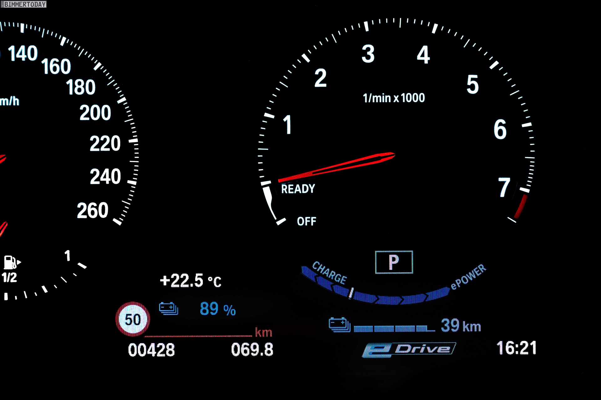 Der unter der Rückbank platzierte Lithium-Ionen-Akku mit einer Brutto-Kapazität von 10 kWh ermöglicht eine Elektro-Reichweite von bis zu 53 Kilometern gemäß WLTP, nach dem früheren Messzyklus NEFZ sind 57 lokal emissionsfreie Kilometer möglich. Im anspruchsvolleren WLTP-Zyklus ergeben sich Normverbräuche ab 1,7 Liter Benzin und 15,0 kWh pro 100 Kilometer, das entspricht CO2-Emissionen von 38 Gramm pro Kilometer. Ein vollständig entladener Akku kann an einer Haushaltssteckdose in rund 5 Stunden wieder voll aufgeladen werden, mit Hilfe einer Wallbox kann der Wert auf 3,2 Stunden reduziert werden.