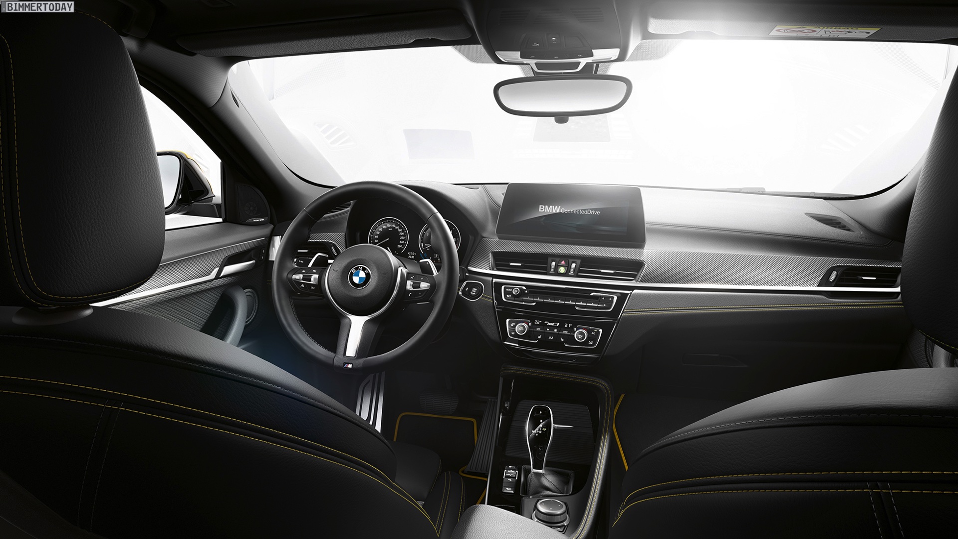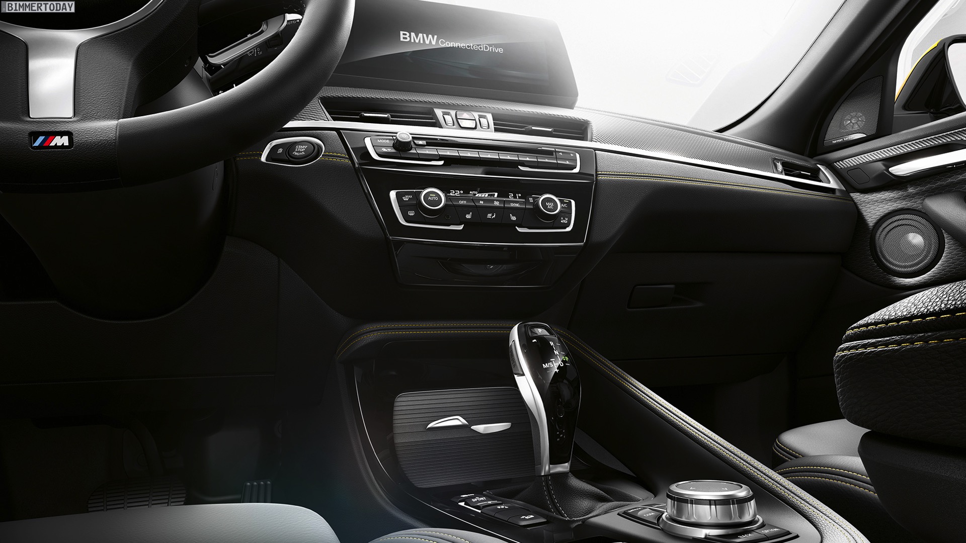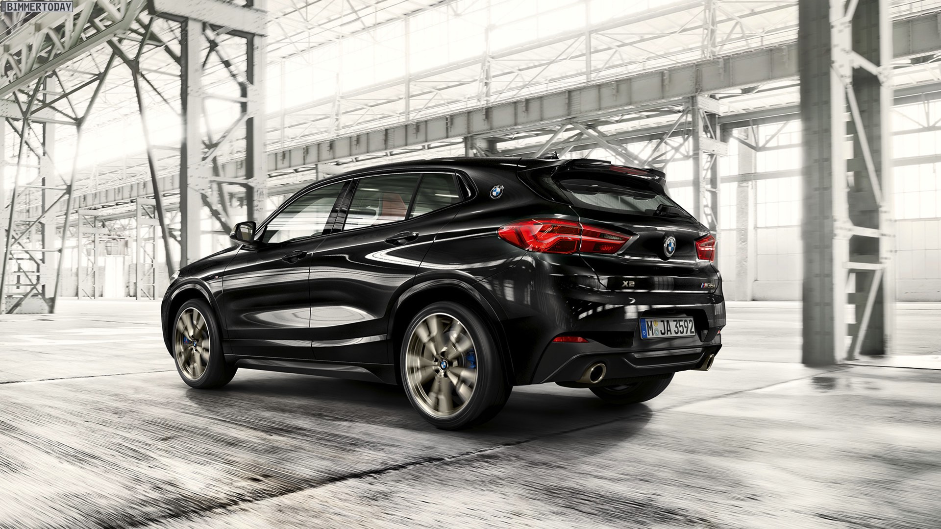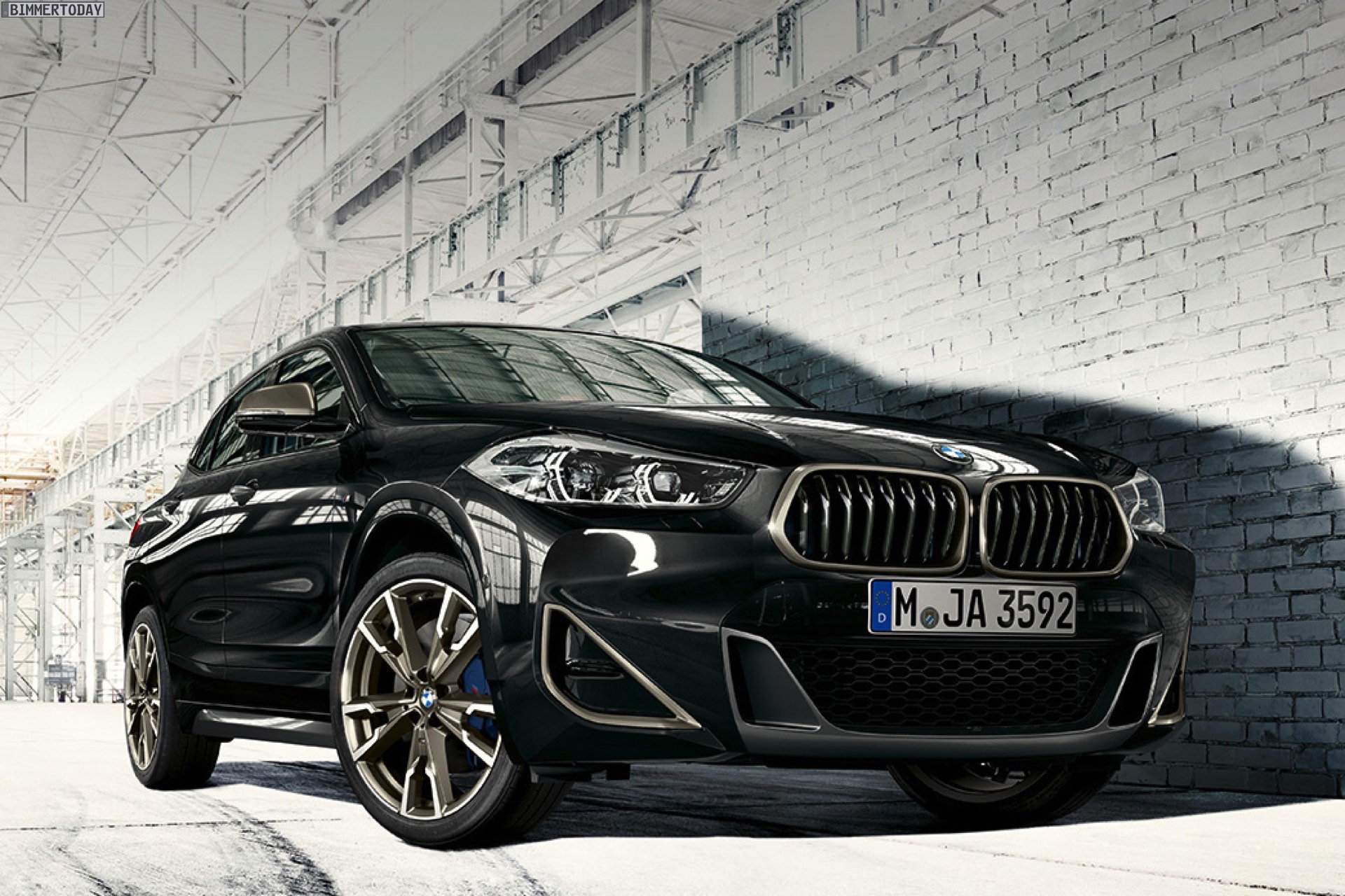 Auf den neuen Fotos von bmw.de sehen wir die seit Jahren bekannten Wallpaper-Motive mit einer allem Anschein nach nachträglich bearbeiteten Frontschürze: Wo bisher Nebelscheinwerfer waren, ist nun nur noch eine unauffällige lackierte Fläche zu sehen. Wie bisher steht bei den Motiven der BMW X2 M Sport X in Galvanic Gold im Mittelpunkt, das sportliche Topmodell BMW X2 M35i sehen wir in Schwarz und mit den M Performance-typischen Akzenten in Cerium Grey.
