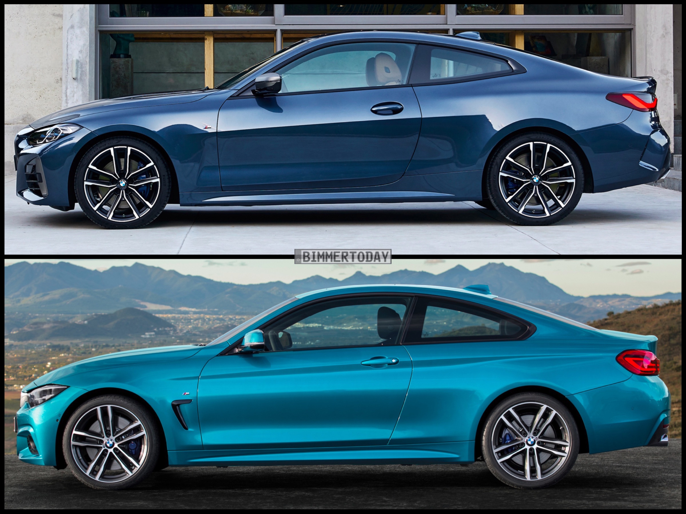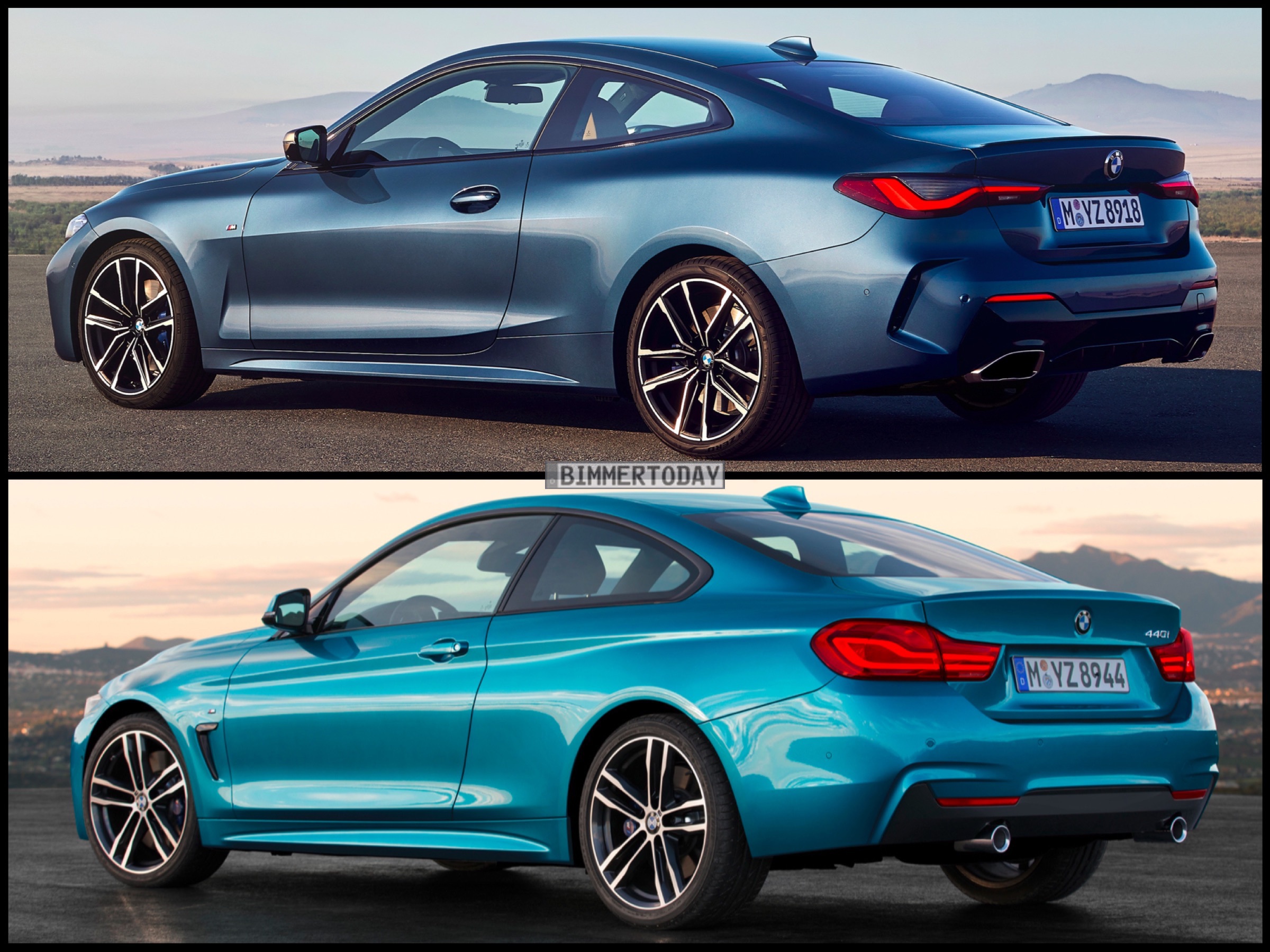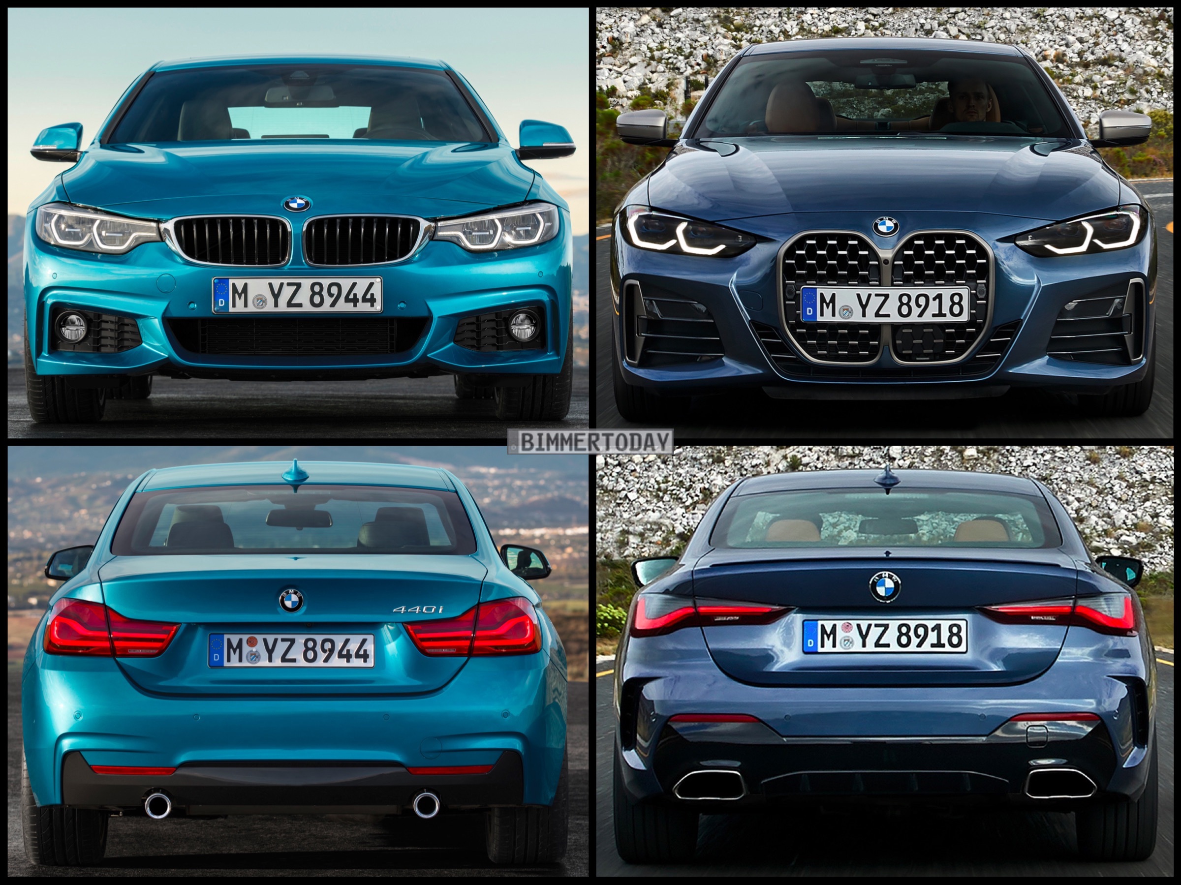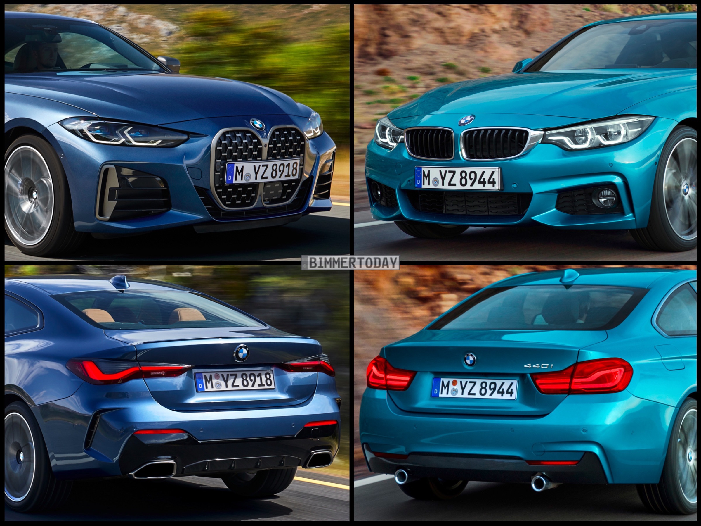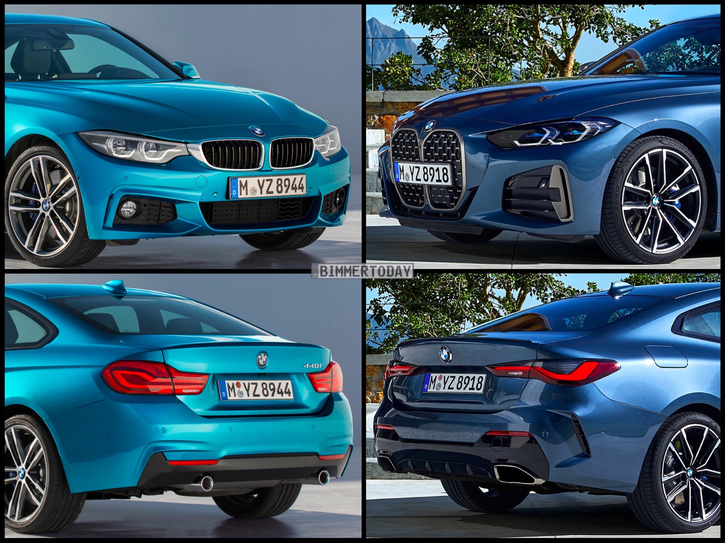 Auf den folgenden Fotos sehen wir das neue BMW M440i xDrive Coupé in Arctic Race Blue und den Vorgänger 440i F32 LCI mit M Sportpaket in der erst ab dem Facelift erhältlichen Lackierung Snapper Rocks Blue: