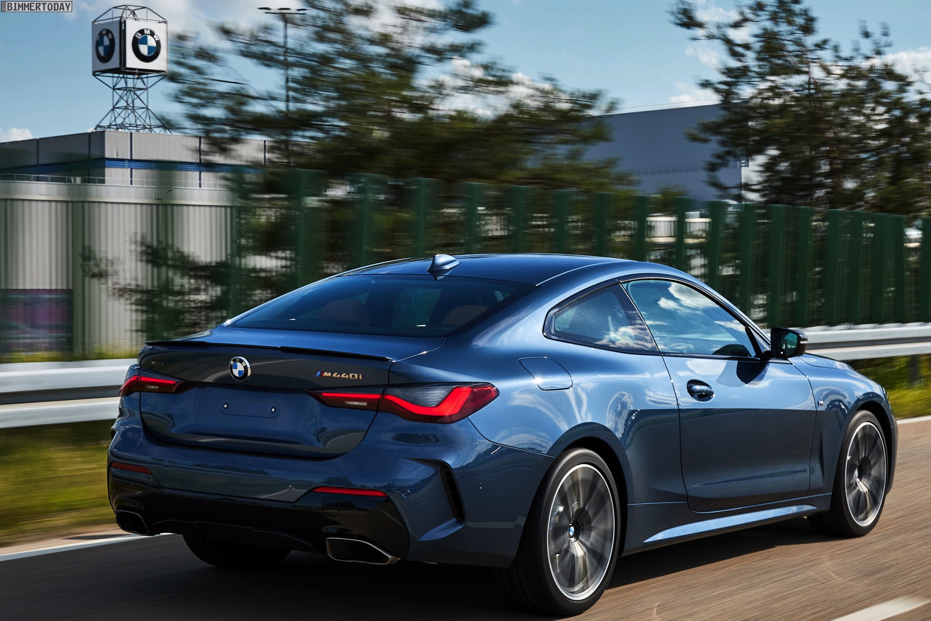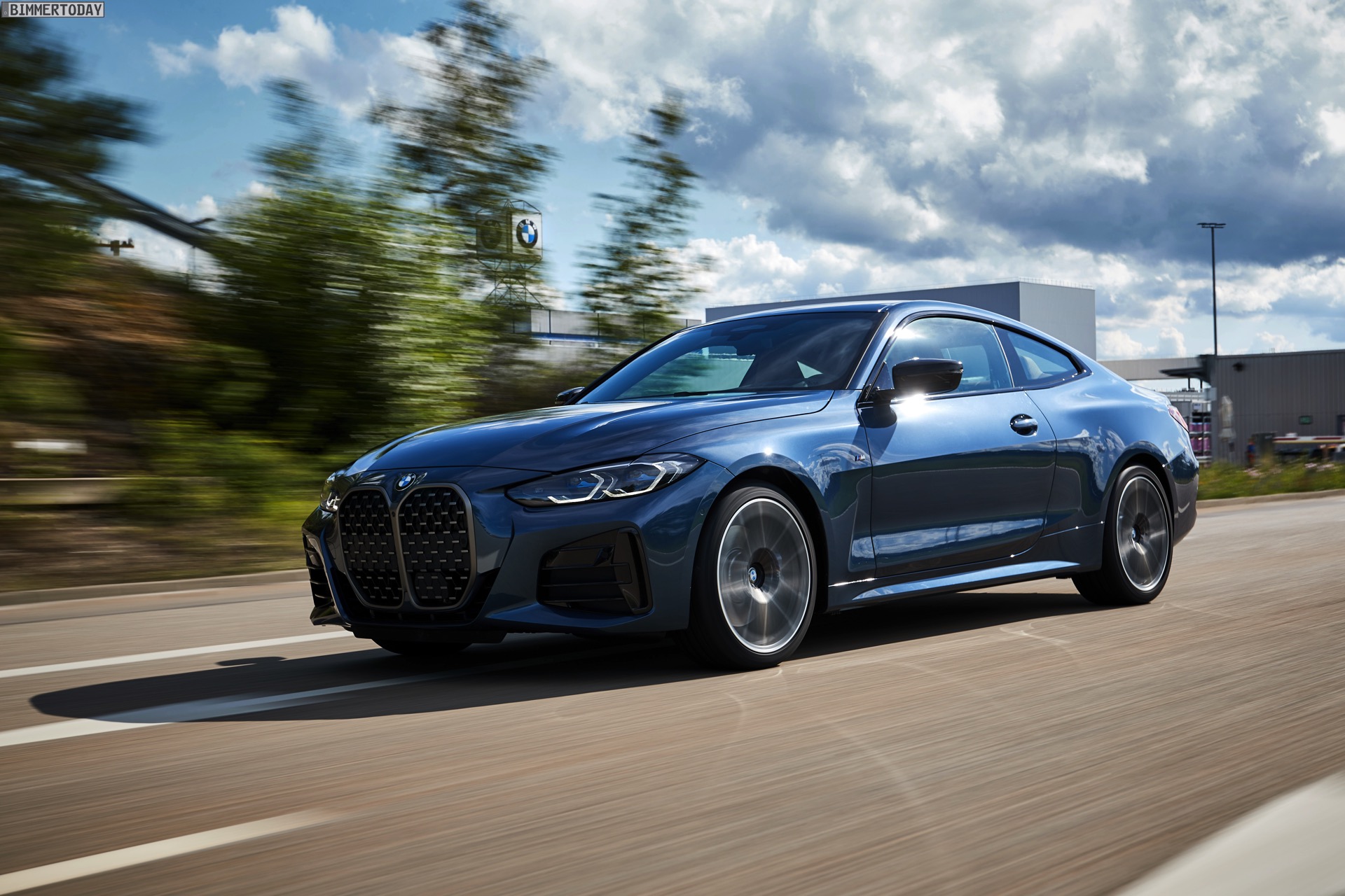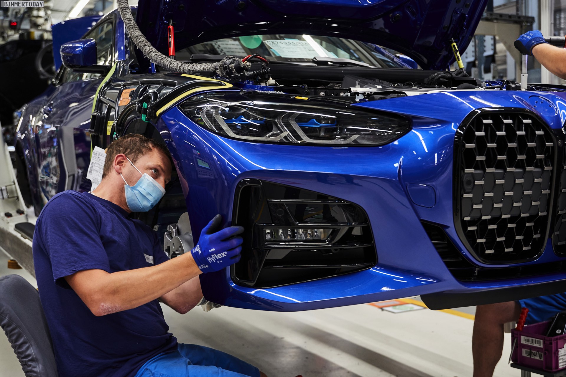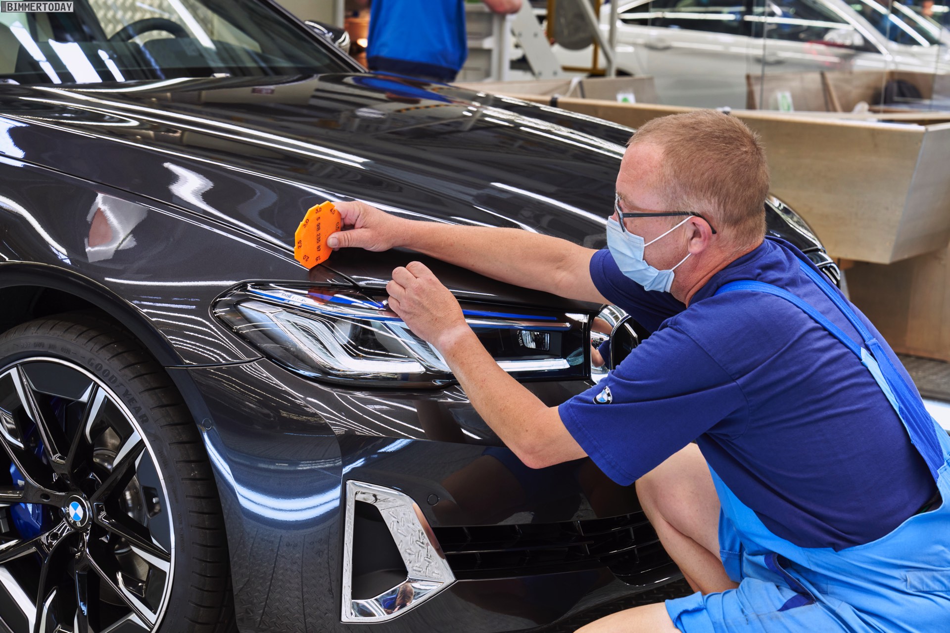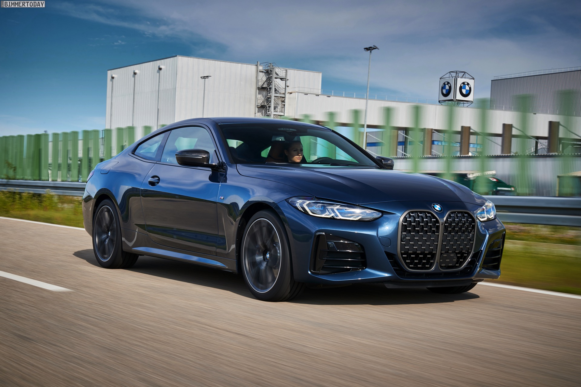 Auf den Bildern vom Produktions-Start steht wie schon bei der offiziellen Vorstellung das vorläufige Topmodell im Fokus: Die meisten Fotos zeigen das BMW M440i xDrive Coupé in der neuen Farbe Arctic Race Blue. Auf zwei Fotos sehen wir außerdem die Montage eines BMW 4er G22 in Portimao Blau und mit erweiterter Shadow Line samt schwarzer Nieren-Rahmen:
