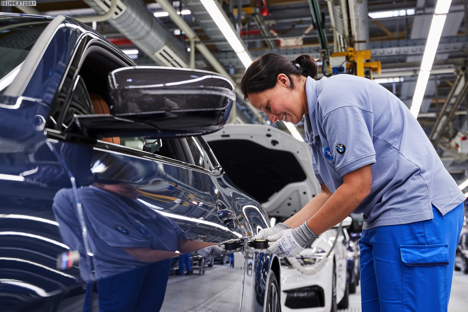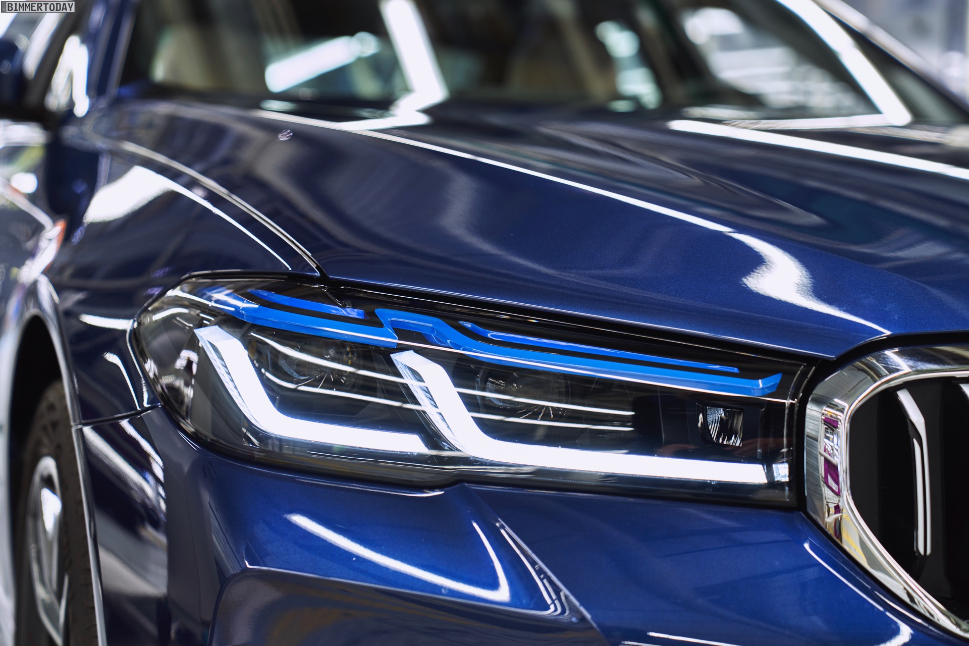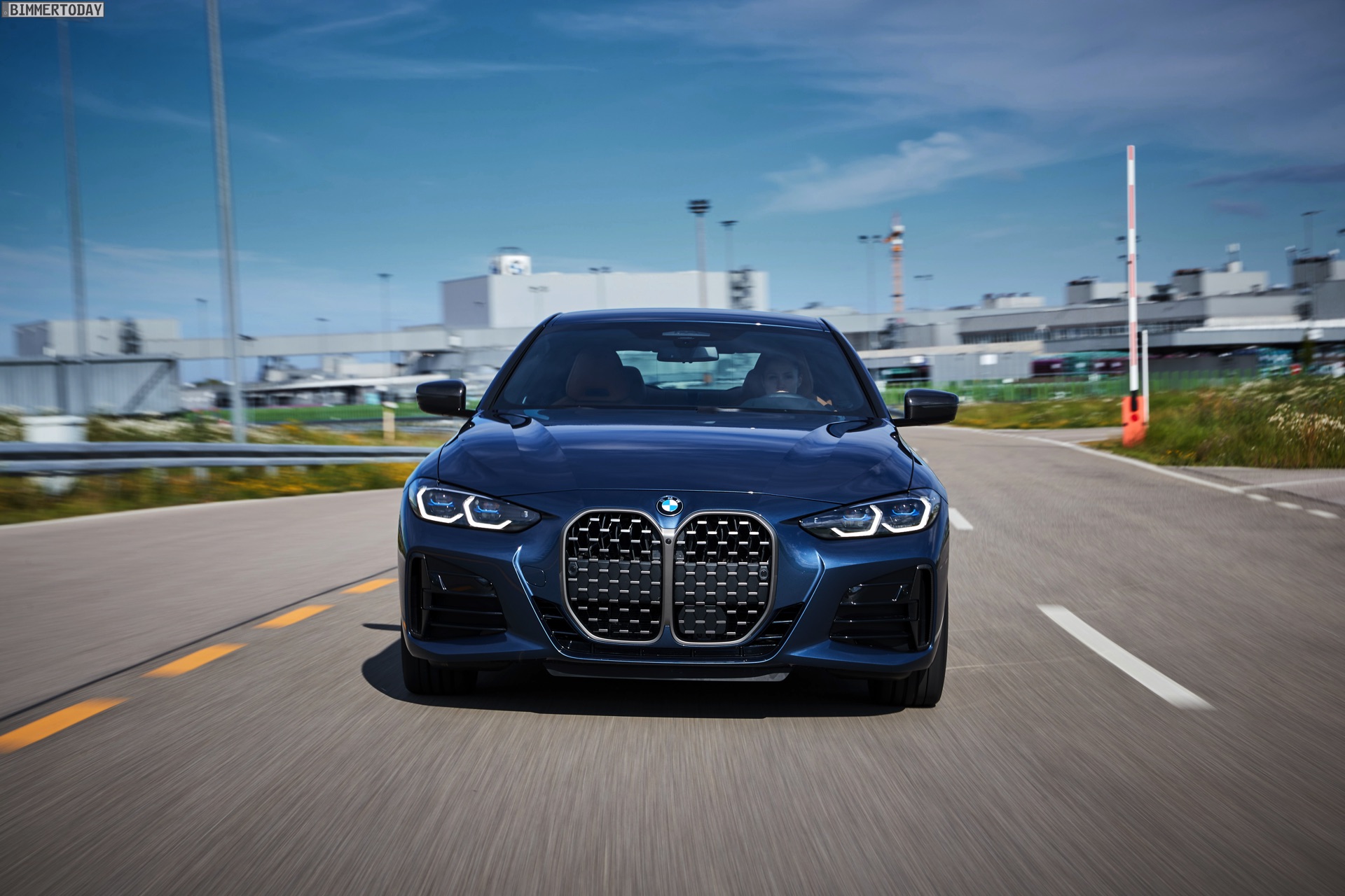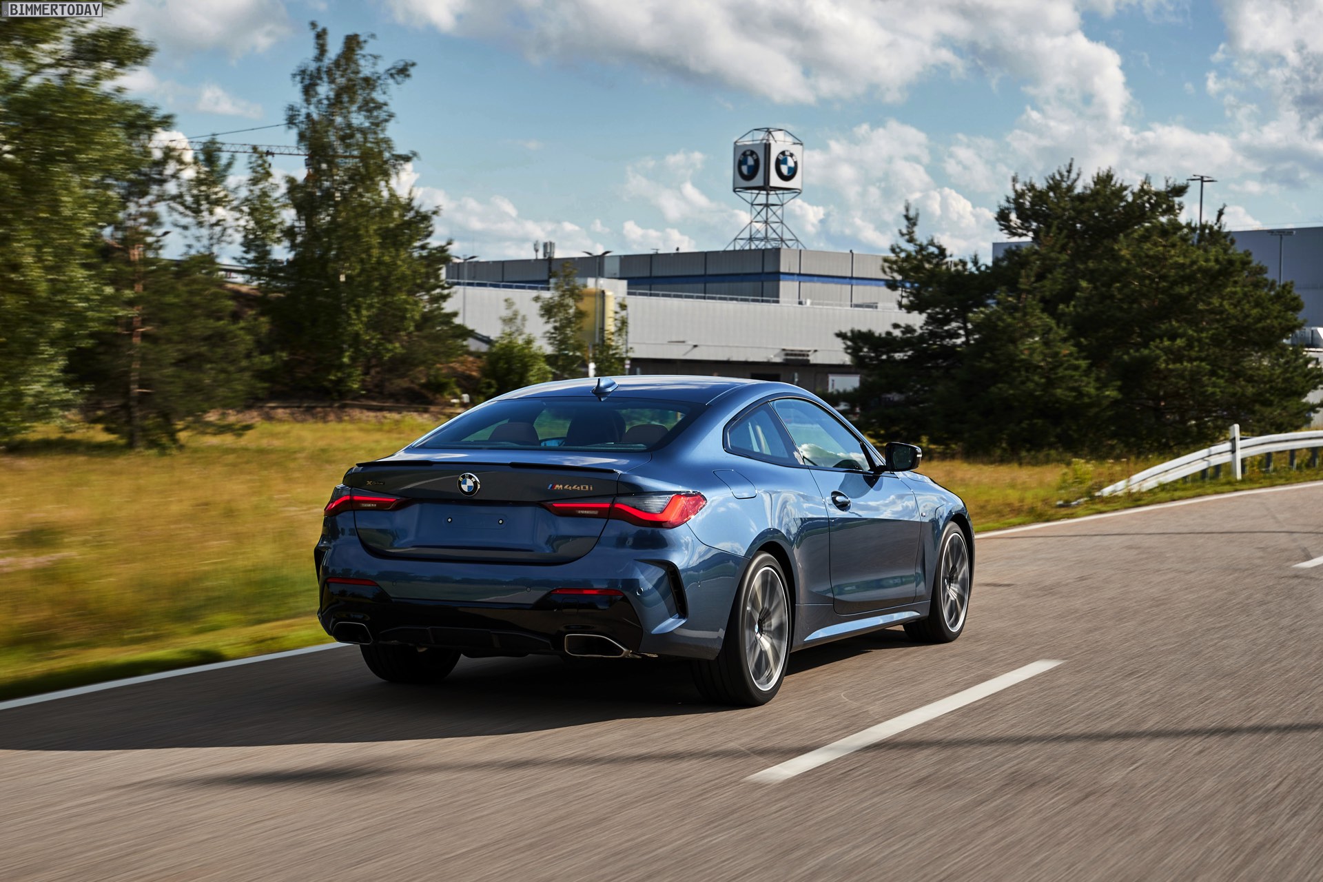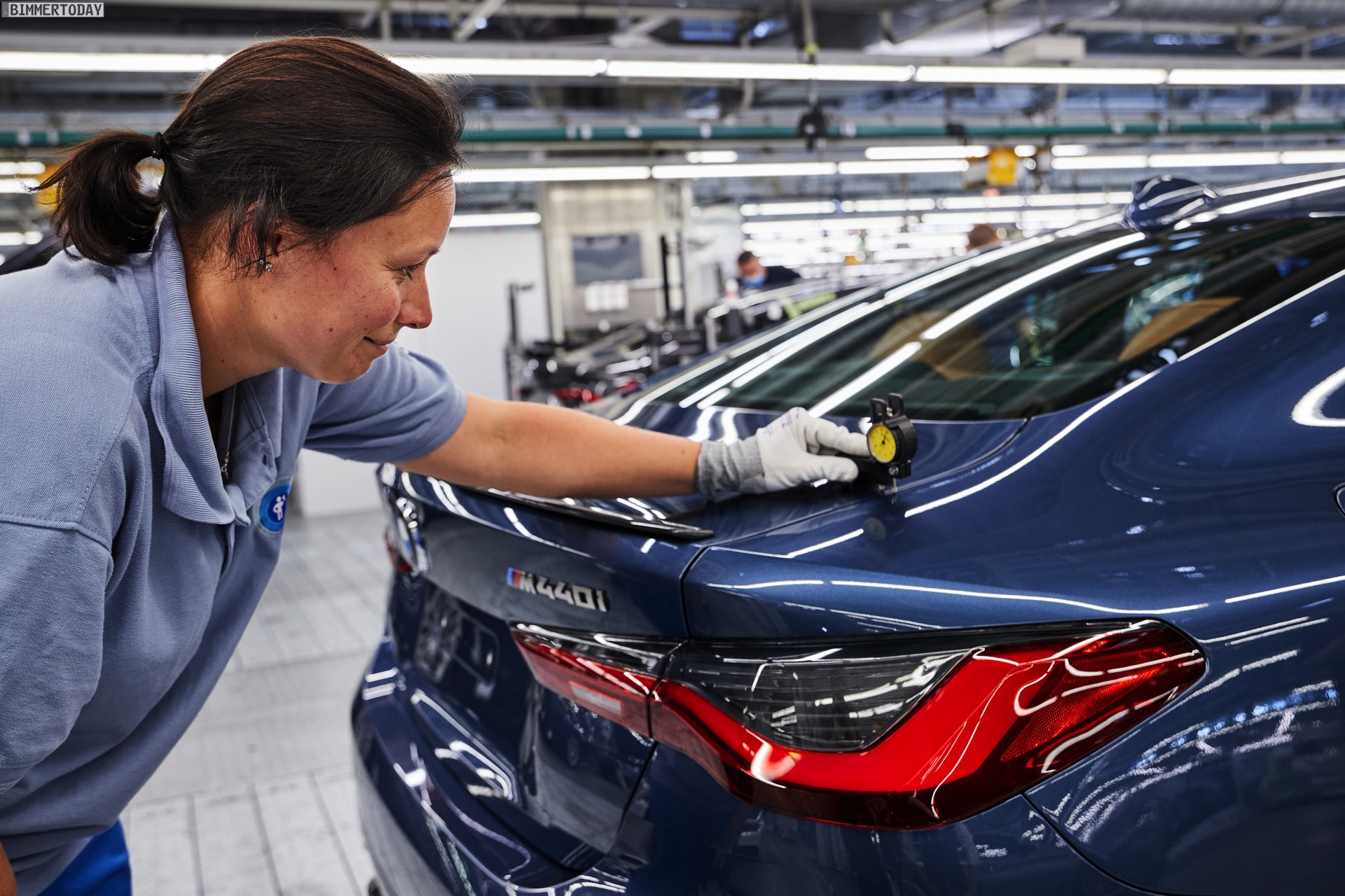Auf den Bildern vom Produktions-Start steht wie schon bei der offiziellen Vorstellung das vorläufige Topmodell im Fokus: Die meisten Fotos zeigen das BMW M440i xDrive Coupé in der neuen Farbe Arctic Race Blue. Auf zwei Fotos sehen wir außerdem die Montage eines BMW 4er G22 in Portimao Blau und mit erweiterter Shadow Line samt schwarzer Nieren-Rahmen: