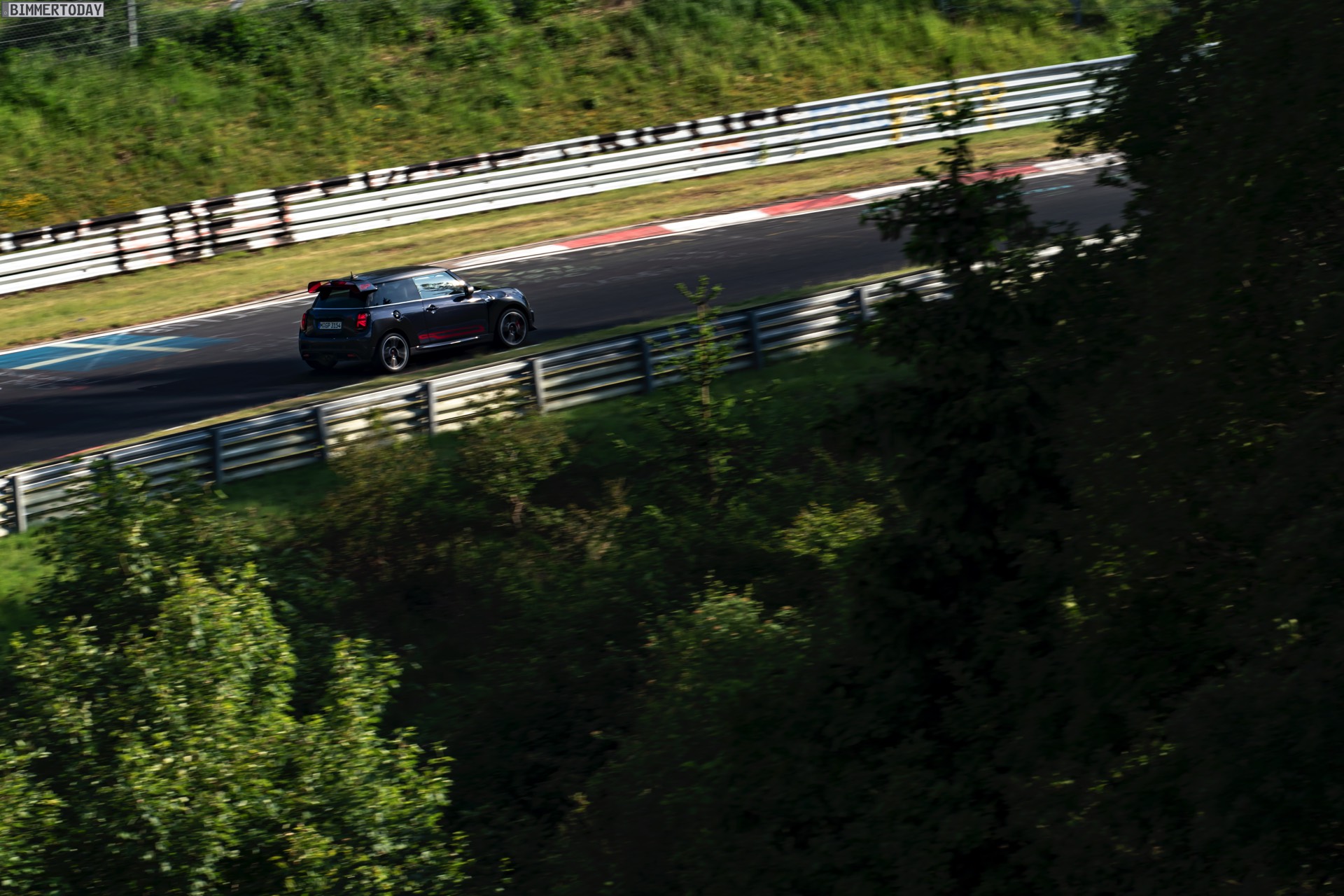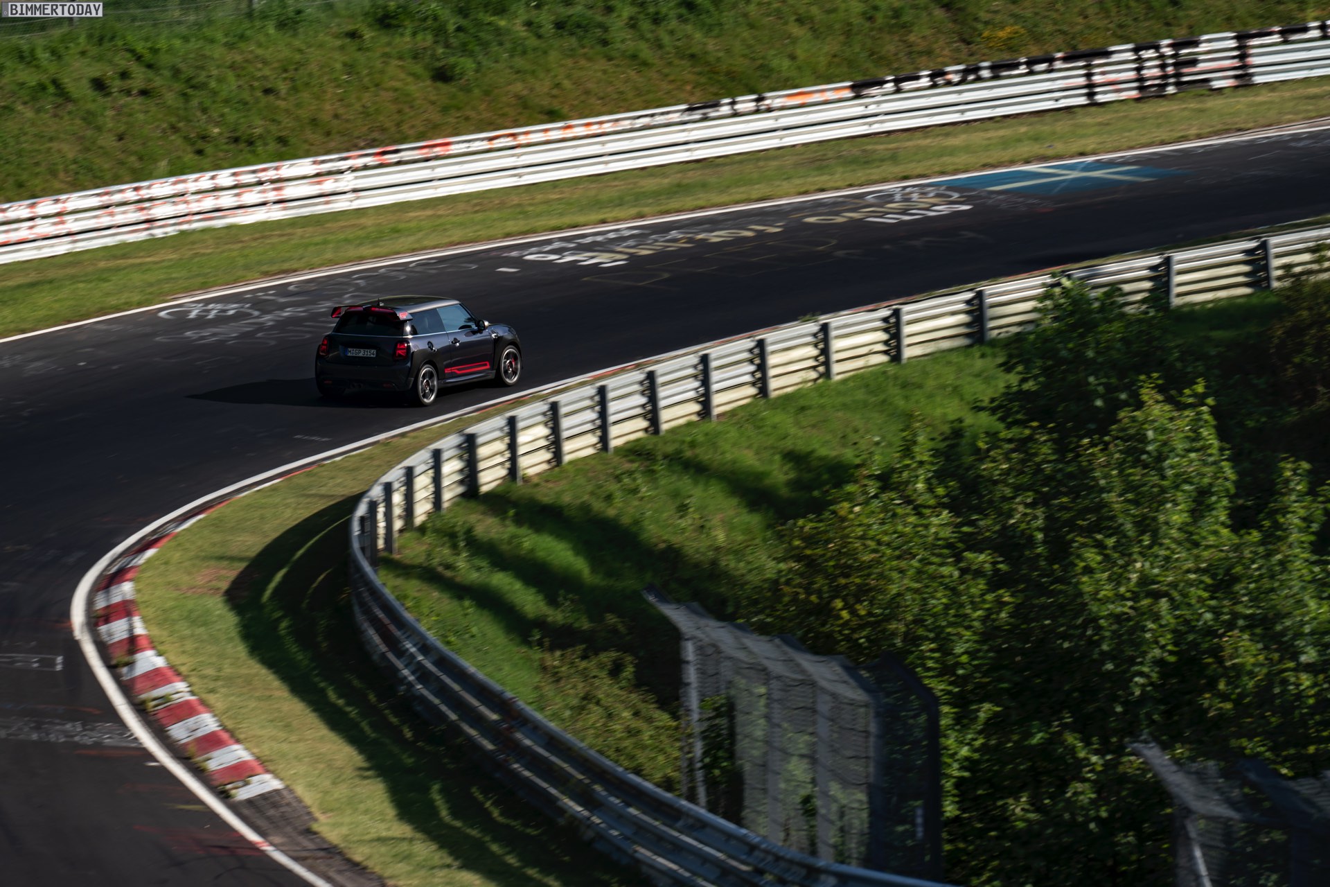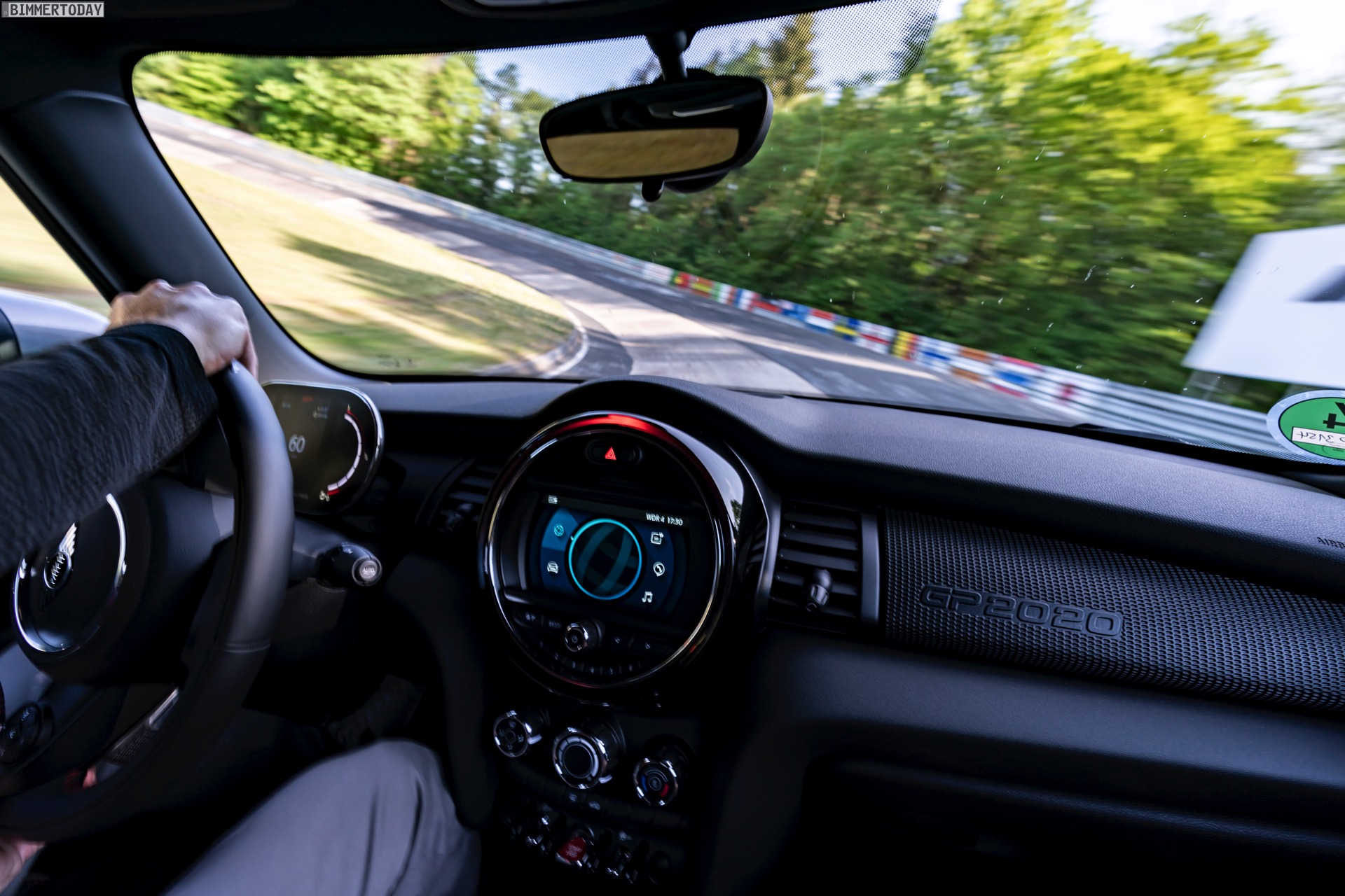 Im Onboard-Video sehen wir, wie der umfassend aufgerüstete Kleinwagen die Grüne Hölle in einer Zeit absolviert, die nicht nur im Kleinwagen-Segment und gerade mit Blick auf eine gemessene Asphalt-Temperatur von 53 Grad Celsius aller Ehren Wert ist. Der weltweit auf 3.000 Einheiten limitierte MINI John Cooper Works GP ist dabei auf Sportreifen vom Typ Hankook Ventus TD unterwegs, die rundum im Format 225/35 R18 zum Einsatz kommen.