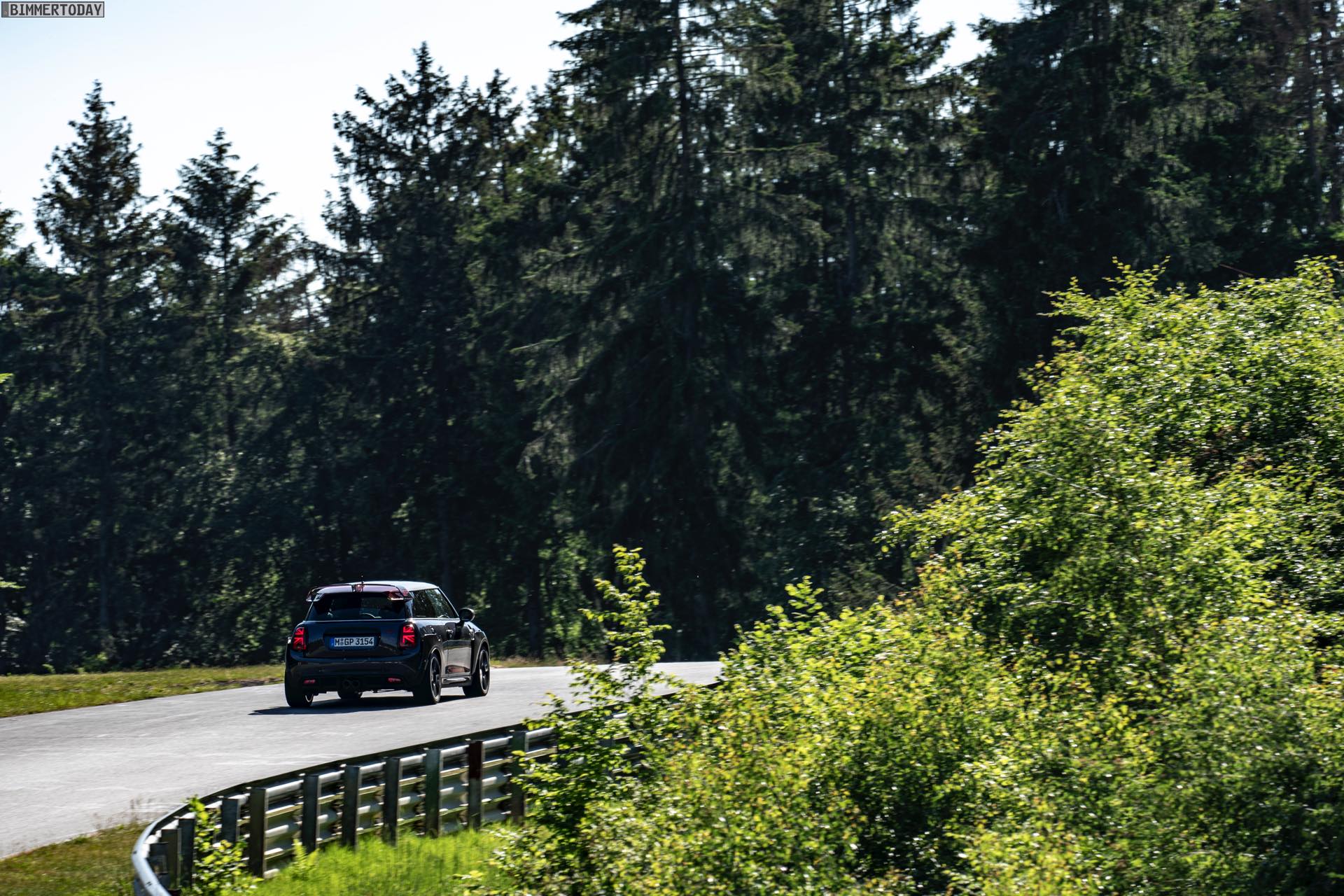 Neben dem Fahrwerk kann sich auf der Nürburgring Nordschleife auch der BMW Turbo-Vierzylinder B48 in Szene setzen: Die 306 PS und 450 Newtonmeter starke Ausbaustufe, die auch in anderen John Cooper Works-Modellen sowie BMW M135i, M235i Gran Coupé und X2 M35i zum Einsatz kommt, sorgt in jeder kurzen Beschleunigungsphase für massiven Vortrieb und bringt den Kleinwagen nicht nur auf der Döttinger Höhe auf beeindruckende Geschwindigkeiten. Wer den MINI JCW GP auf der Autobahn ausfährt, erreicht sogar eine Höchstgeschwindigkeit von 265 km/h, hat dabei aber ganz sicher weniger Spaß als bei niedrigeren Geschwindigkeiten auf kurvigen Strecken.