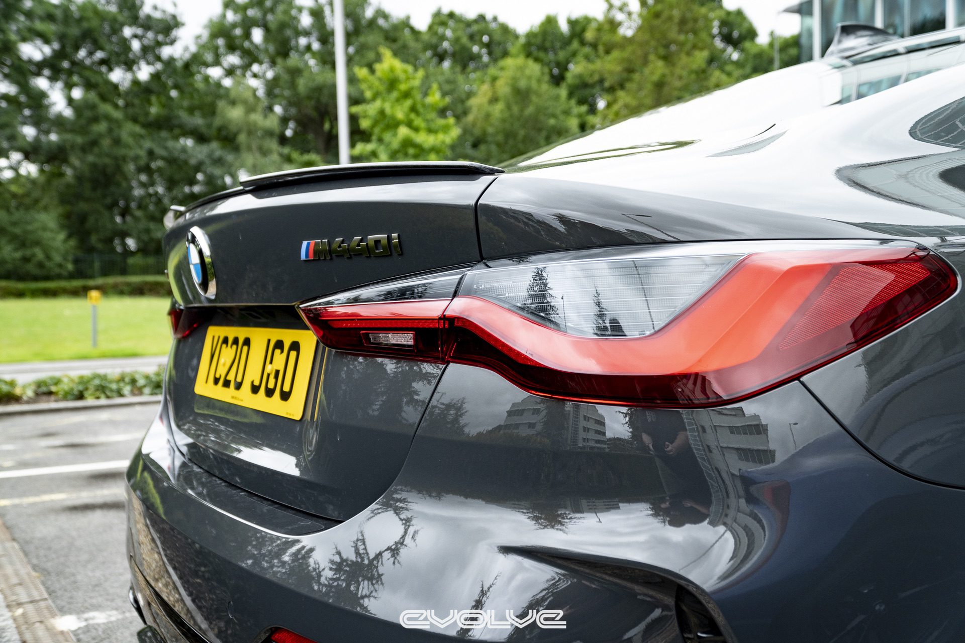 Neben der markanten Niere hat der neue BMW 4er G22 natürlich noch einige weitere Details zu bieten, die unsere Aufmerksamkeit verdienen. Auf den Fotos von EvolveAutomotive sehen wir auch die optionalen Laserlicht-Scheinwerfer und die ausgesprochen flach gezeichneten Rückleuchten im Detail. Außerdem trägt der gezeigte M440i die schwarz lackierten und 19 Zoll großen Leichtmetallräder 791 M, die sowohl mit normaler als auch mit ausgewiesener Sport-Bereifung bestellt werden können.