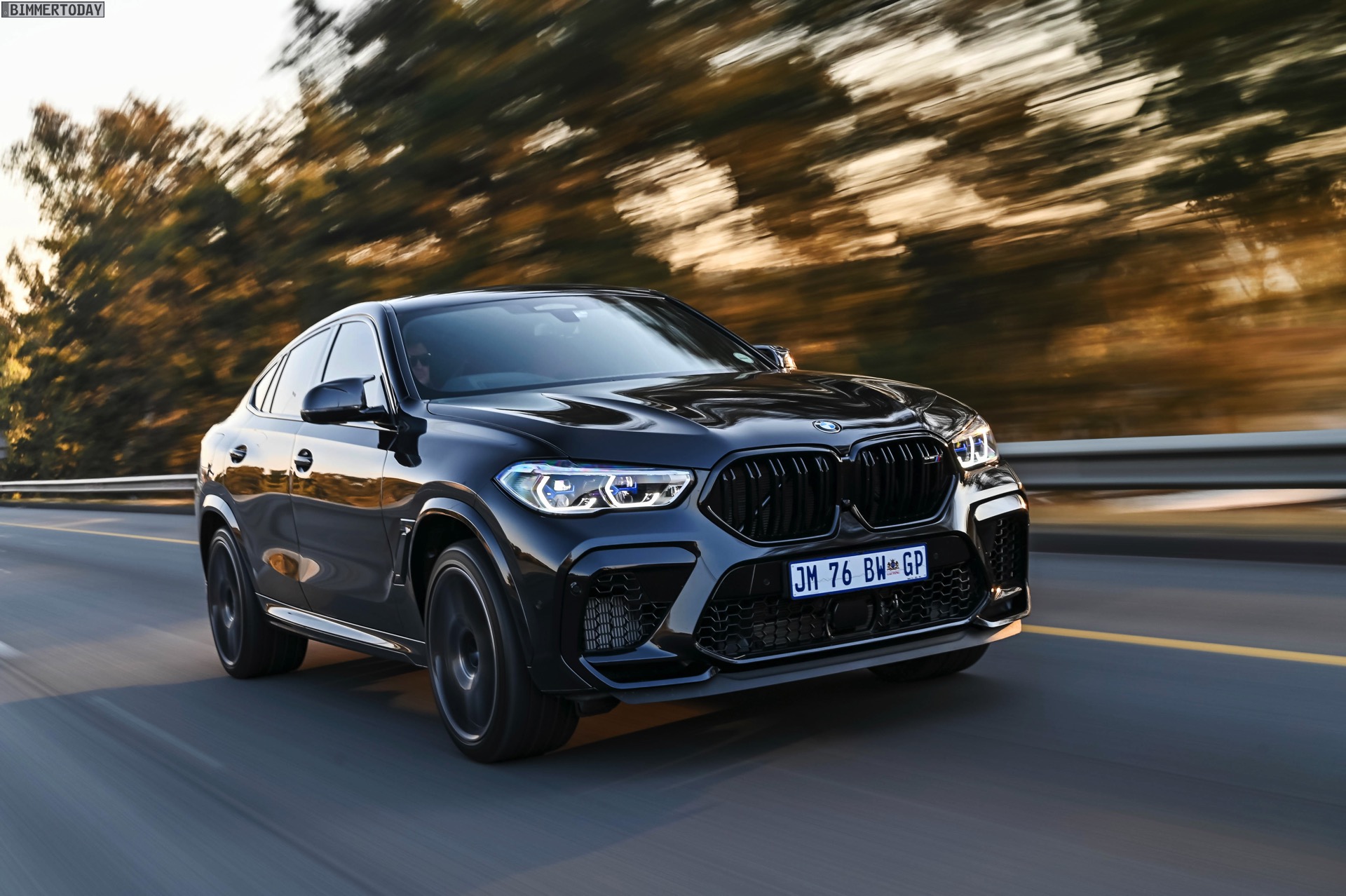 Der BMW X6 M Competition zählt von Natur aus nicht zu den Autos, die aus ihrer dunklen Seite ein großes Geheimnis machen. Wer vor dem SUV-Coupé im vollen M-Style steht, sieht sofort: Dieses Fahrzeug will vieles sein, aber ganz sicher nicht bieder und gewöhnlich. In der Competition-Version verzichtet  der BMW X6 M F96 konsequent auf jeden Chrom-Zierrat und setzt stattdessen auf Hochglanz-Schwarz. Egal ob Niere, Blenden oder sogar der Schriftzug am Heck: Die dunkelste aller Farben ist ihm gerade dunkel genug. Einige Fotos aus Südafrika zeigen nun, welcher böse Gesamtauftritt sich ergibt, wenn man die schwarzen Details mit einer Lackierung in Saphirschwarz metallic kombiniert.