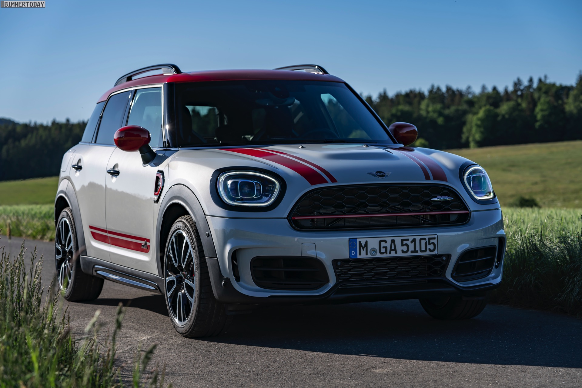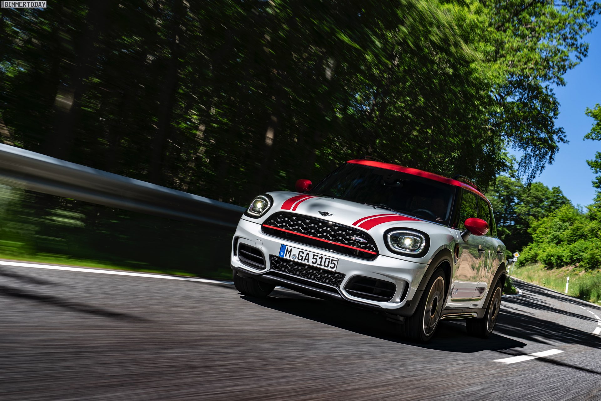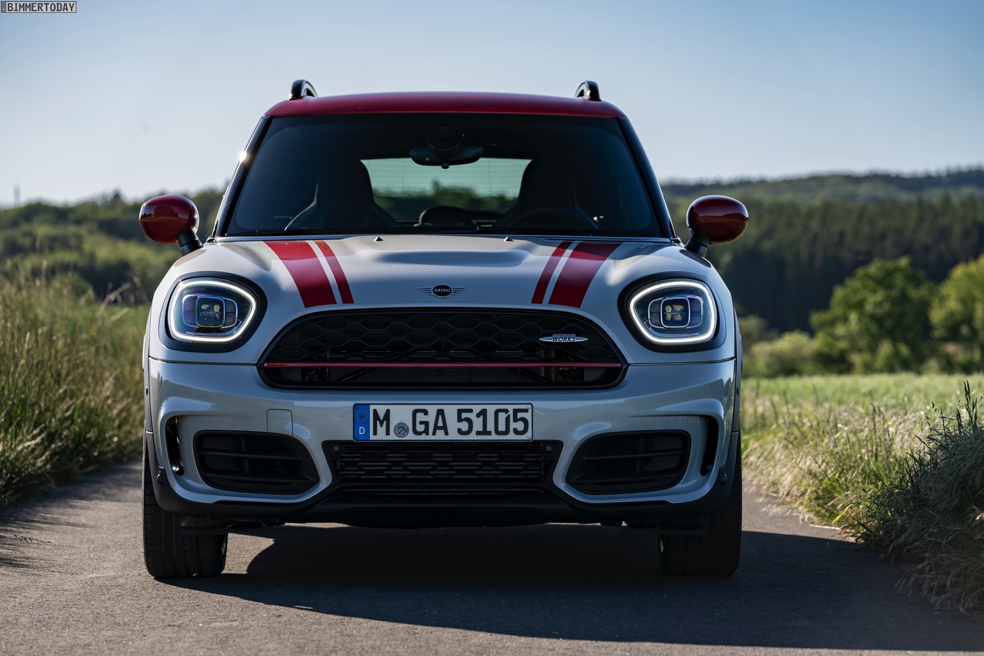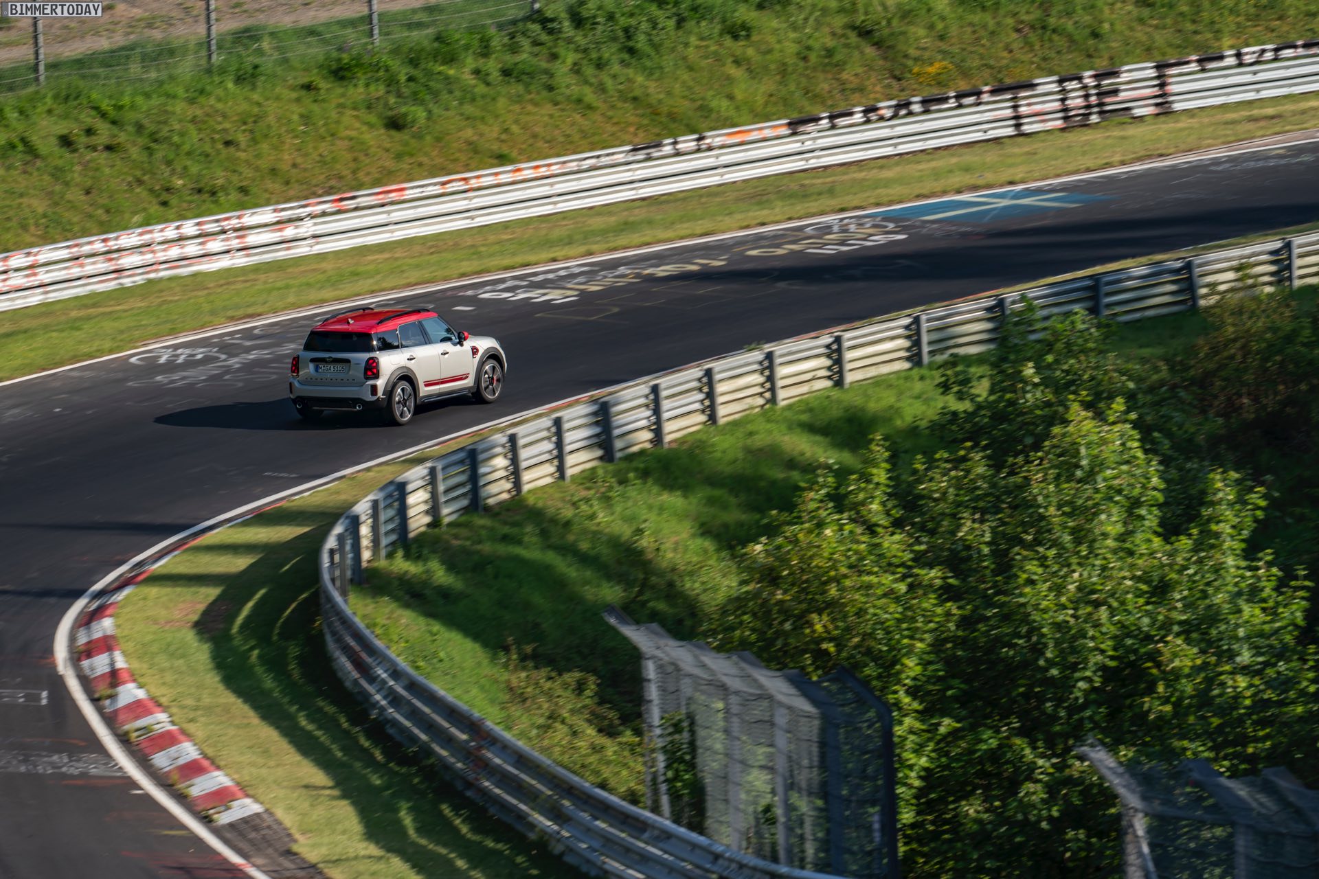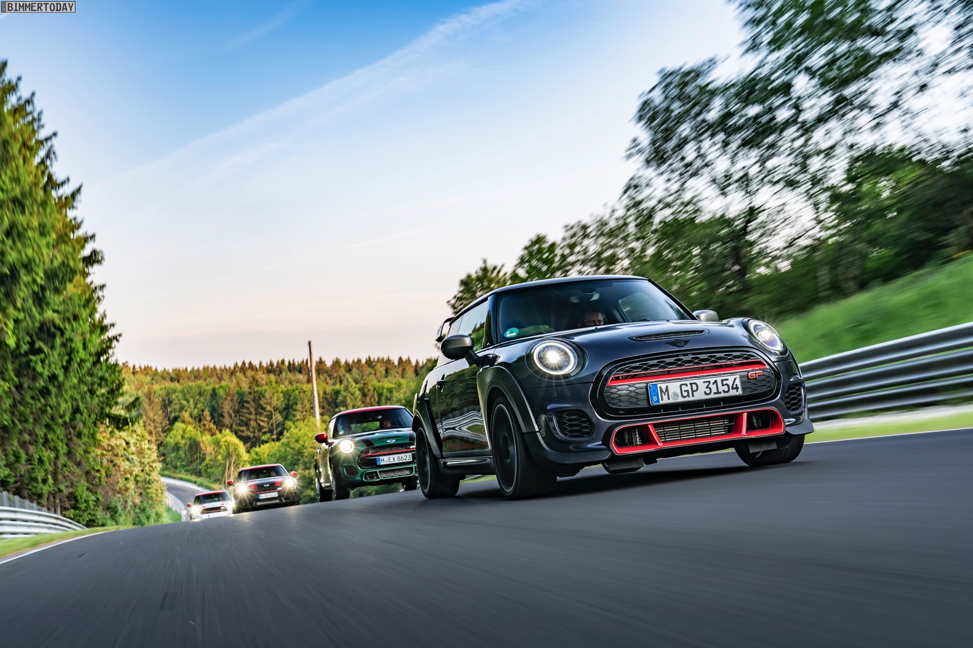 Die Anwesenheit des frisch überarbeiteten Countryman wurde offenbar auch für einige Familien-Fotos genutzt, die gleich vier Mitglieder der aktuellen MINI JCW-Palette auf der Nürburgring Nordschleife zeigen. Neben dem City-SUV sehen wir dabei auch den MINI JCW Hatch, den MINI JCW Clubman und das limitierte Topmodell MINI JCW GP: