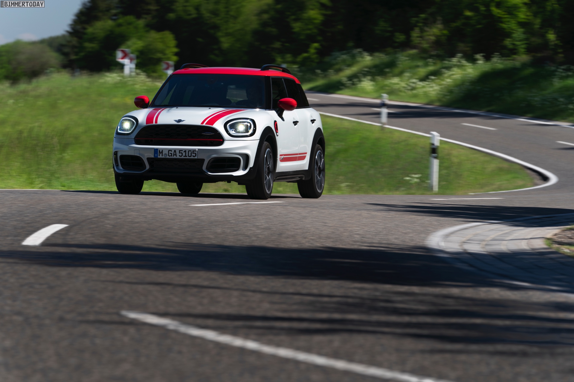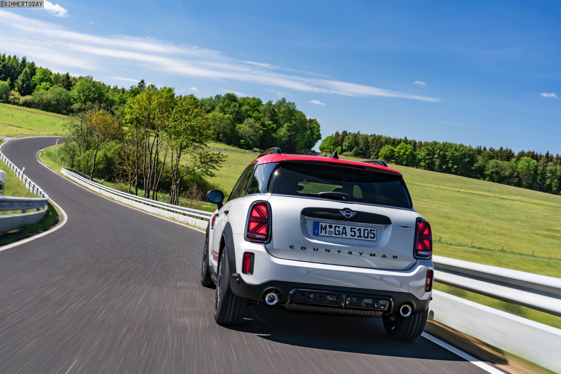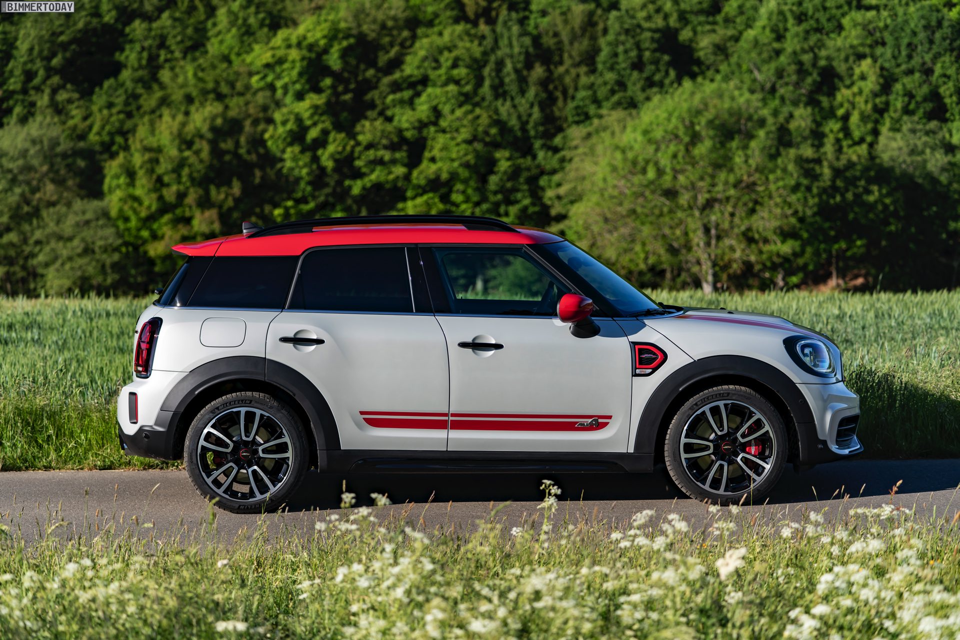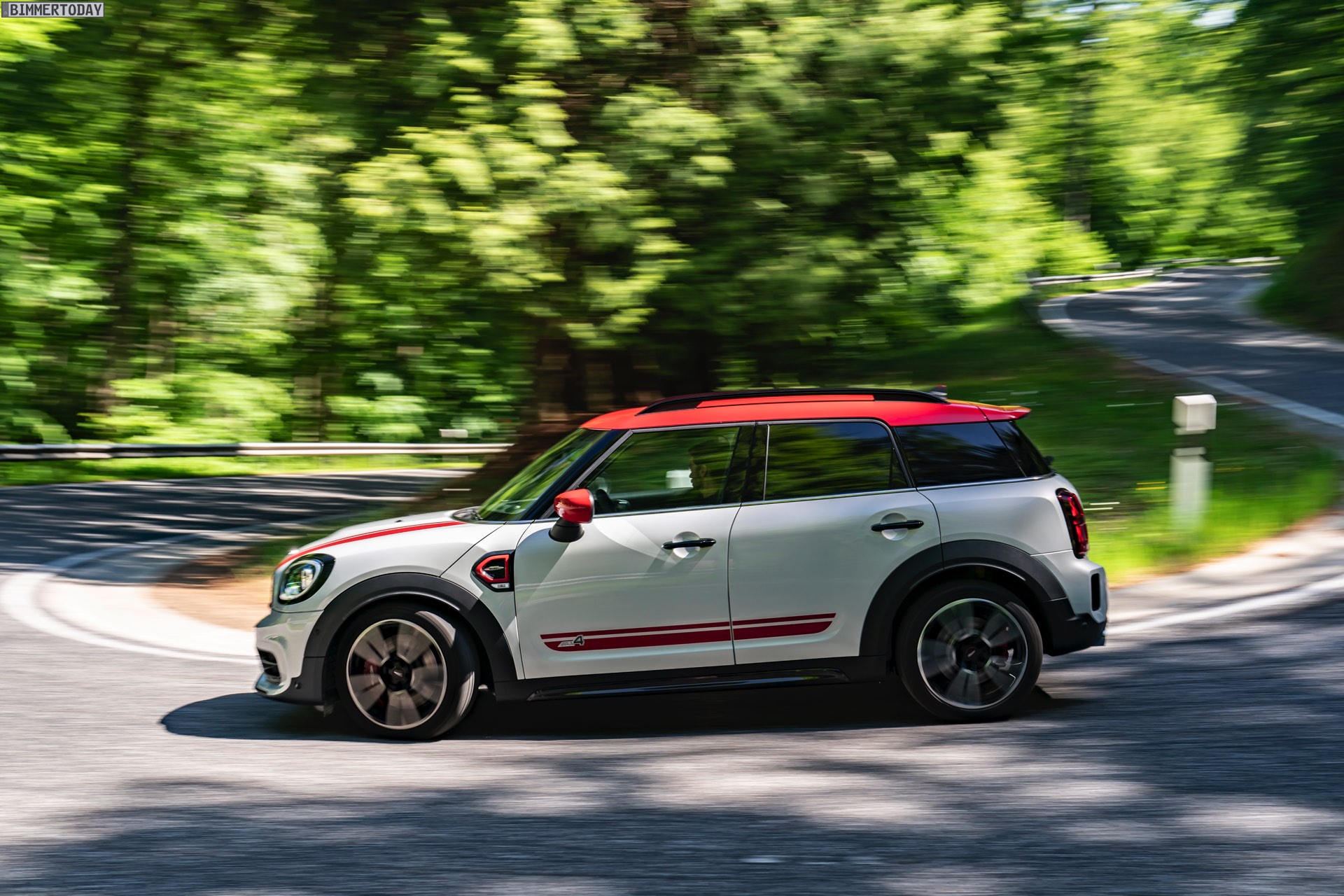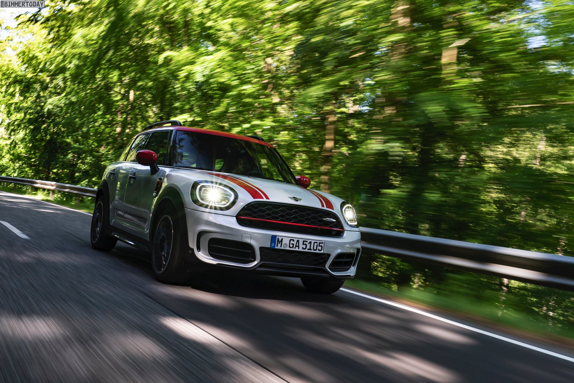 Die Anwesenheit des frisch überarbeiteten Countryman wurde offenbar auch für einige Familien-Fotos genutzt, die gleich vier Mitglieder der aktuellen MINI JCW-Palette auf der Nürburgring Nordschleife zeigen. Neben dem City-SUV sehen wir dabei auch den MINI JCW Hatch, den MINI JCW Clubman und das limitierte Topmodell MINI JCW GP: