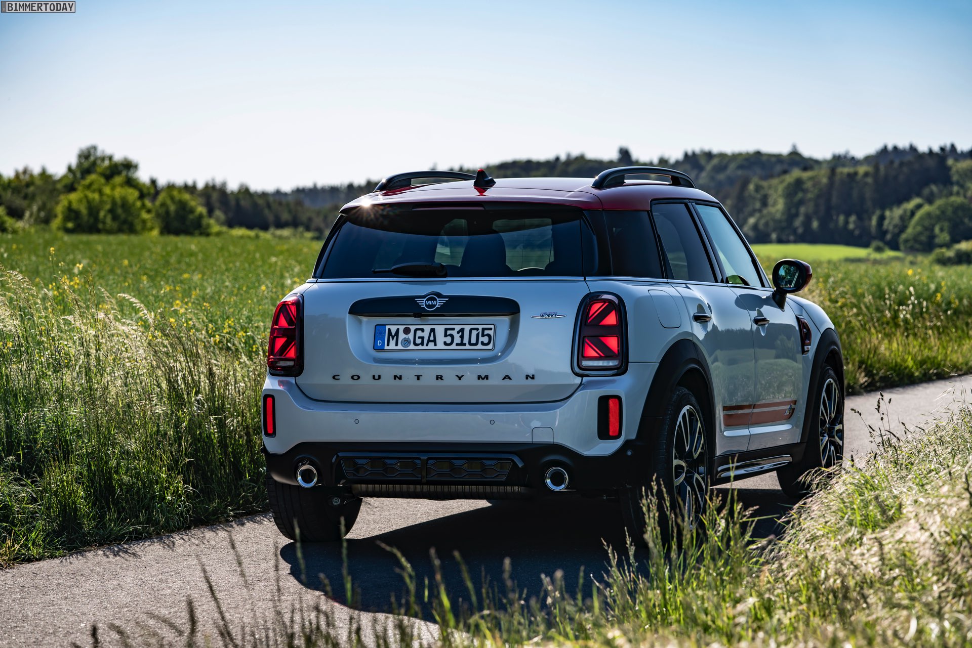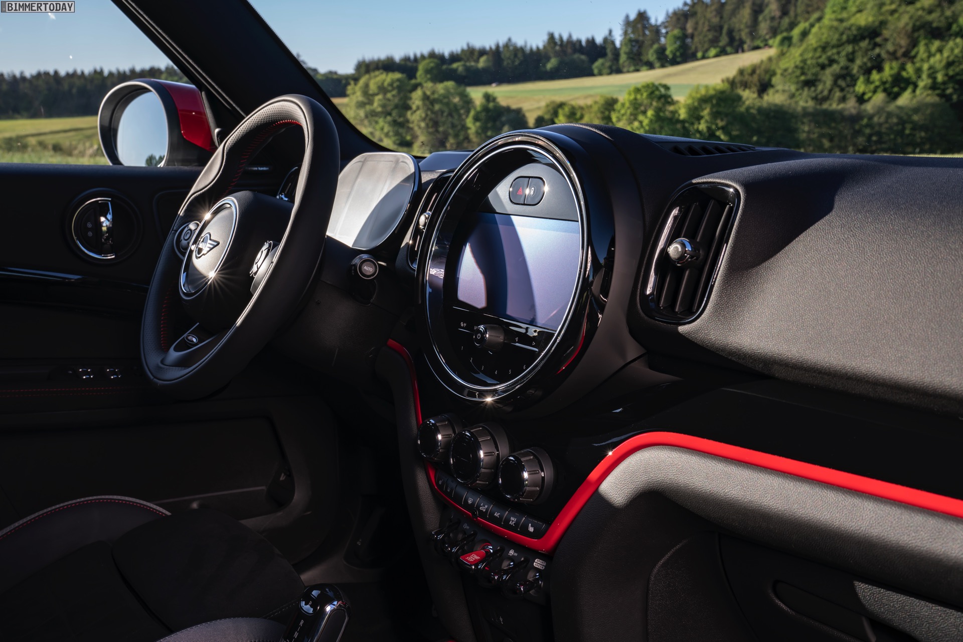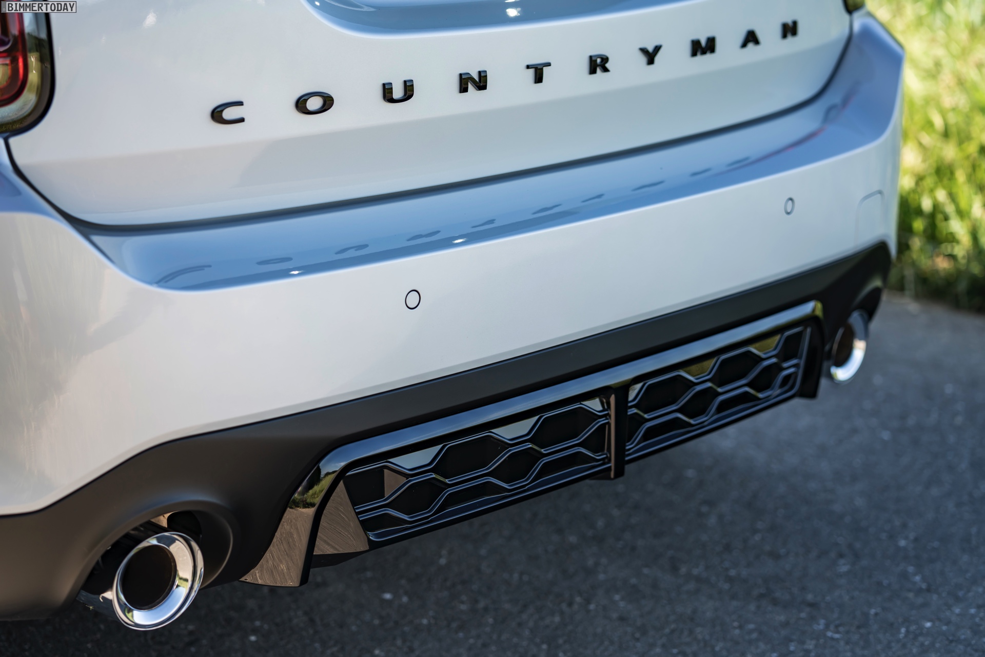 Neu zum MINI JCW Countryman Facelift sind nicht nur die Außenfarben White Silver und Sage Green, sondern auch die mit der erweiterten Shadow Line bei BMW vergleichbare Option Piano Black Exterieur. Dass mit dem Facelift der Durchmesser der beiden Endrohr-Blenden auf 95 Millimeter vergrößert wurde, ist mit Blick auf die Fahrleistungen absolut legitim. Im Innenraum sorgt vor allem das 5 Zoll große, digitale Instrumenten-Display hinter dem Lenkrad für frischen Wind.
