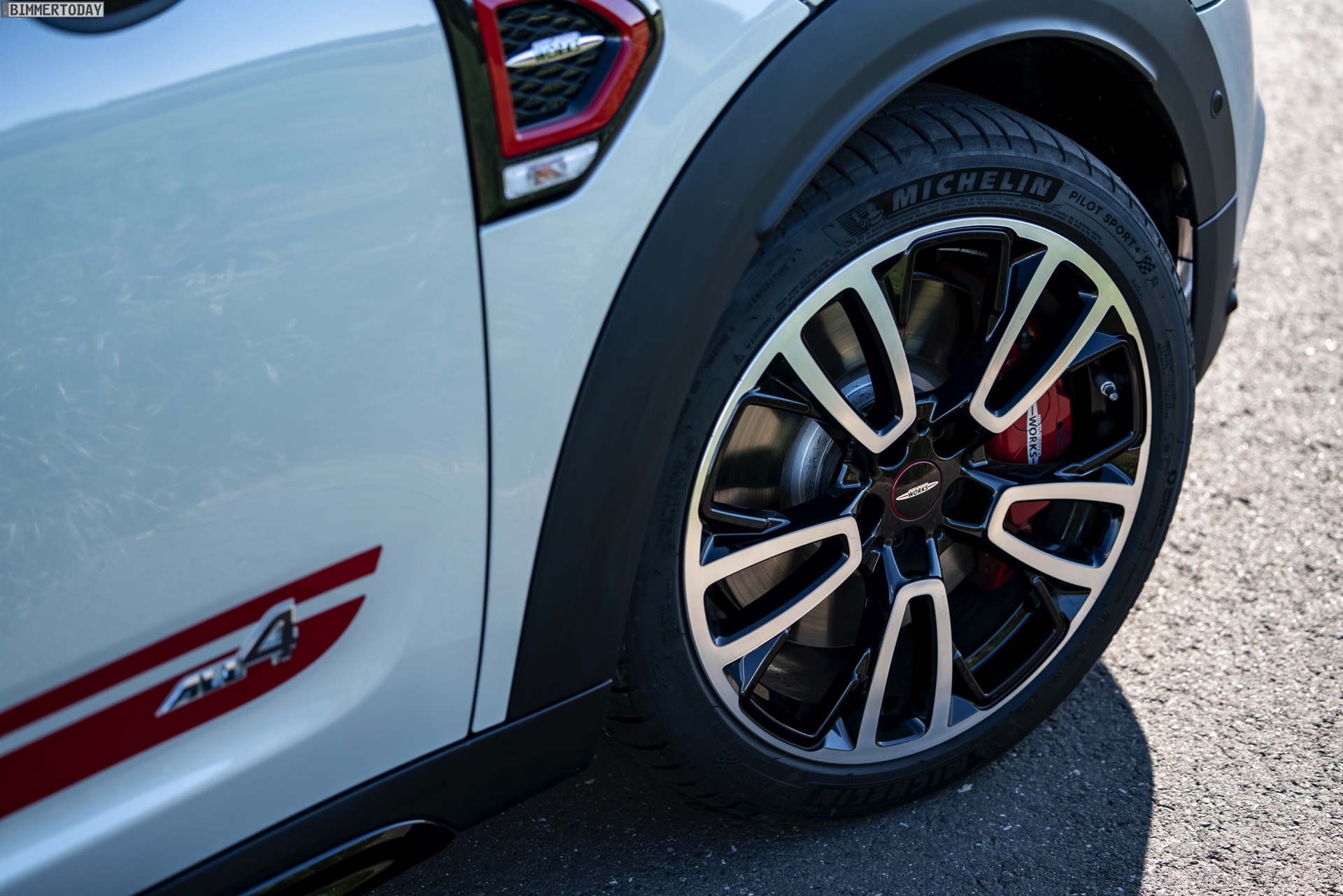 Dass die ersten Fotos zum Facelift für den MINI John Cooper Works Countryman auf und in der Nähe der Nürburgring Nordschleife entstanden sind, ist natürlich kein Zufall: Die härteste Rennstrecke der Welt soll schon auf den ersten Blick zeigen, welches sportliche Potenzial im Fahrwerk des City-SUV steckt. Wie bisher setzt das Topmodell auf den Allradantrieb ALL4, einige spezifische Fahrwerks-Komponenten, zusätzliche Karosserie-Versteifungen und eine eigene DSC-Abstimmung, die es gerade bei dynamischer Fahrweise klar von den schwächeren Varianten des Countryman abgrenzen. Passend dazu ist die leistungsfähigere Bremsanlage mit Vier-Kolben-Festsattel-Scheibenbremse vorn und Ein-Kolben-Faustsattel-Scheibenbremsen hinten.