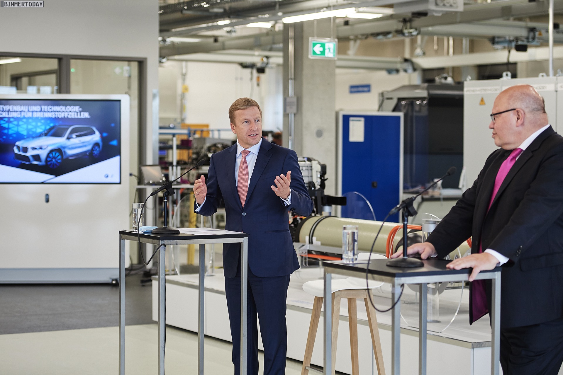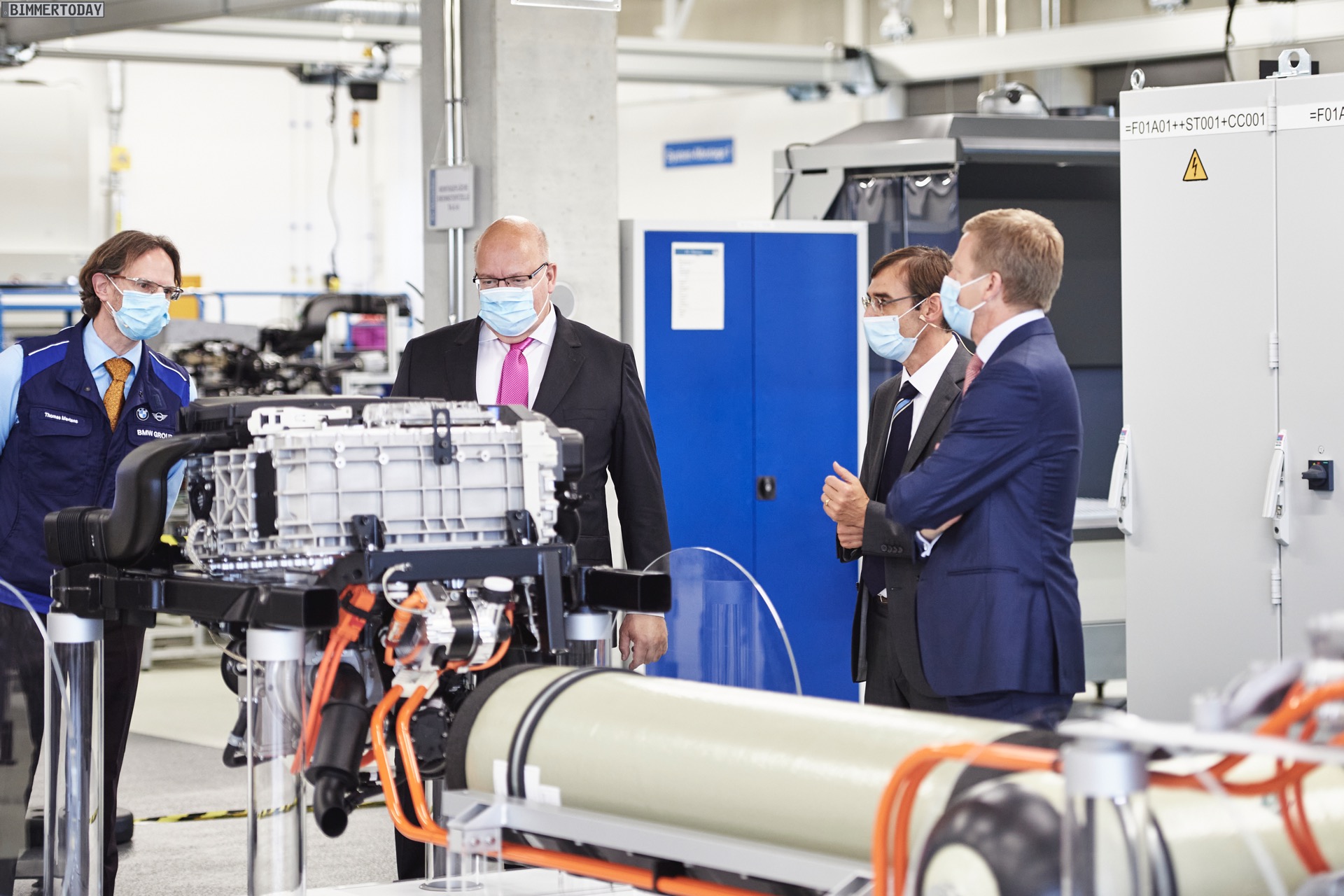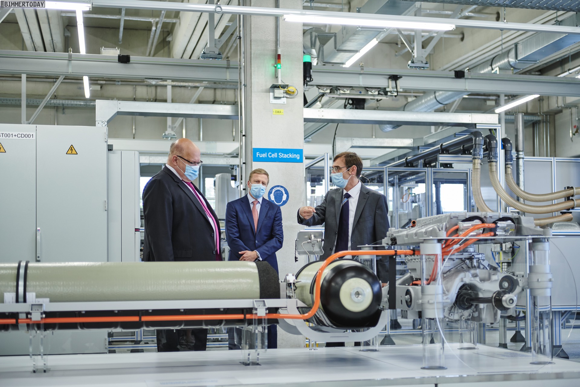 Das Wasserstoff-Kompetenzzentrum der BMW Group in München hatte heute hohen Besuch: Wirtschaftsminister Peter Altmaier besuchte die Experten für die Wasserstoff-Brennstoffzelle und ließ sich dabei von Oliver Zipse über den neuesten Stand der Entwicklungen informieren. Im Forschungs- und Technologiehaus wird derzeit die zweite Generation des BMW Brennstoffzellen-Antriebs als weitere Säule des “Power of Choice” genannten Prinzips vorbereitet. Bisher war damit das Angebot von Benziner, Diesel, Plug-in-Hybrid und Elektroantrieb gemeint, zumindest in manchen Fahrzeugklassen könnte künftig auch die Wasserstoff-Brennstoffzelle als Option hinzukommen.