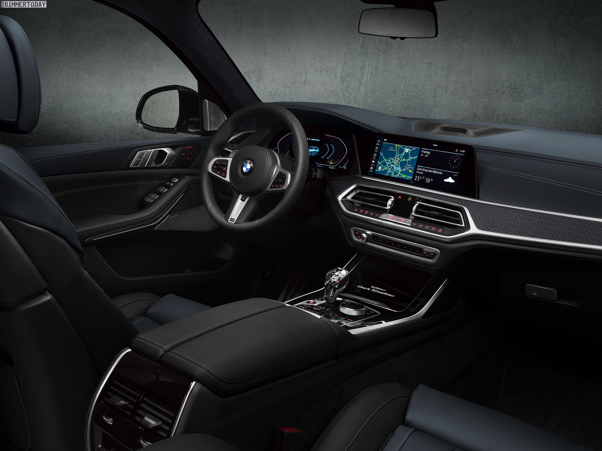 Für das Interieur steht neben der serienmäßigen Siebensitzer-Konfiguration auch die edle Sechssitzer-Variante mit zwei Einzelsitzen in der zweiten Reihe zur Wahl. Die BMW Individual Volllederausstattung Merino kommt in Nachtblau und Schwarz, auch das Leder auf Instrumententafel und Armauflagen sowie der Alcantara-Dachhimmel sind in Nachtblau gehalten. Edelholz-Interieurleisten in Fineline Schwarz sowie in Pianolack Schwarz komplettieren das dunkle Ambiente, das fast nur von einem weißen “Edition Dark Shadow”-Schriftzug aufgebrochen wird.