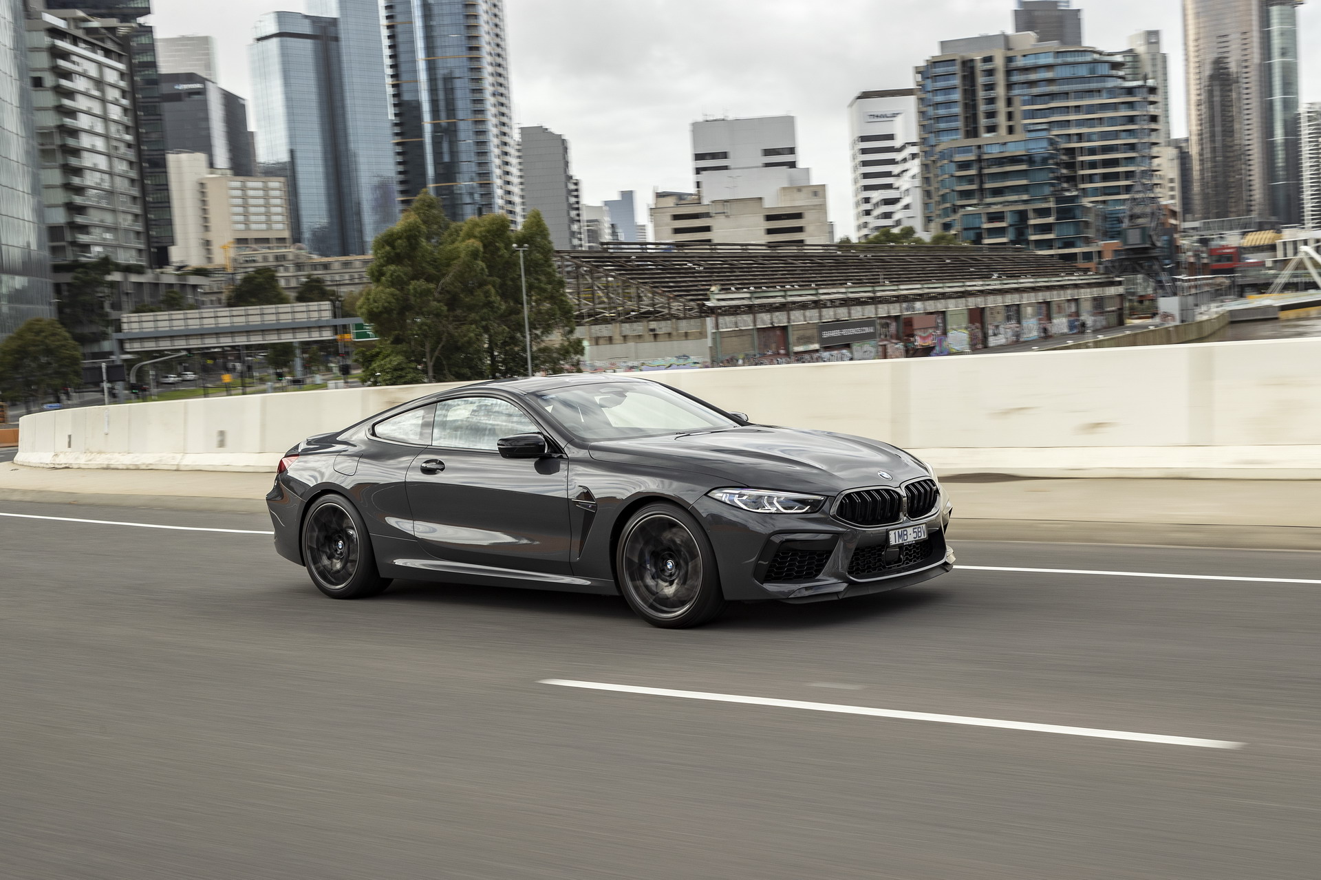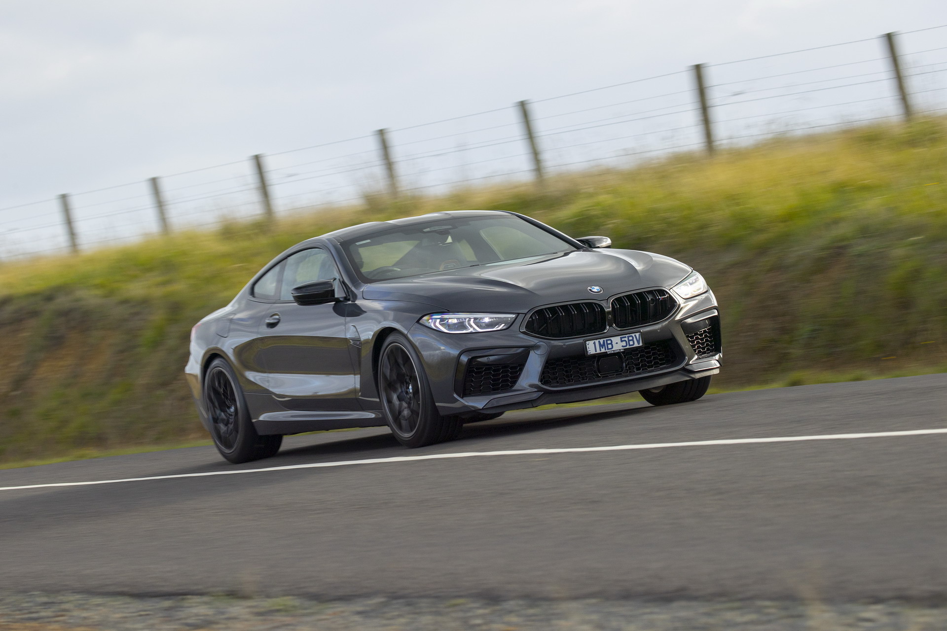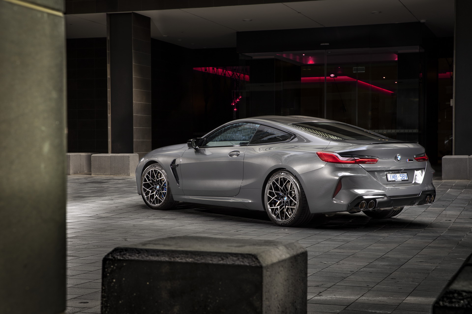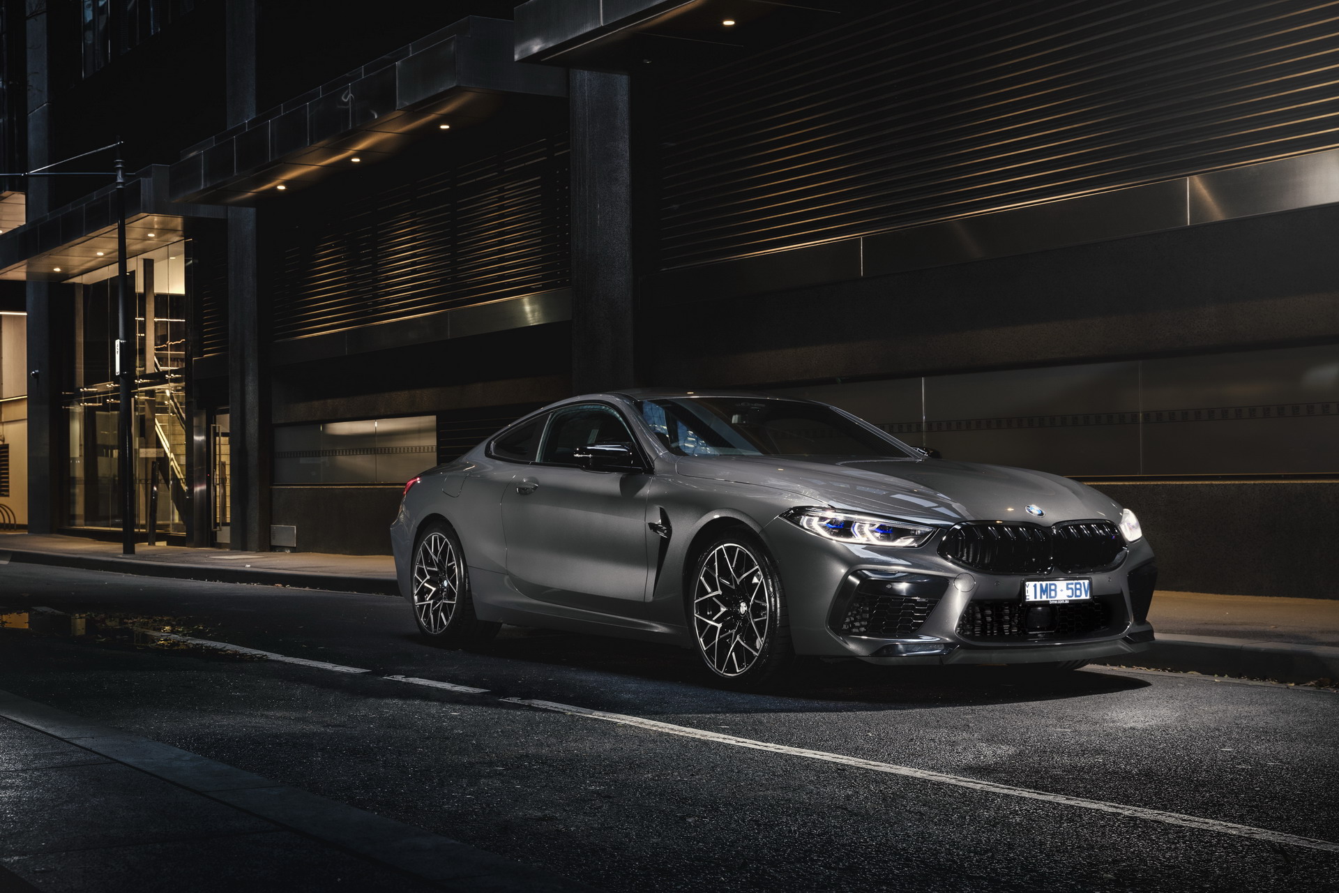 Von der Präsentation des BMW M8 Competition Coupé in Australien erreichen uns einige weitere Fotos, die uns den Luxussportler im Tageslicht und auch bei Nacht zeigen. Interessant sind die Bilder auch dank der dunkelgrauen Metallic-Lackierung in Brands Hatch Grey, die wir bisher nur selten am BMW M8 F92 zu sehen bekommen haben. In Verbindung mit den schwarzen Exterieur-Details der Competition-Modelle ergibt sich ein Auftritt, der komplett auf laute Farben verzichtet und dadurch eine noch stärkere Fokussierung auf die muskulösen Formen des Coupés ermöglicht.