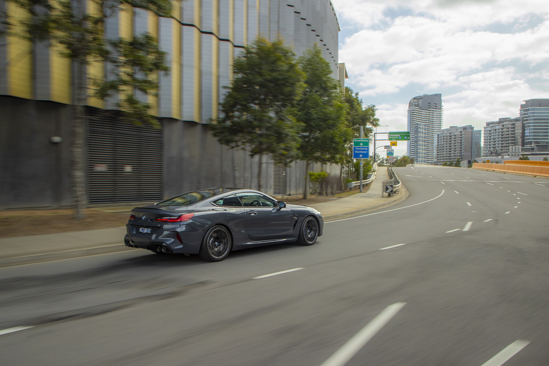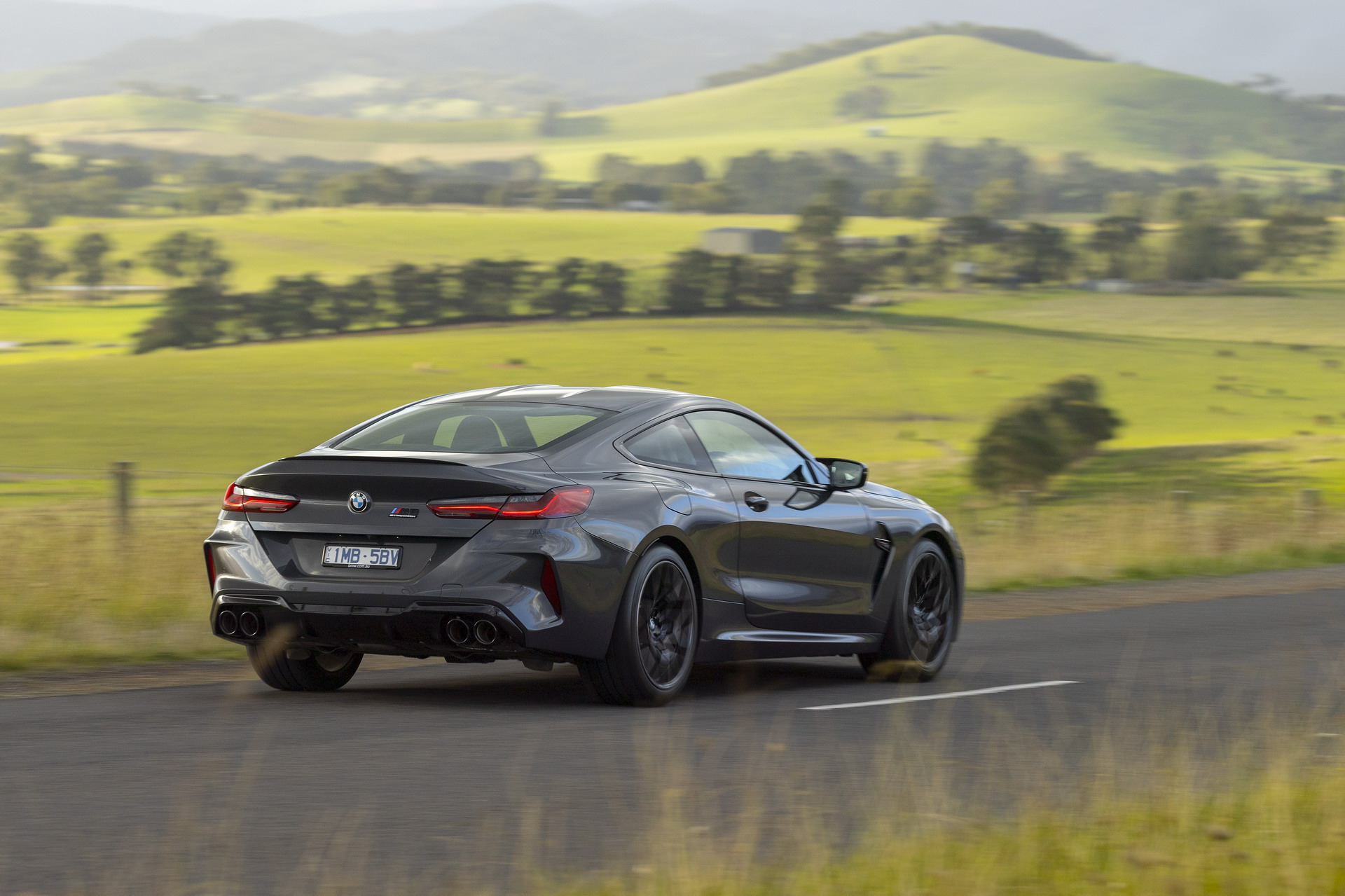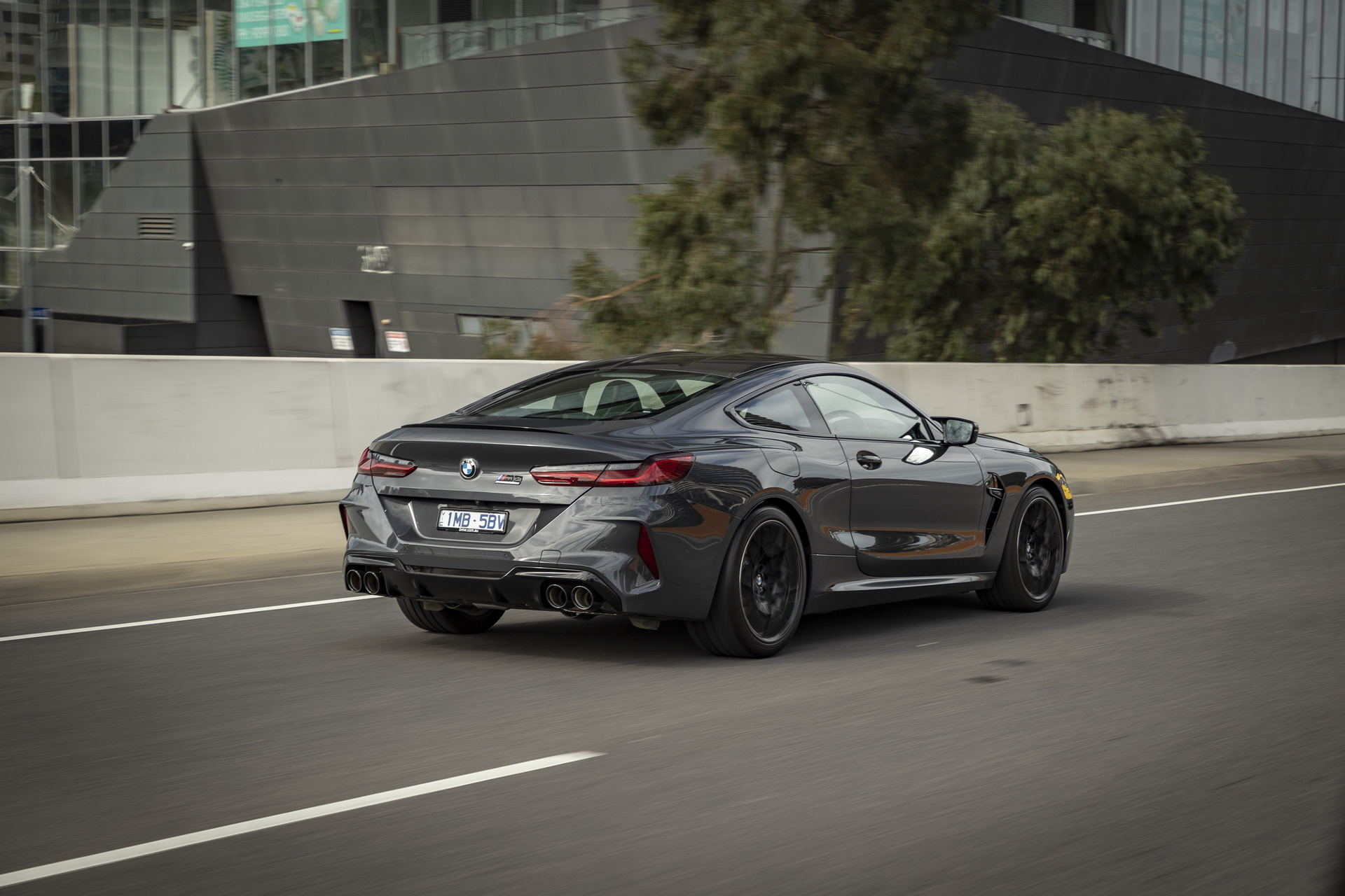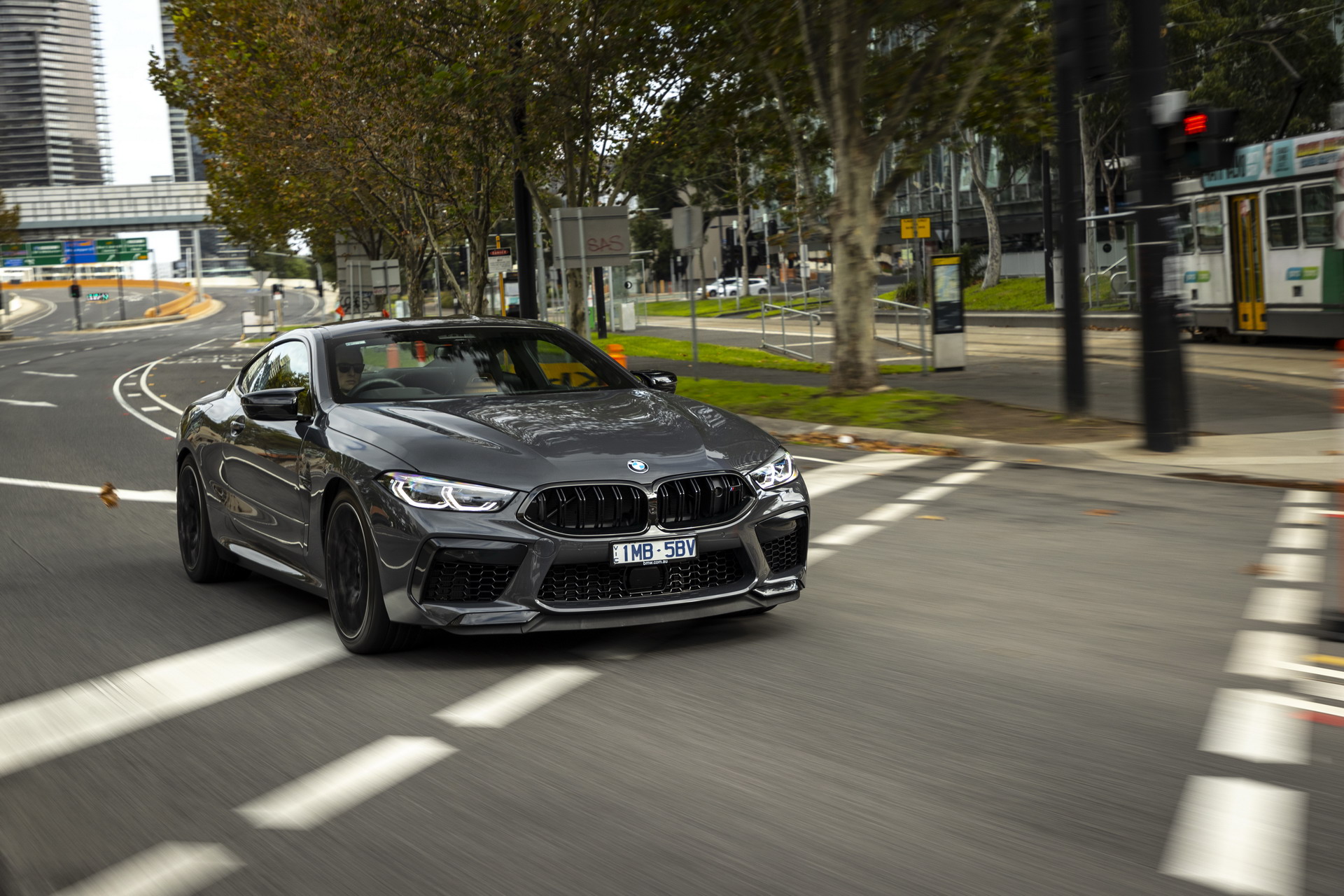 Von der Präsentation des BMW M8 Competition Coupé in Australien erreichen uns einige weitere Fotos, die uns den Luxussportler im Tageslicht und auch bei Nacht zeigen. Interessant sind die Bilder auch dank der dunkelgrauen Metallic-Lackierung in Brands Hatch Grey, die wir bisher nur selten am BMW M8 F92 zu sehen bekommen haben. In Verbindung mit den schwarzen Exterieur-Details der Competition-Modelle ergibt sich ein Auftritt, der komplett auf laute Farben verzichtet und dadurch eine noch stärkere Fokussierung auf die muskulösen Formen des Coupés ermöglicht.
