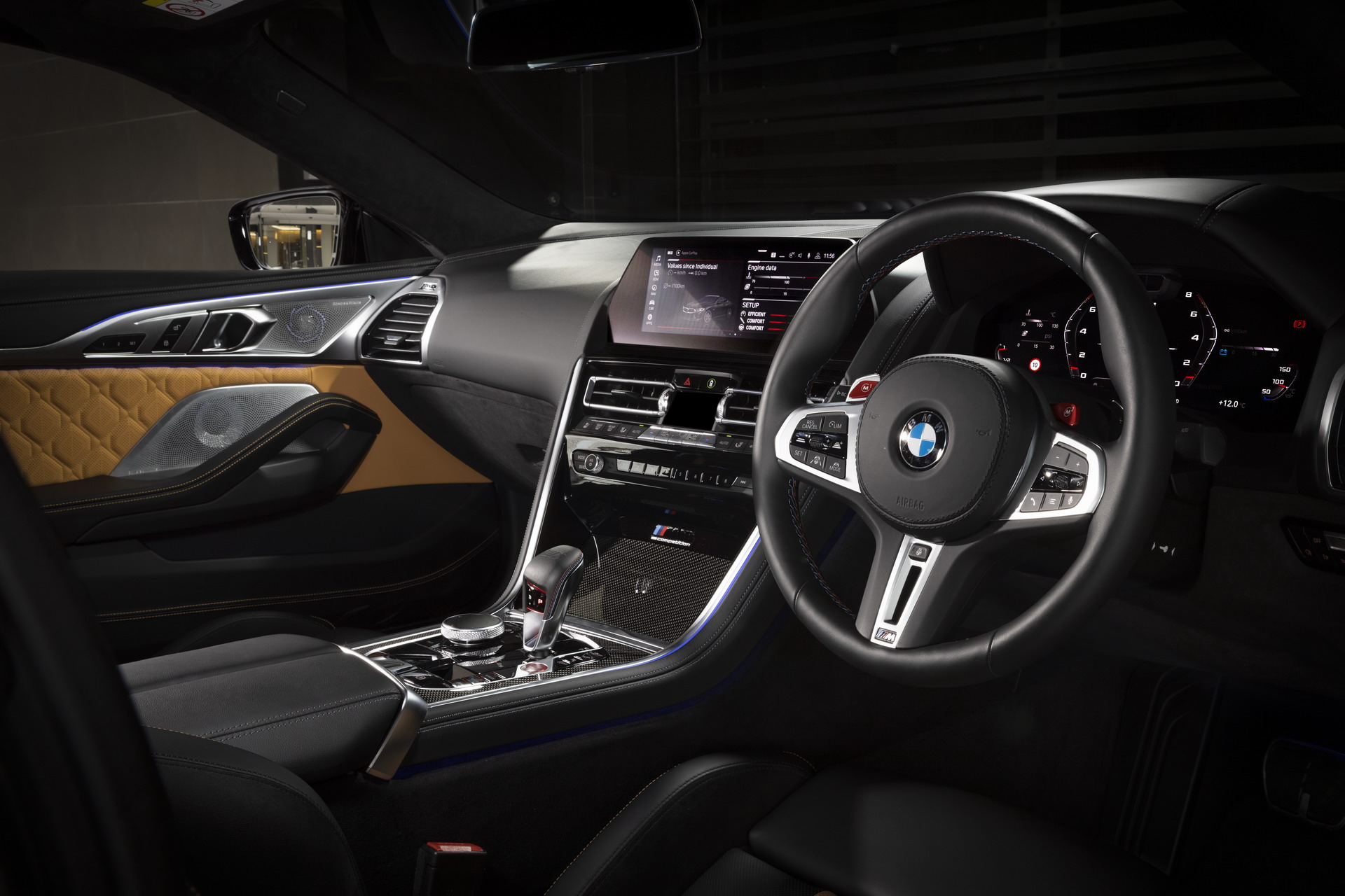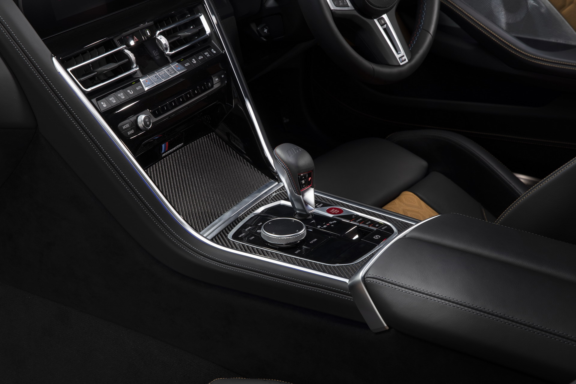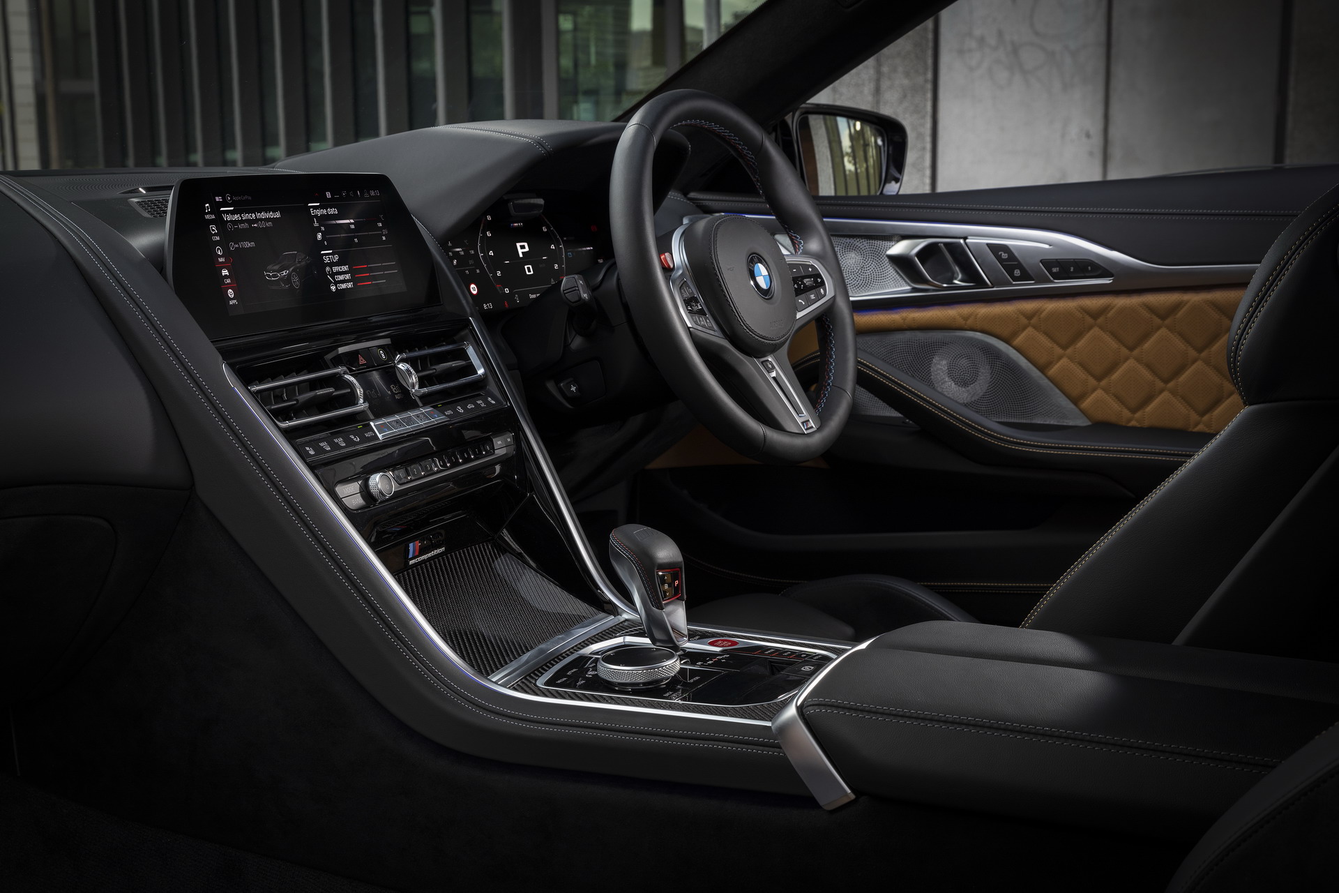 Dunkle Details wie das serienmäßige Carbon-Dach und die 20 Zoll großen M Leichtmetallräder Sternspeiche 813 M Bicolor mit Elementen in Jetblack fügen sich harmonisch in das Gesamtbild ein und betonen die Sportlichkeit auf elegante Art und Weise. Markante Elemente wie die schwarzen Nieren mit M-Doppelstreben, die Kiemen und Außenspiegel und natürlich die vier mächtigen Endrohre am Heck lassen dennoch aus keiner Perspektive einen Zweifel am enormen Performance-Potenzial des Fahrzeugs aufkommen.