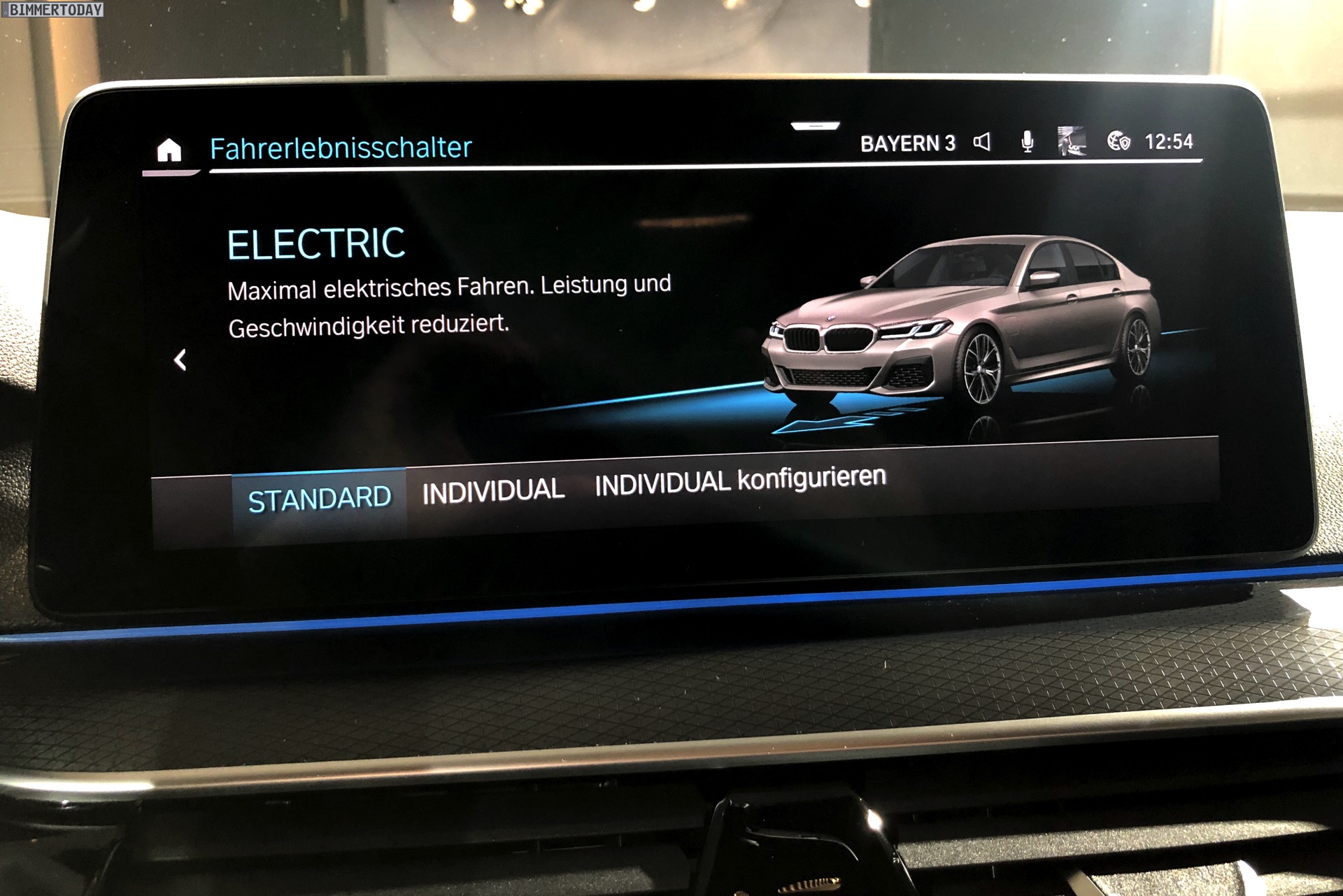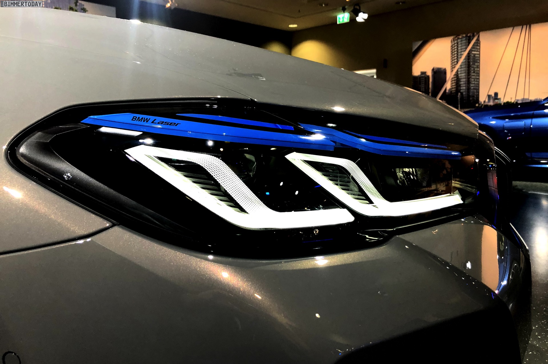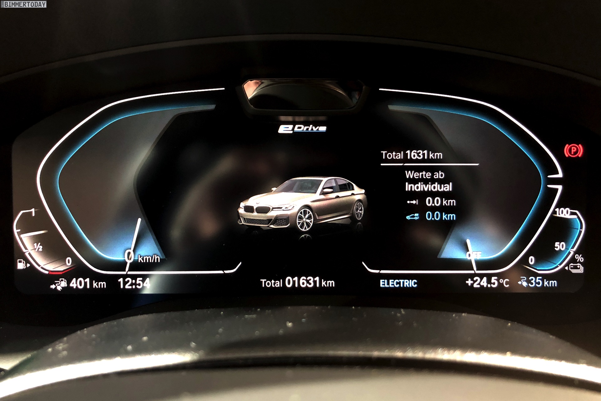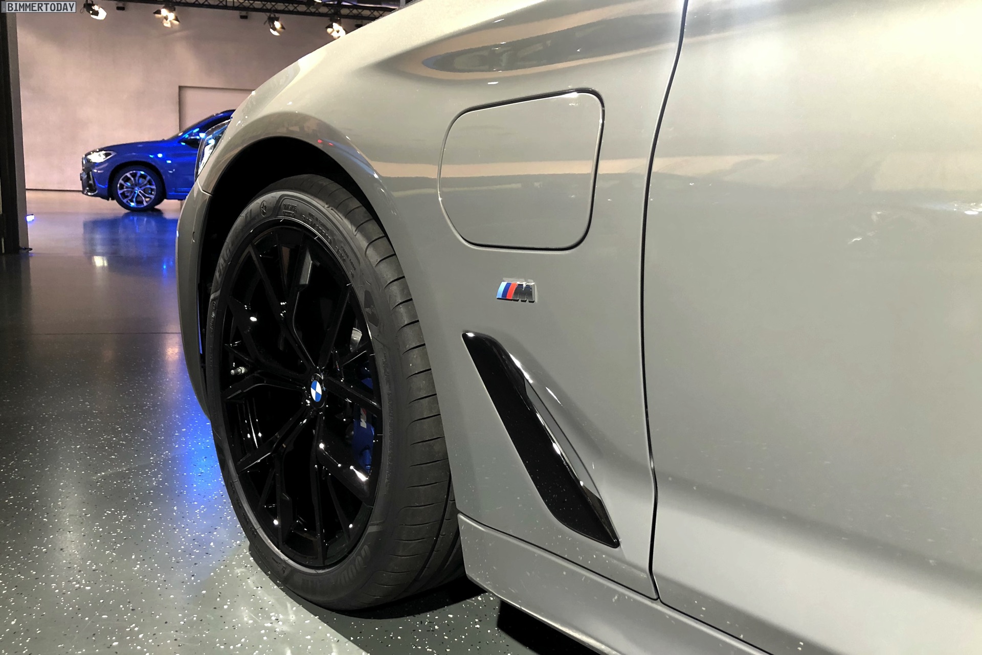 Ein unübersehbares Detail des gezeigten BMW 545e sind die blauen “Augenbrauen” der optionalen Laser-Scheinwerfer. Während die futuristische Lichttechnik bisher relativ dezent blieb, weisen die Münchner ab dem BMW 5er Facelift 2020 sehr offensiv auf die Hightech-Scheinwerfer hin. Noch offensiver wird der Look mit den hier gezeigten Shadow Line Leuchten, die über einen zusätzlichen zweiten Einleger in leuchtendem Blau verfügen.