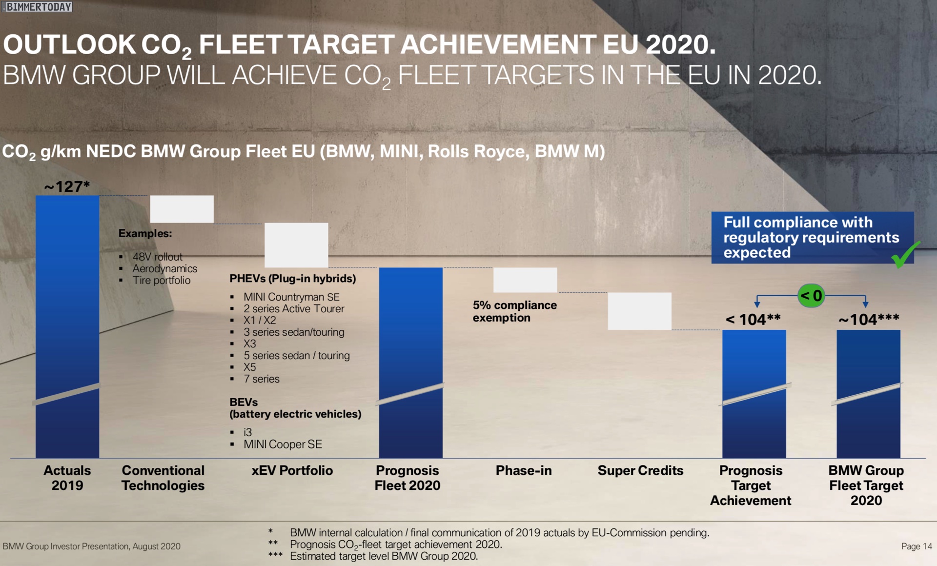 Im Gesamtkontext bis 2030 nur ein Zwischenschritt, aber dennoch ein Meilenstein ist das Erfüllen der CO2-Ziele der Europäischen Union im Jahr 2020. BMW-Chef Zipse bekräftigt ausdrücklich, dass die Münchner ihr Ziel erreichen und sogar übererfüllen werden. Hierfür sinken die Emissionen der europäischen Neuwagen-Flotte im Jahr 2020 um mehr als 20 Prozent gegenüber dem Vorjahr. Strafzahlungen sind für die BMW Group damit kein Thema, während andere Hersteller unter Verwes auf Corona auf eine Verschiebung der Grenzwerte oder zumindest einen Aufschub bis zum Verhängen erster Strafzahlungen kämpfen.
